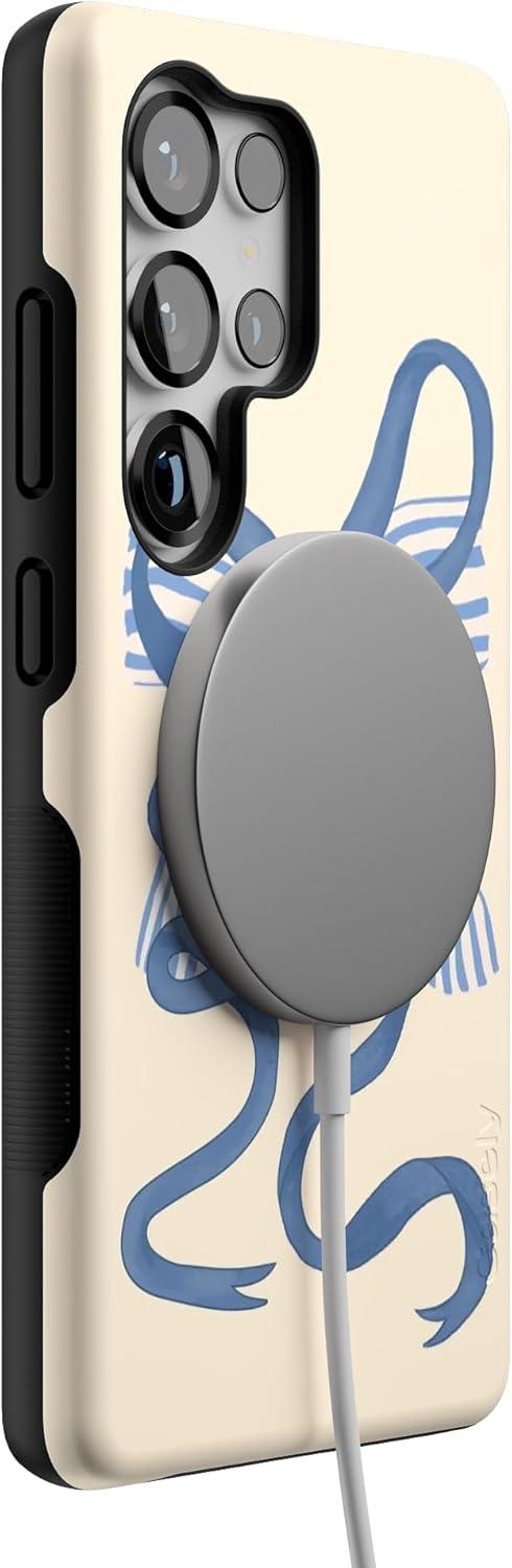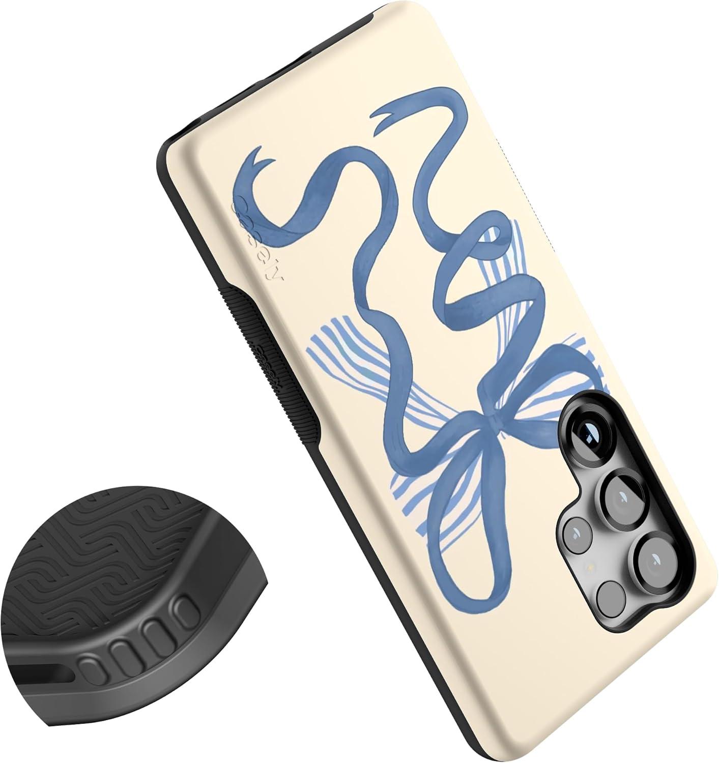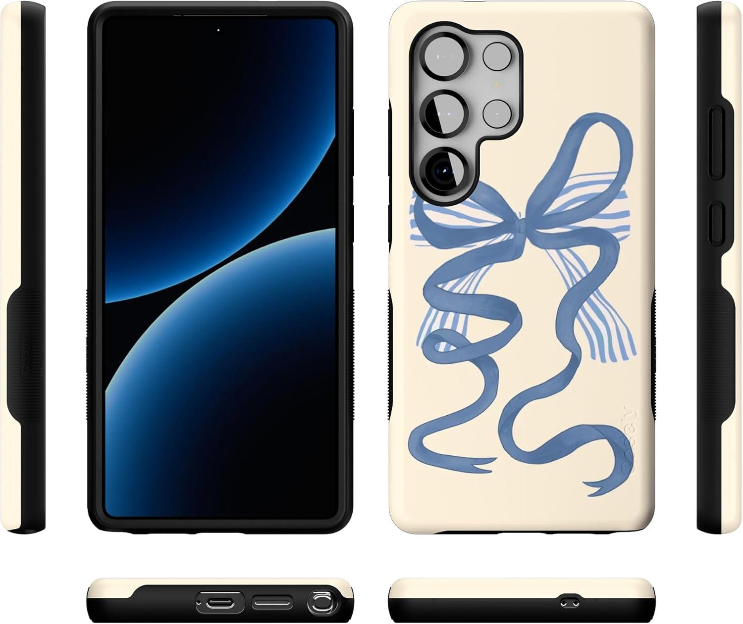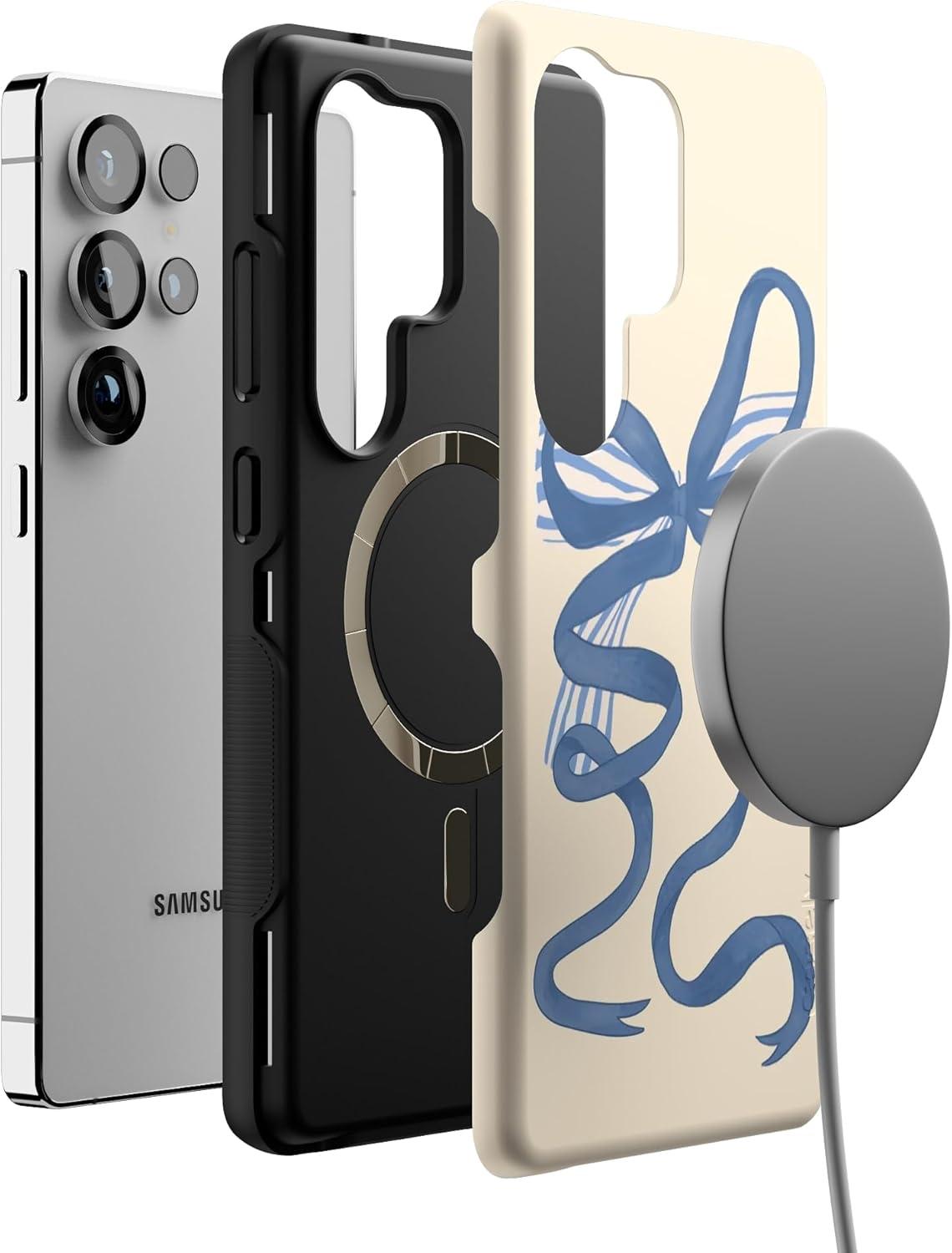 Casely Galaxy S25 Ultra Case | Chateau Pups | French Dog | Compatible with MagSafe | Bold Protective Design(Heartstrings | Blue Bow)
