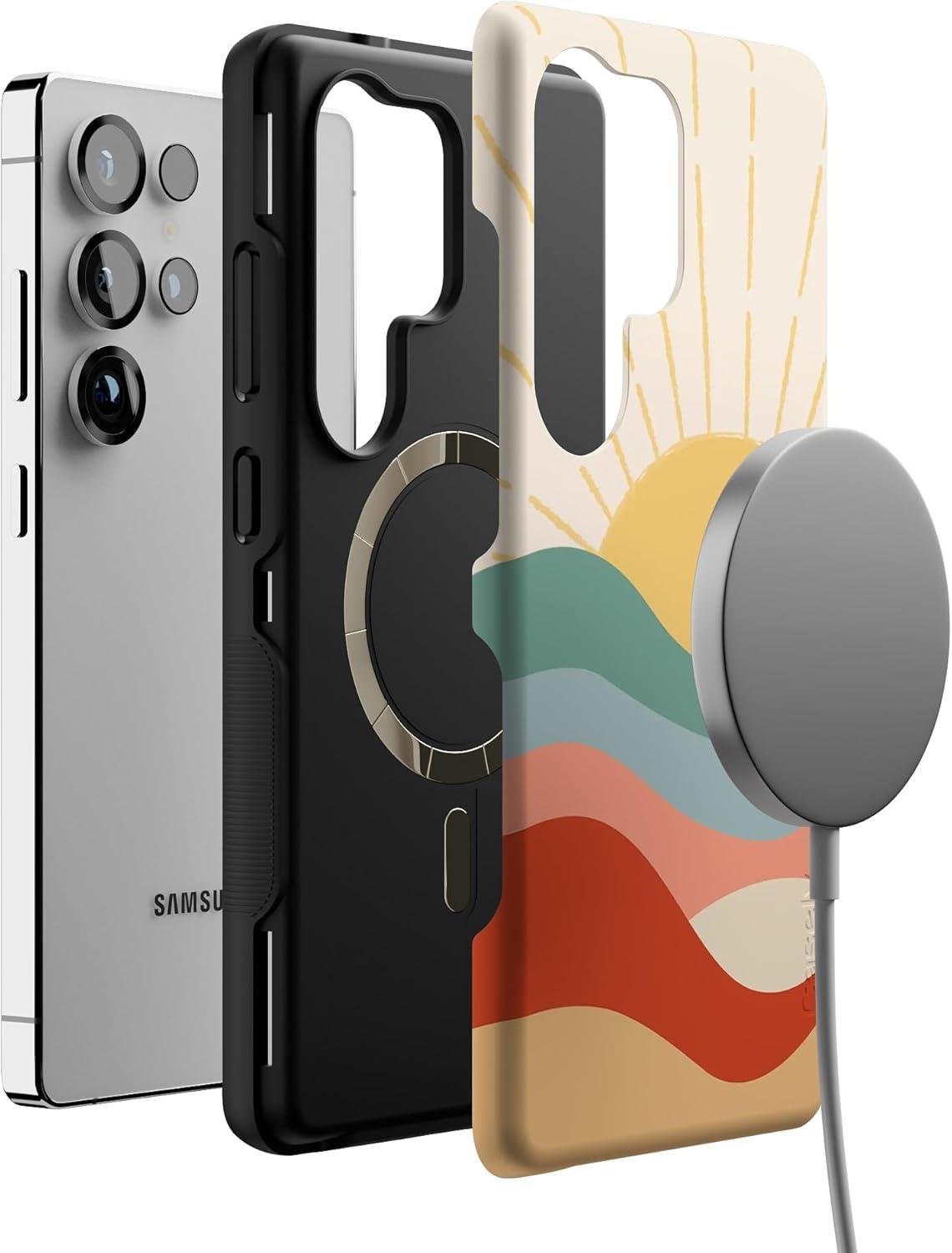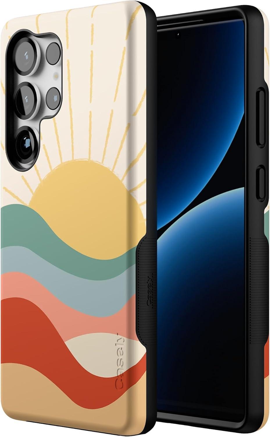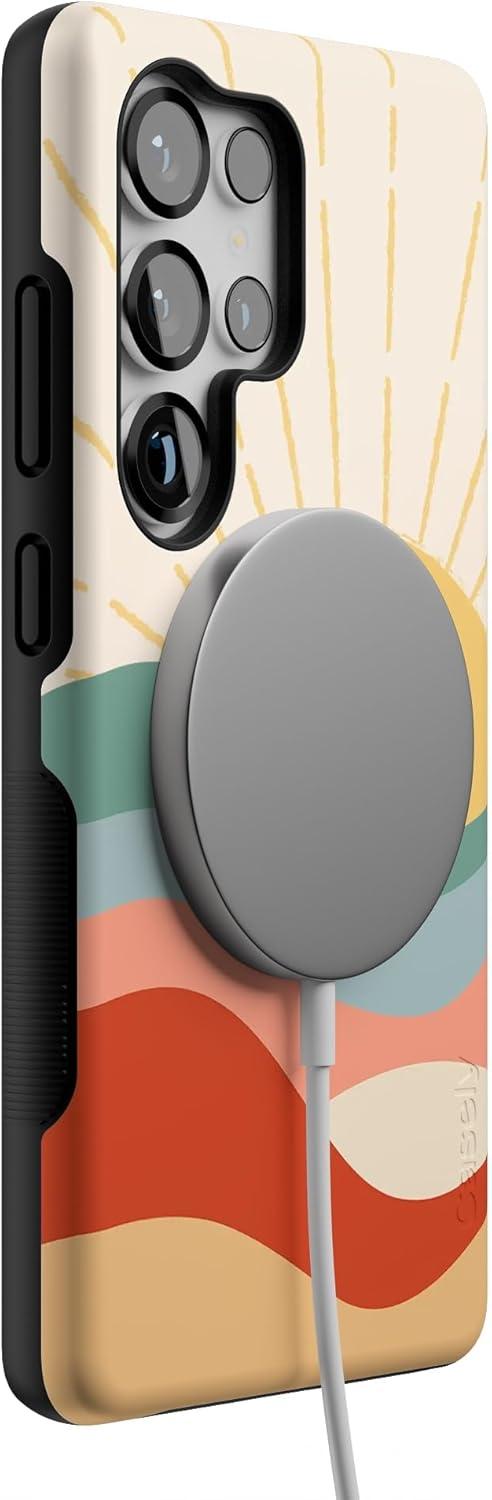 Casely Galaxy S25 Ultra Case | Chateau Pups | French Dog | Compatible with MagSafe | Bold Protective Design(Here Comes the Sun | Colorblock Sunset)