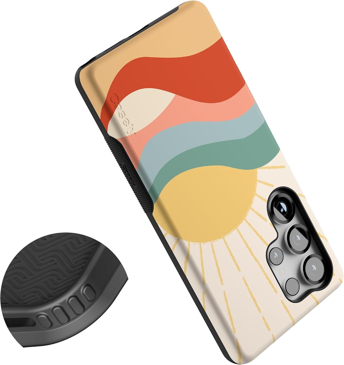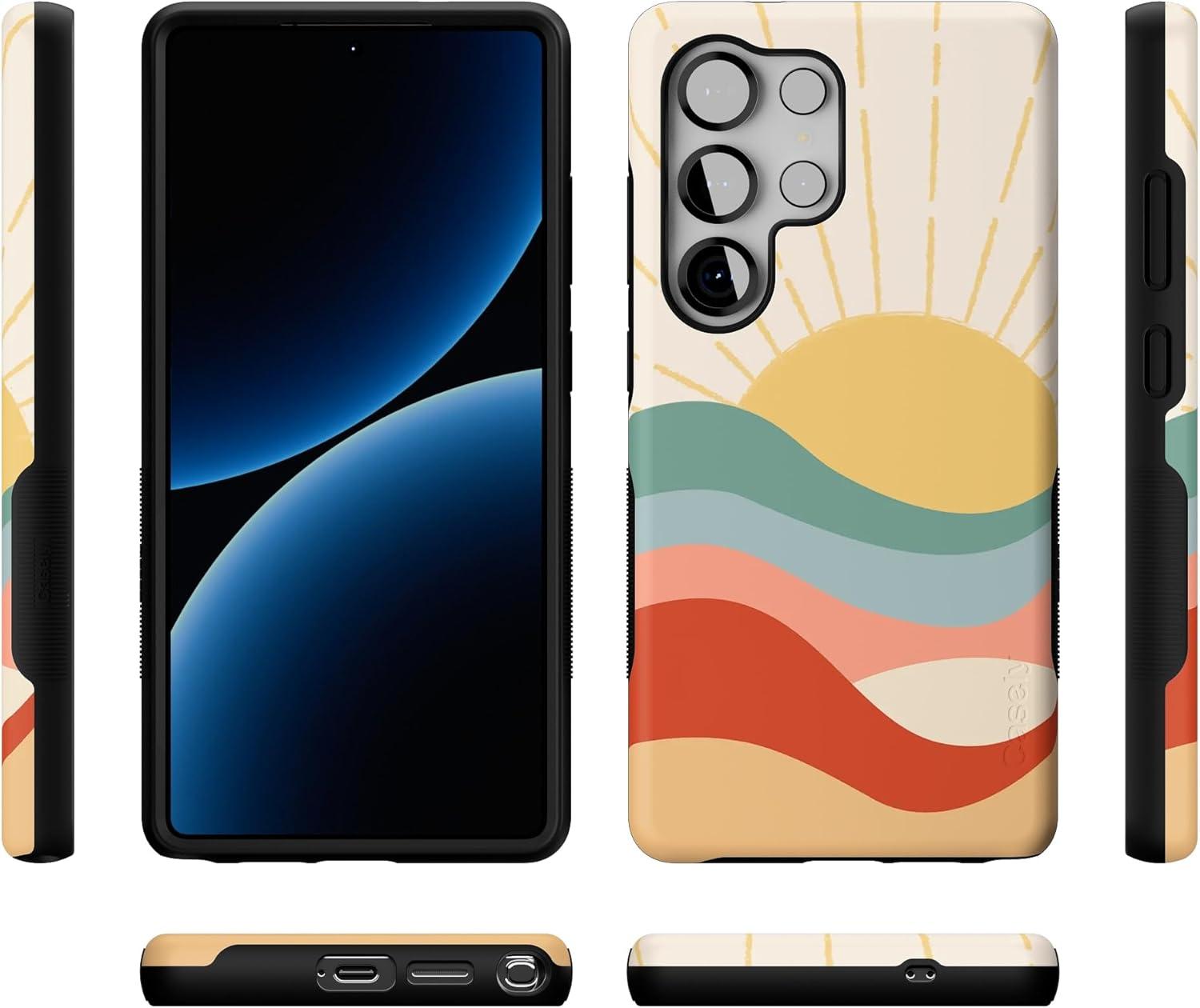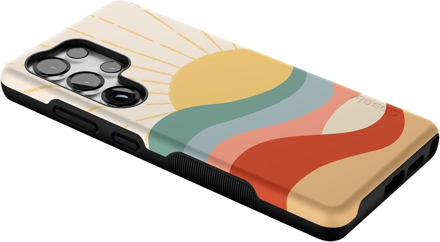 Casely Galaxy S25 Ultra Case | Chateau Pups | French Dog | Compatible with MagSafe | Bold Protective Design(Here Comes the Sun | Colorblock Sunset)