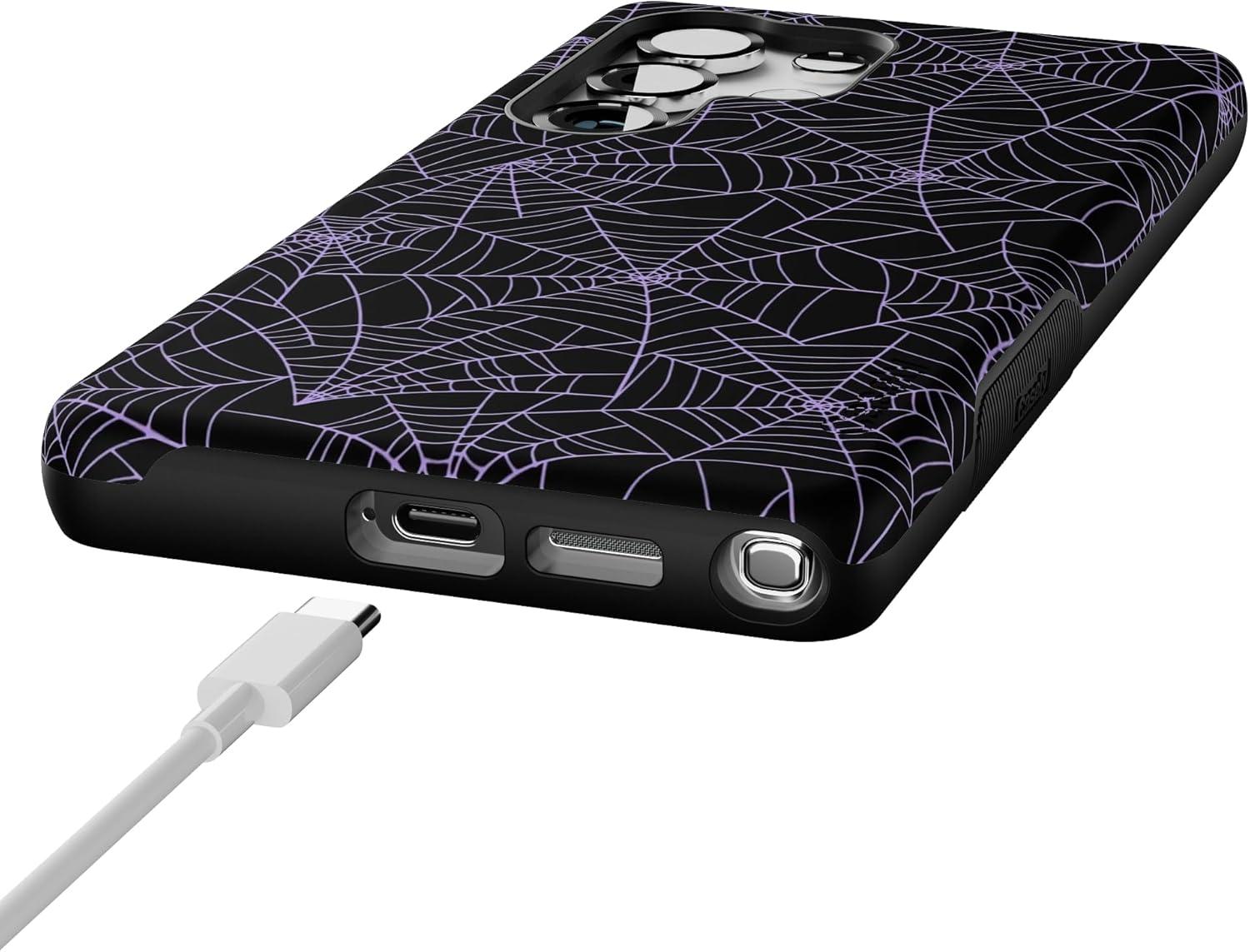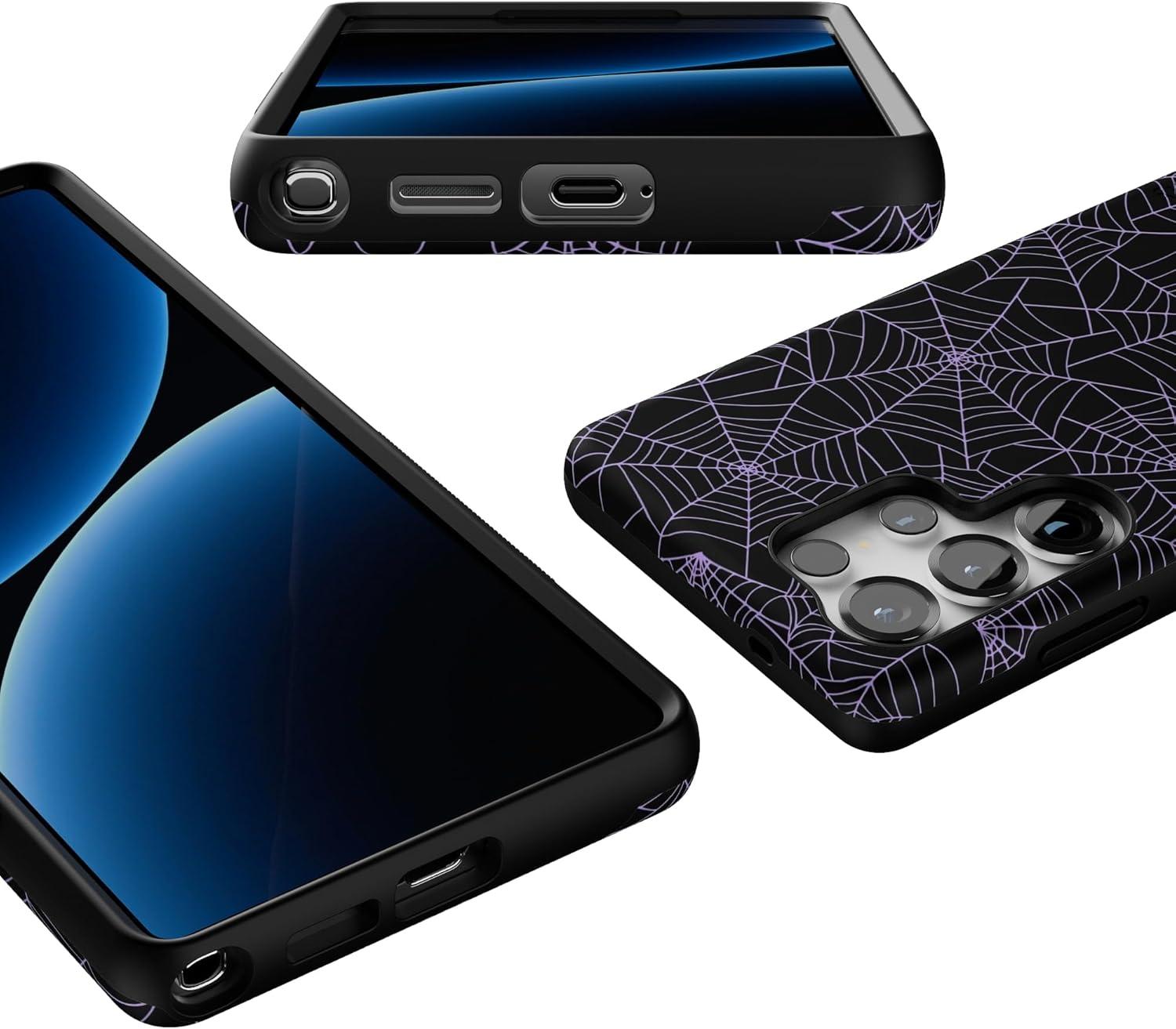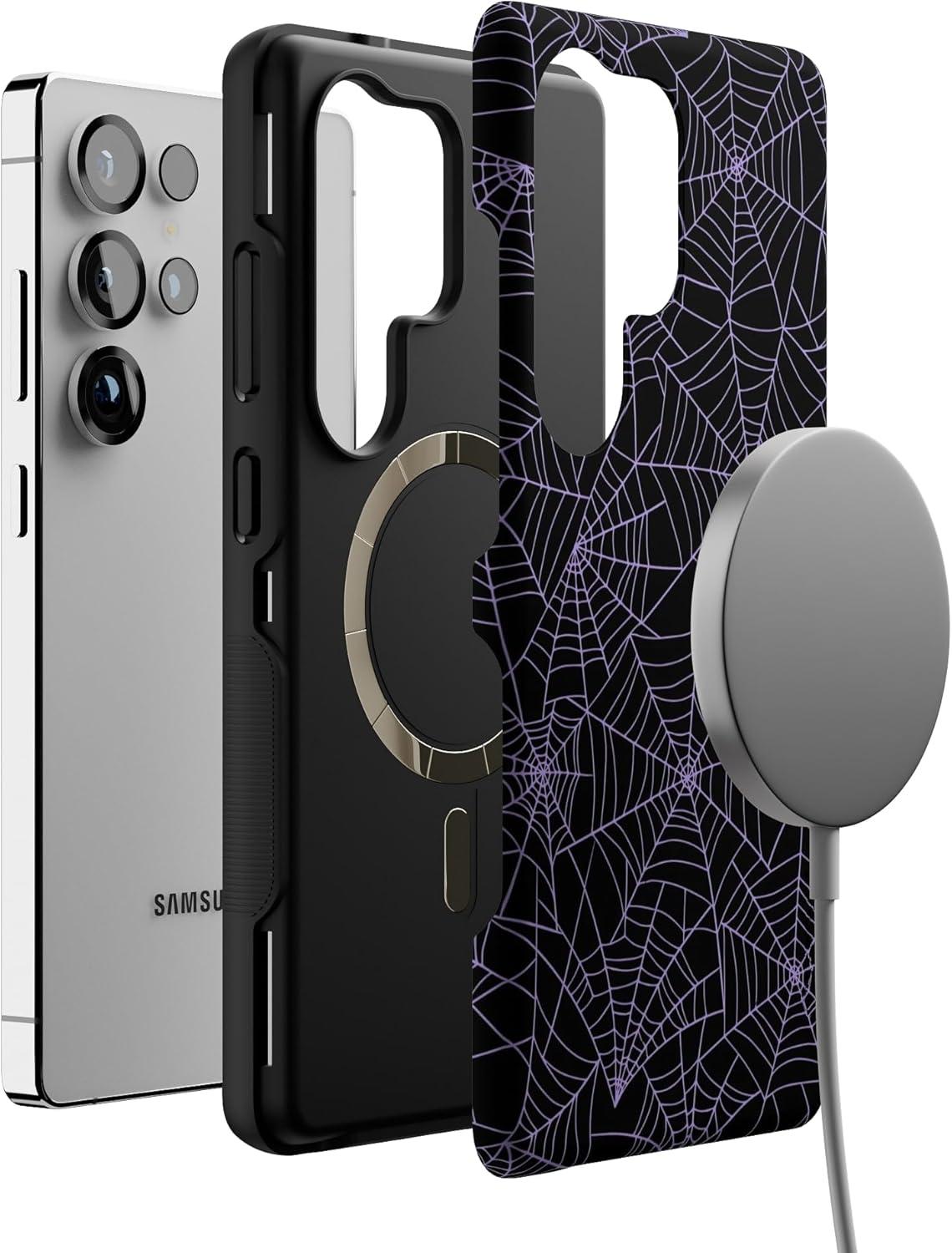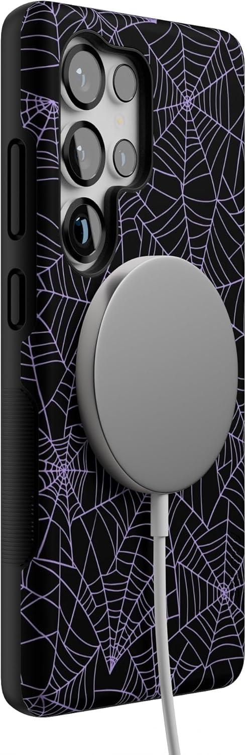 Casely Galaxy S25 Ultra Case | Chateau Pups | French Dog | Compatible with MagSafe | Bold Protective Design(Midnight Web | Spider Web)