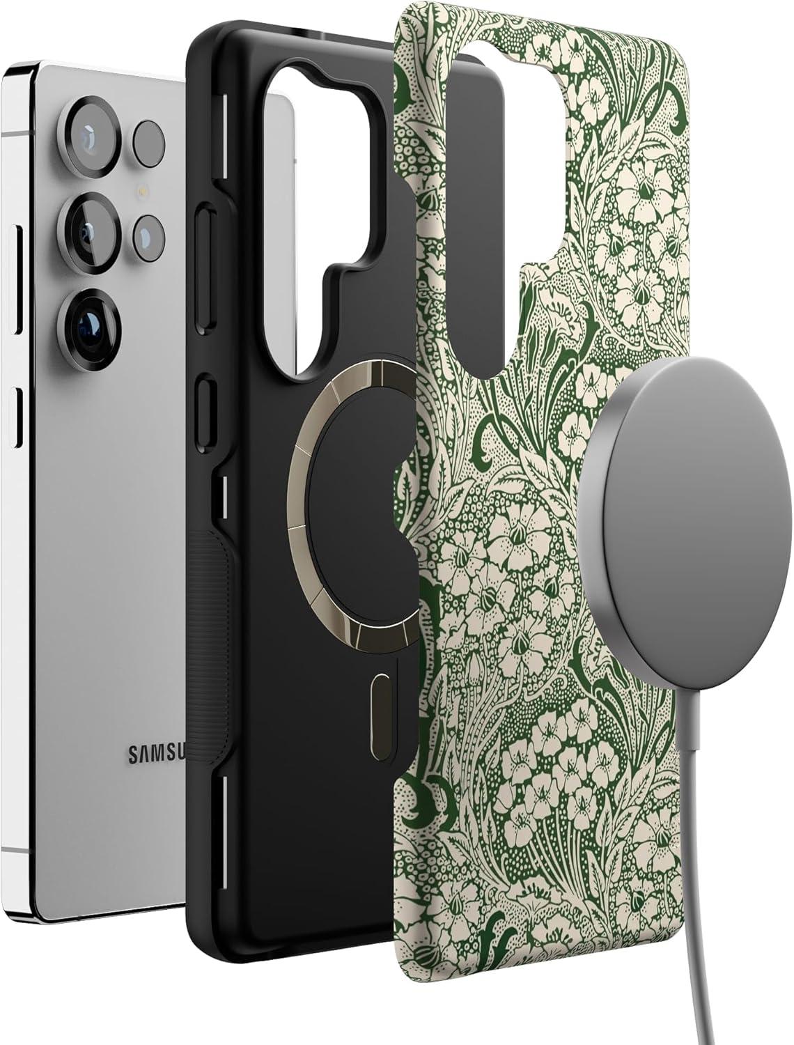 Casely Galaxy S25 Ultra Case | Chateau Pups | French Dog | Compatible with MagSafe | Bold Protective Design(Mystic Meadow | Green Gardens)