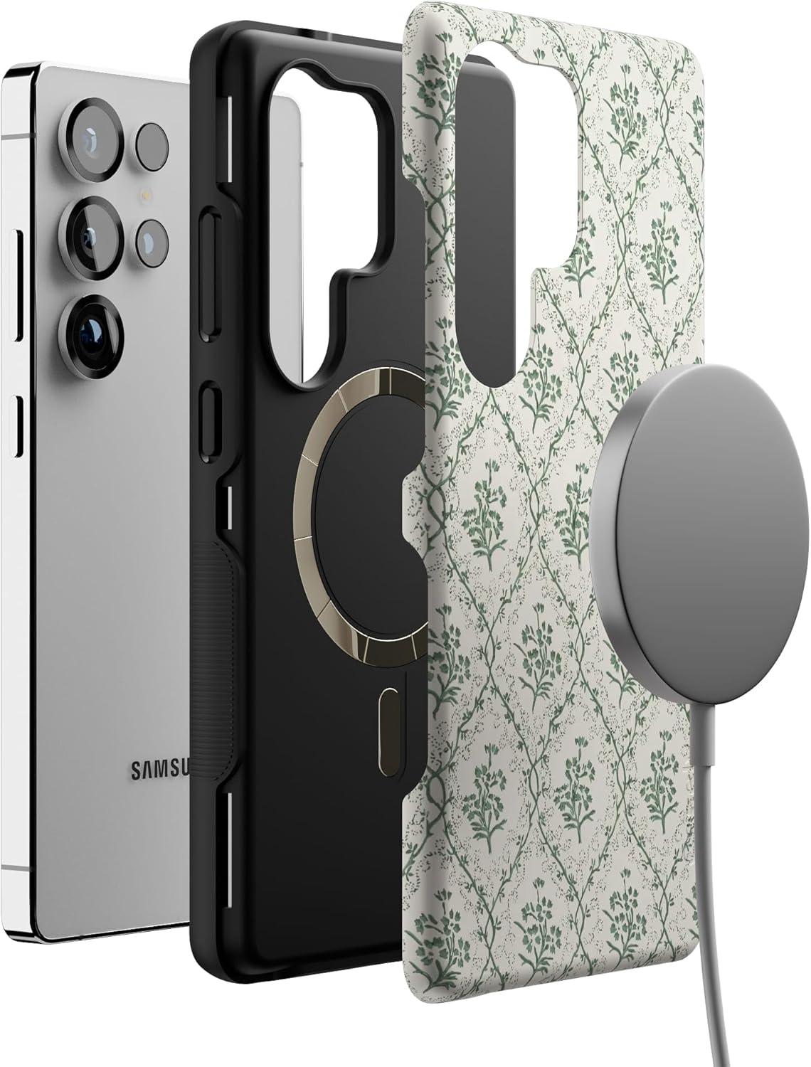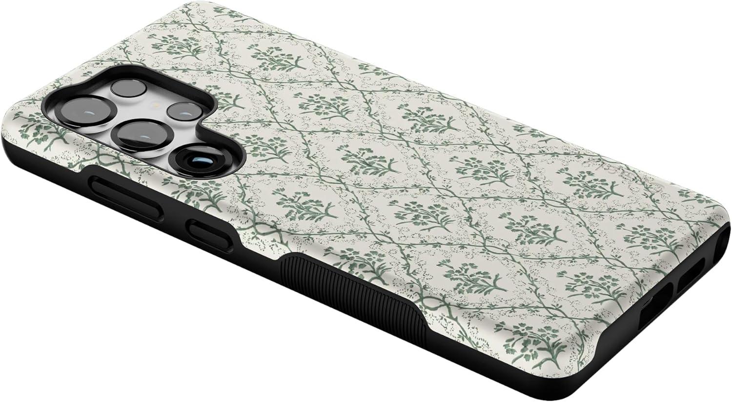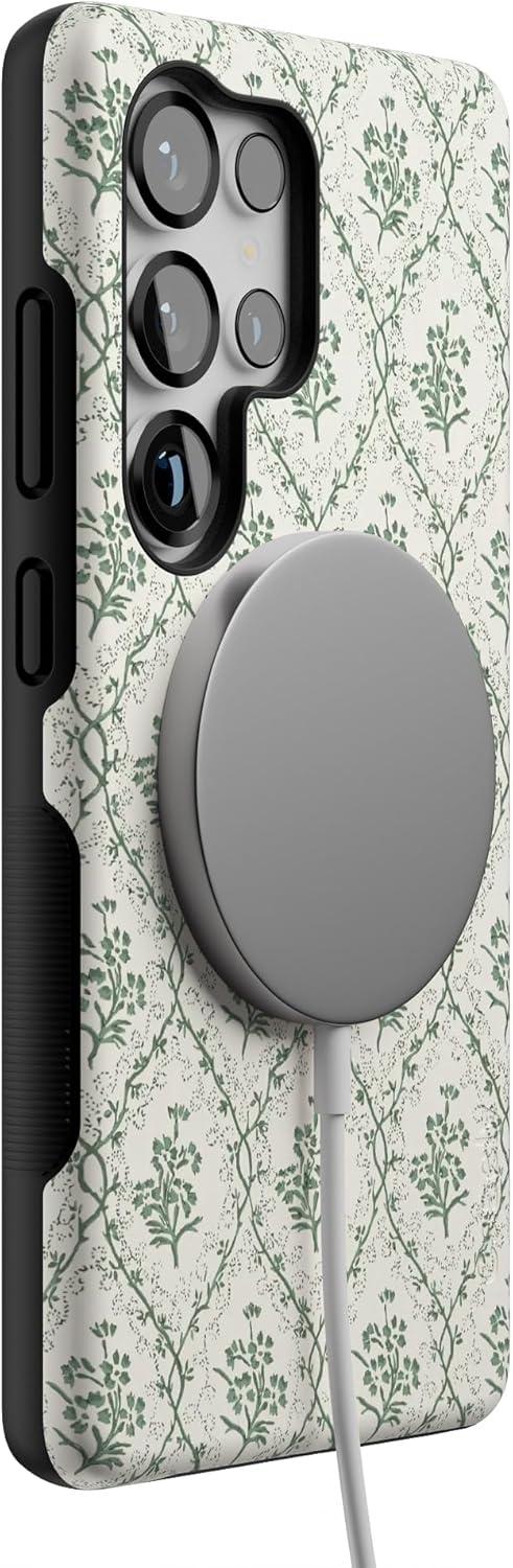 Casely Galaxy S25 Ultra Case | Chateau Pups | French Dog | Compatible with MagSafe | Bold Protective Design(Sage Tapestry | Floral Vines)