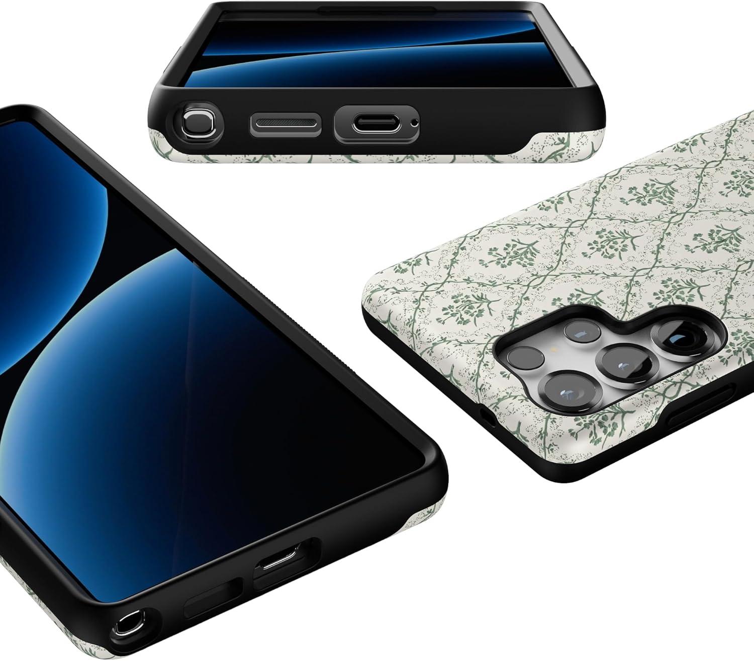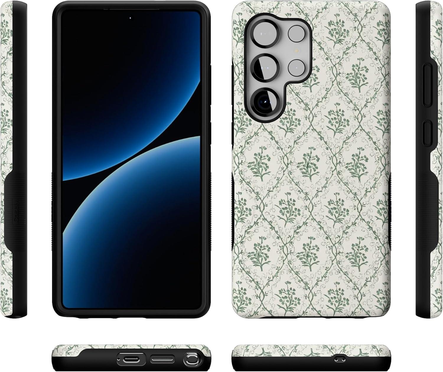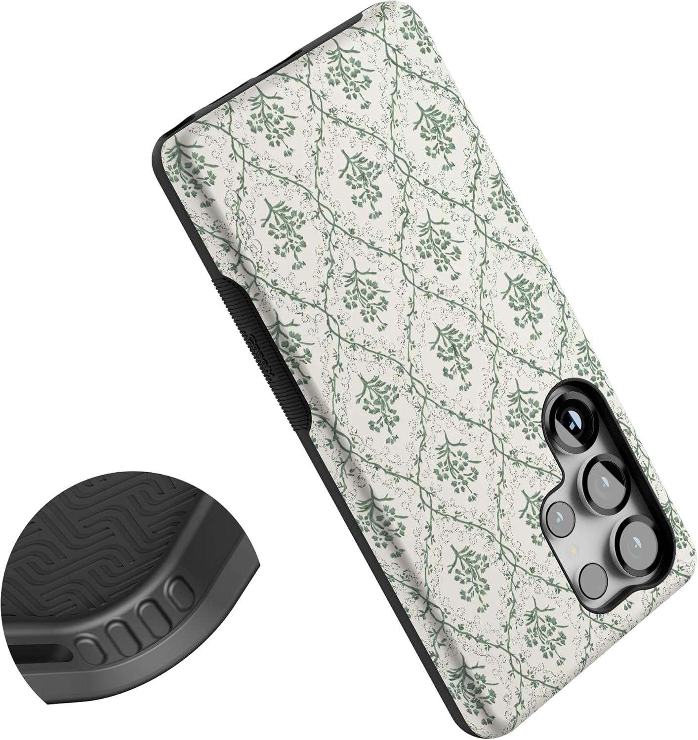 Casely Galaxy S25 Ultra Case | Chateau Pups | French Dog | Compatible with MagSafe | Bold Protective Design(Sage Tapestry | Floral Vines)