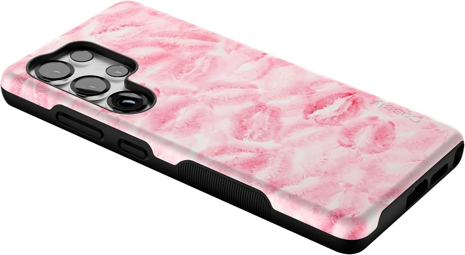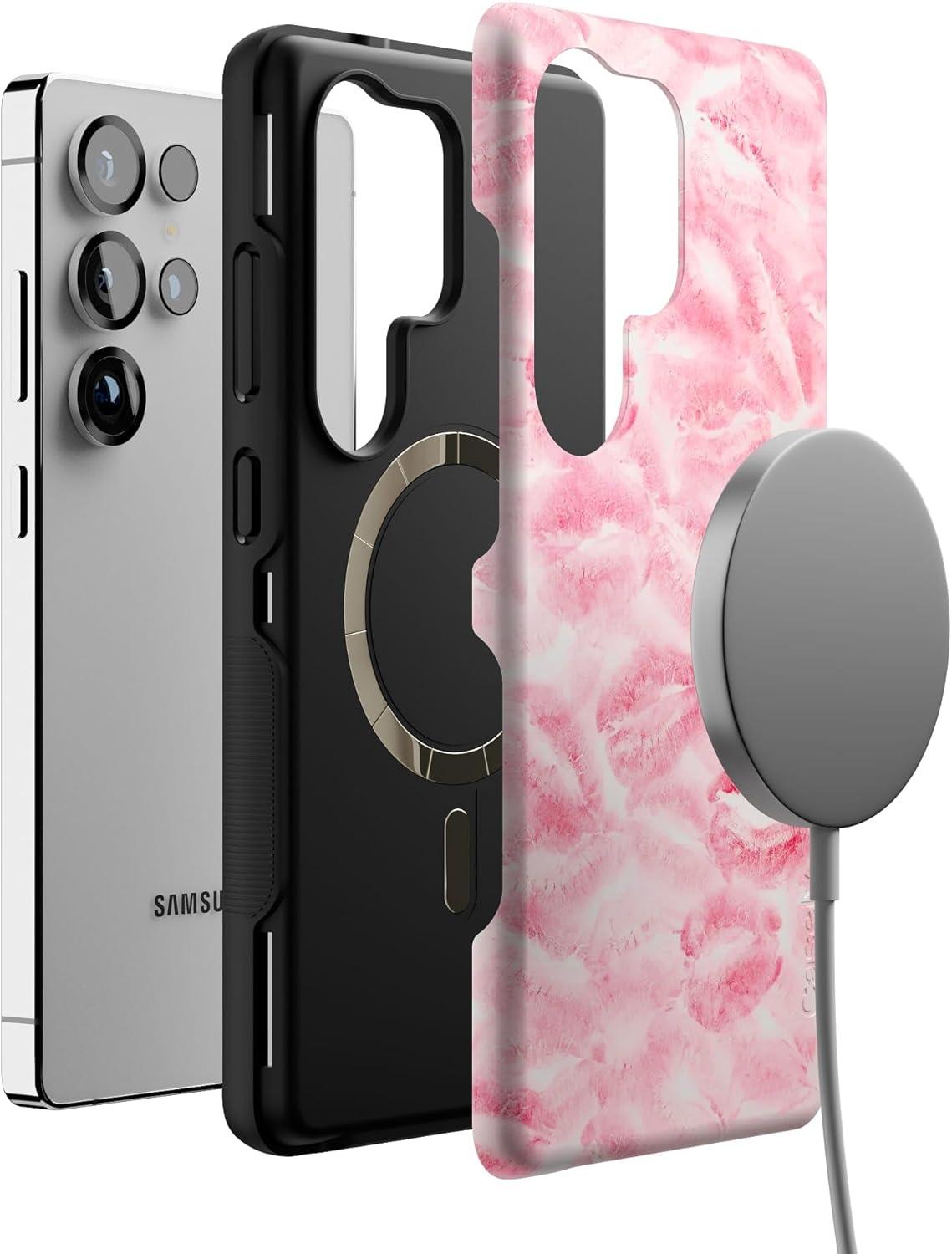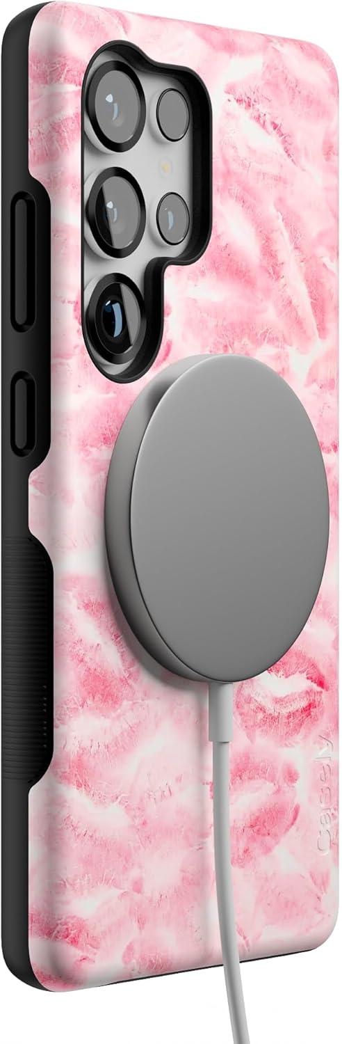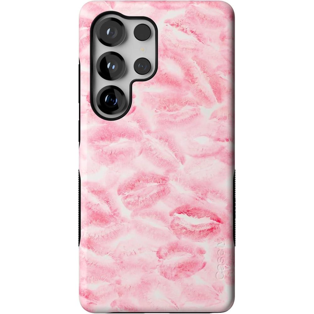 Casely Galaxy S25 Ultra Case | Chateau Pups | French Dog | Compatible with MagSafe | Bold Protective Design(Sealed with a Kiss | Pink Lipstick)