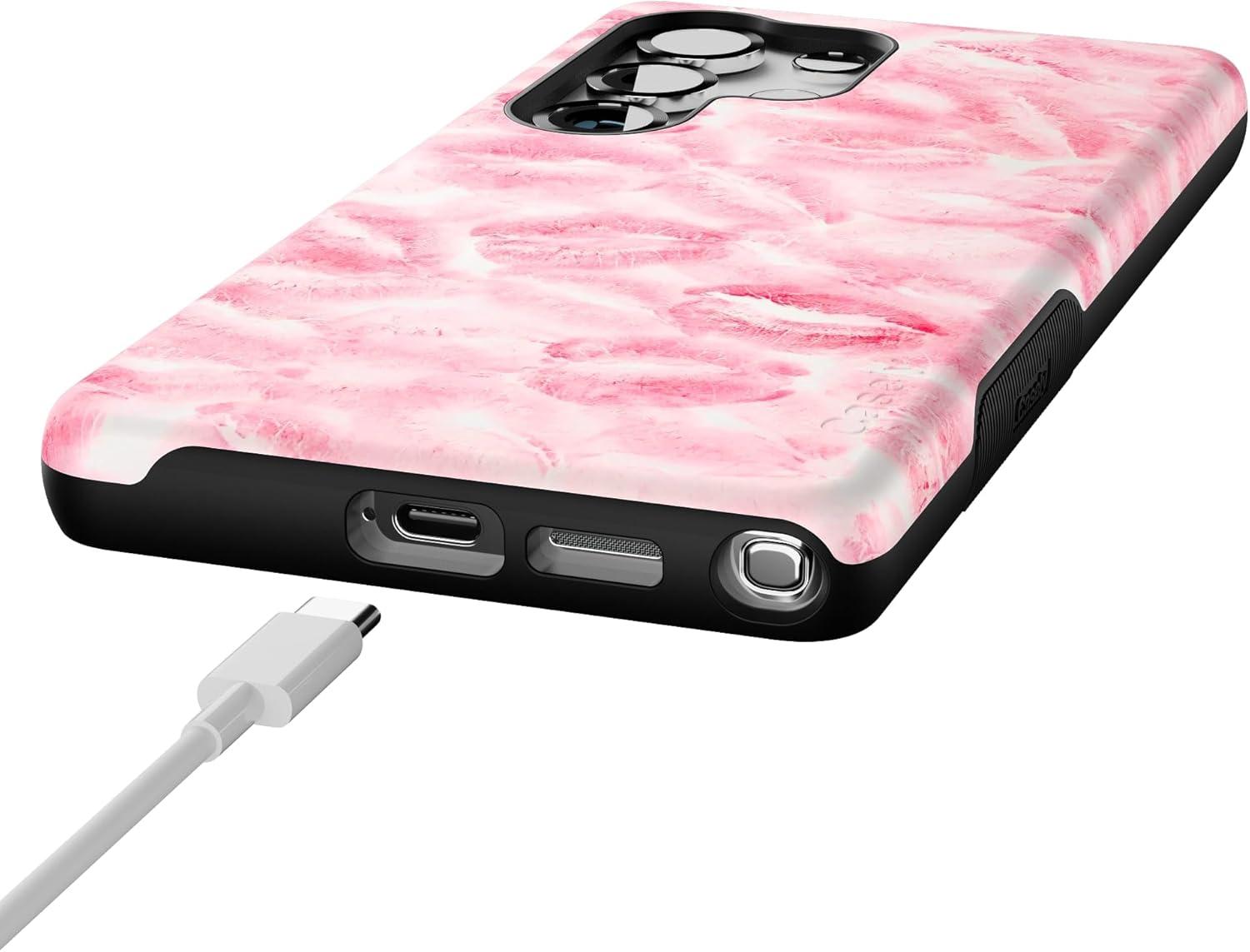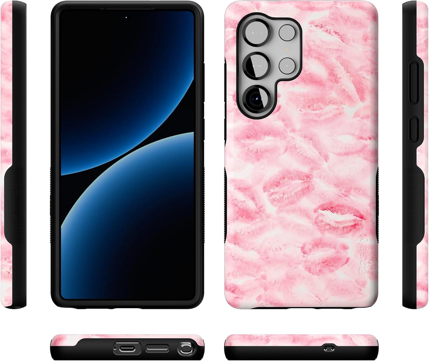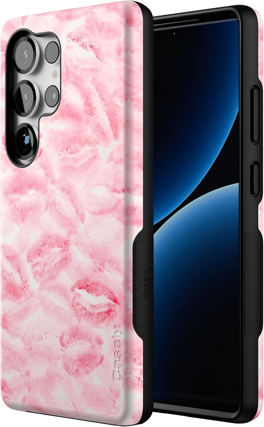 Casely Galaxy S25 Ultra Case | Chateau Pups | French Dog | Compatible with MagSafe | Bold Protective Design(Sealed with a Kiss | Pink Lipstick)