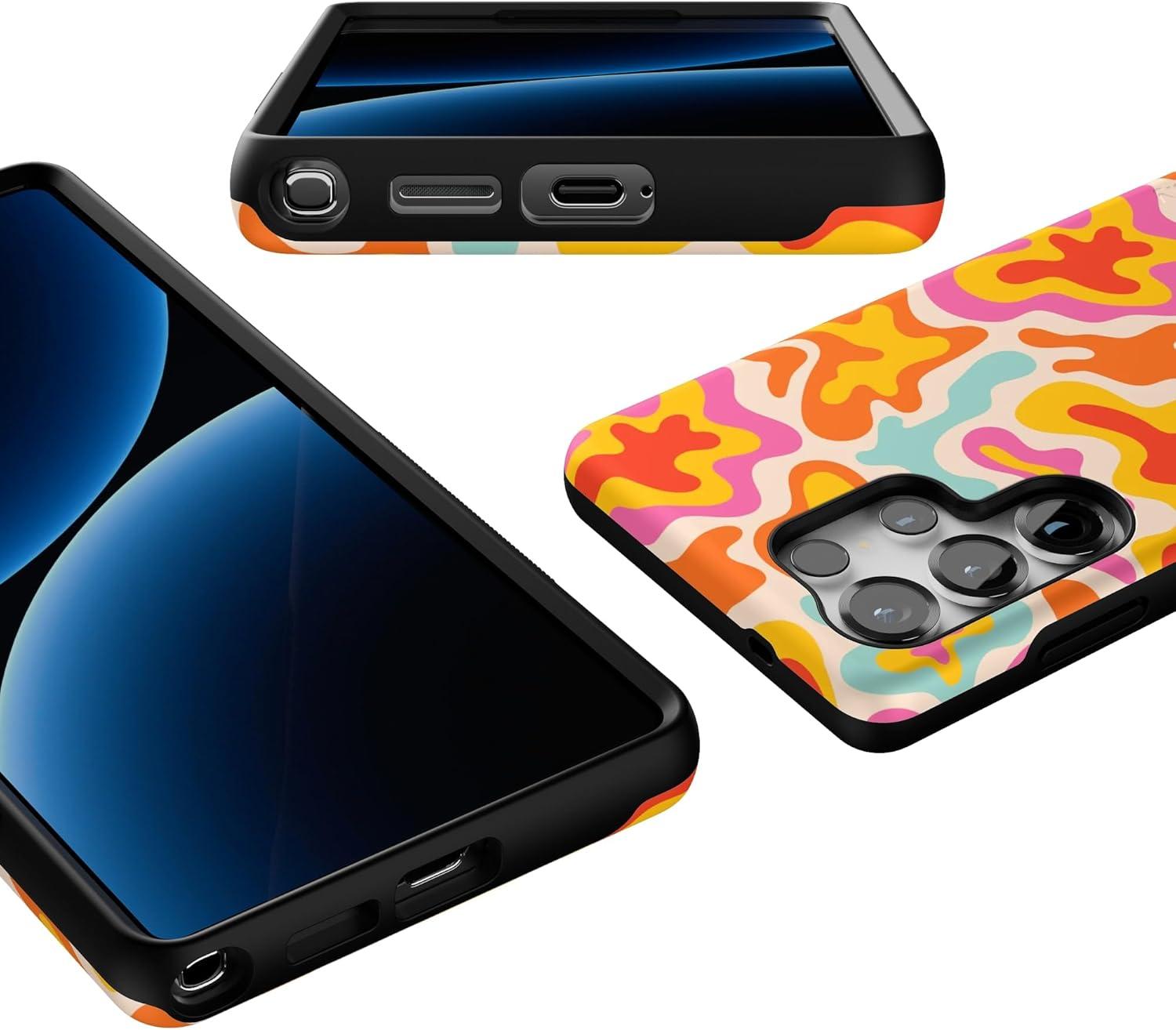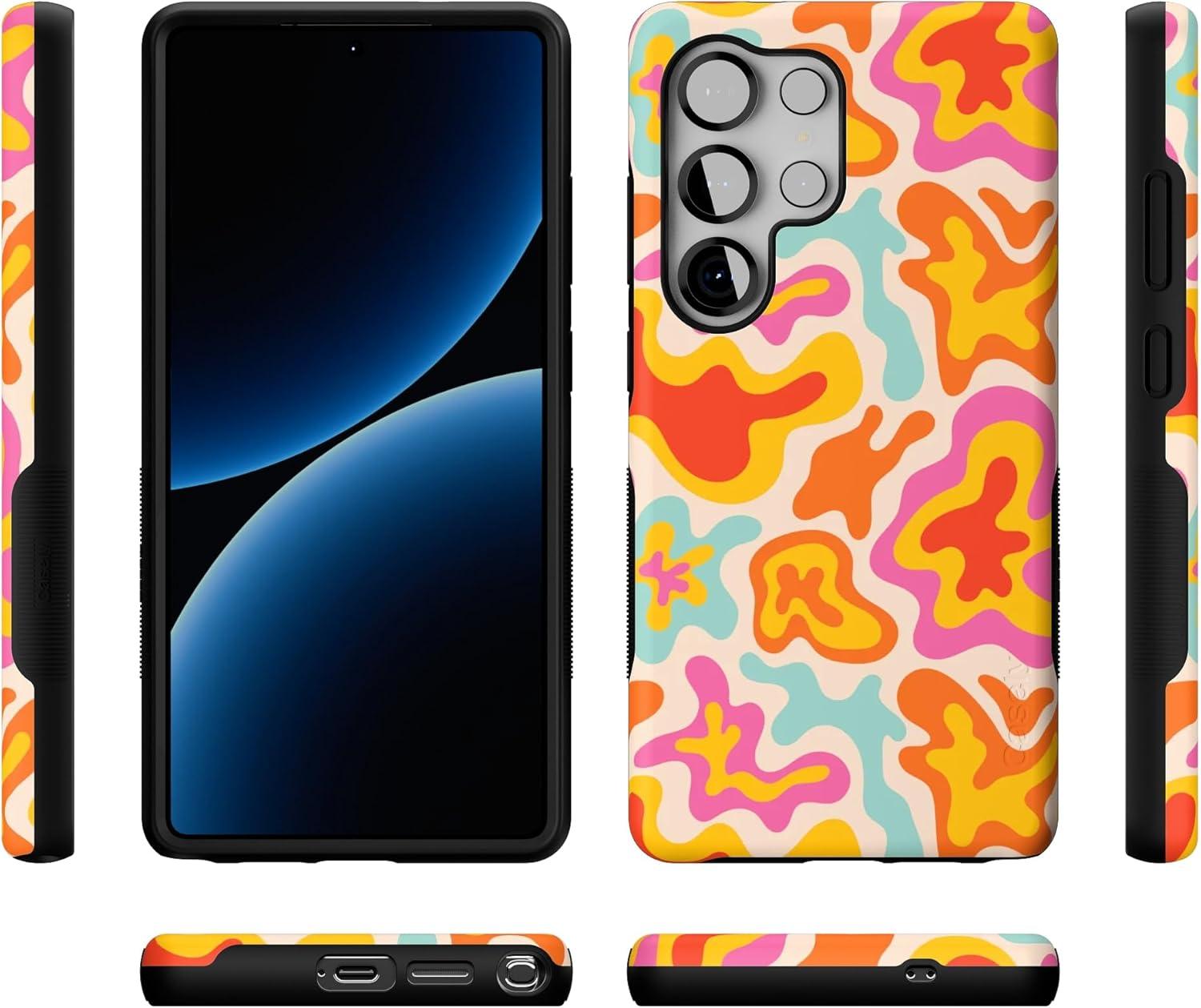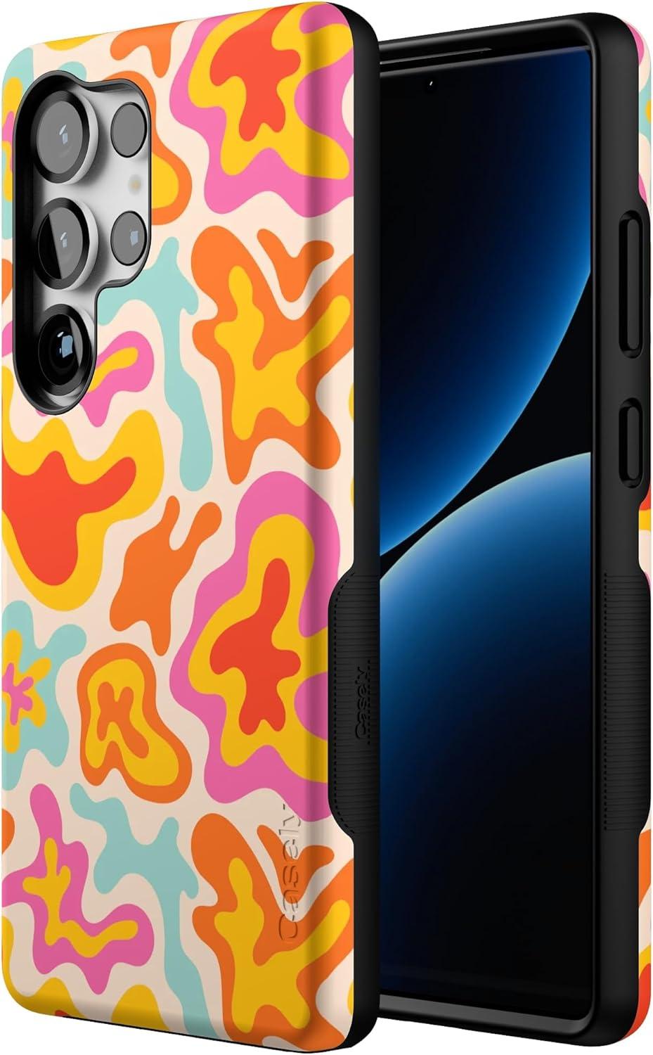 Casely Galaxy S25 Ultra Case | Chateau Pups | French Dog | Compatible with MagSafe | Bold Protective Design(Tropical Color Splash | Abstract Retro)