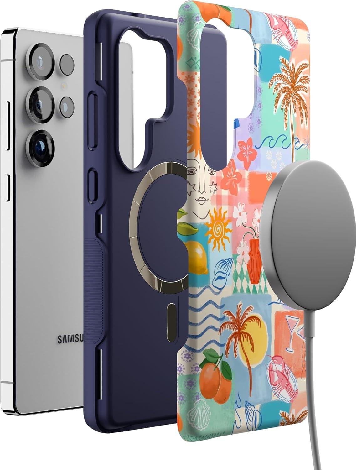 Casely Galaxy S25 Ultra Case | Chateau Pups | French Dog | Compatible with MagSafe | Bold Protective Design(Tropical Heat | Beachy Collage)