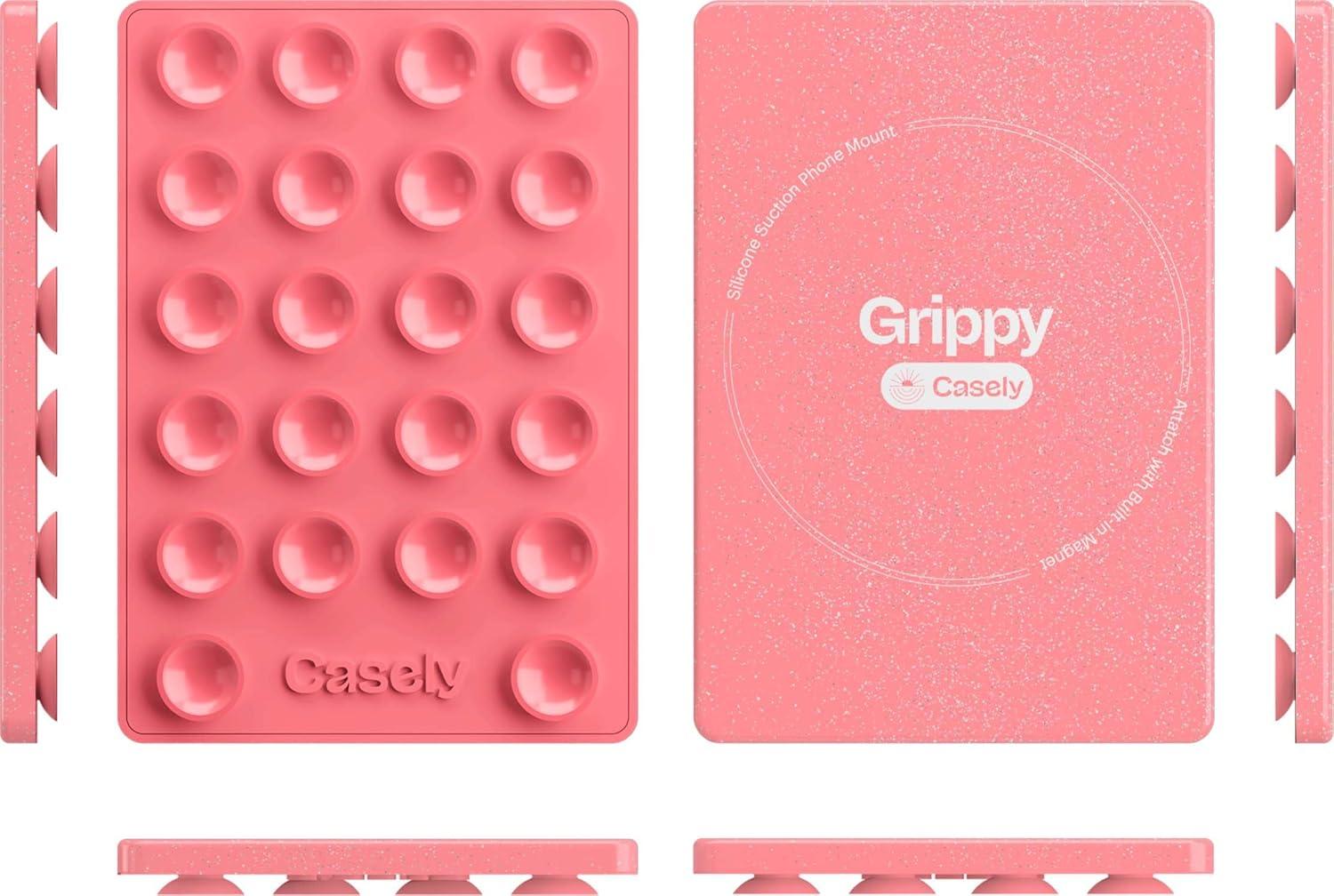 Casely Grippy Starfish Wishes | Pink Glitter | MagSafe Compatible Cell Phone Mount Silicone Suction Cup Sticky Phone Holder and Stand