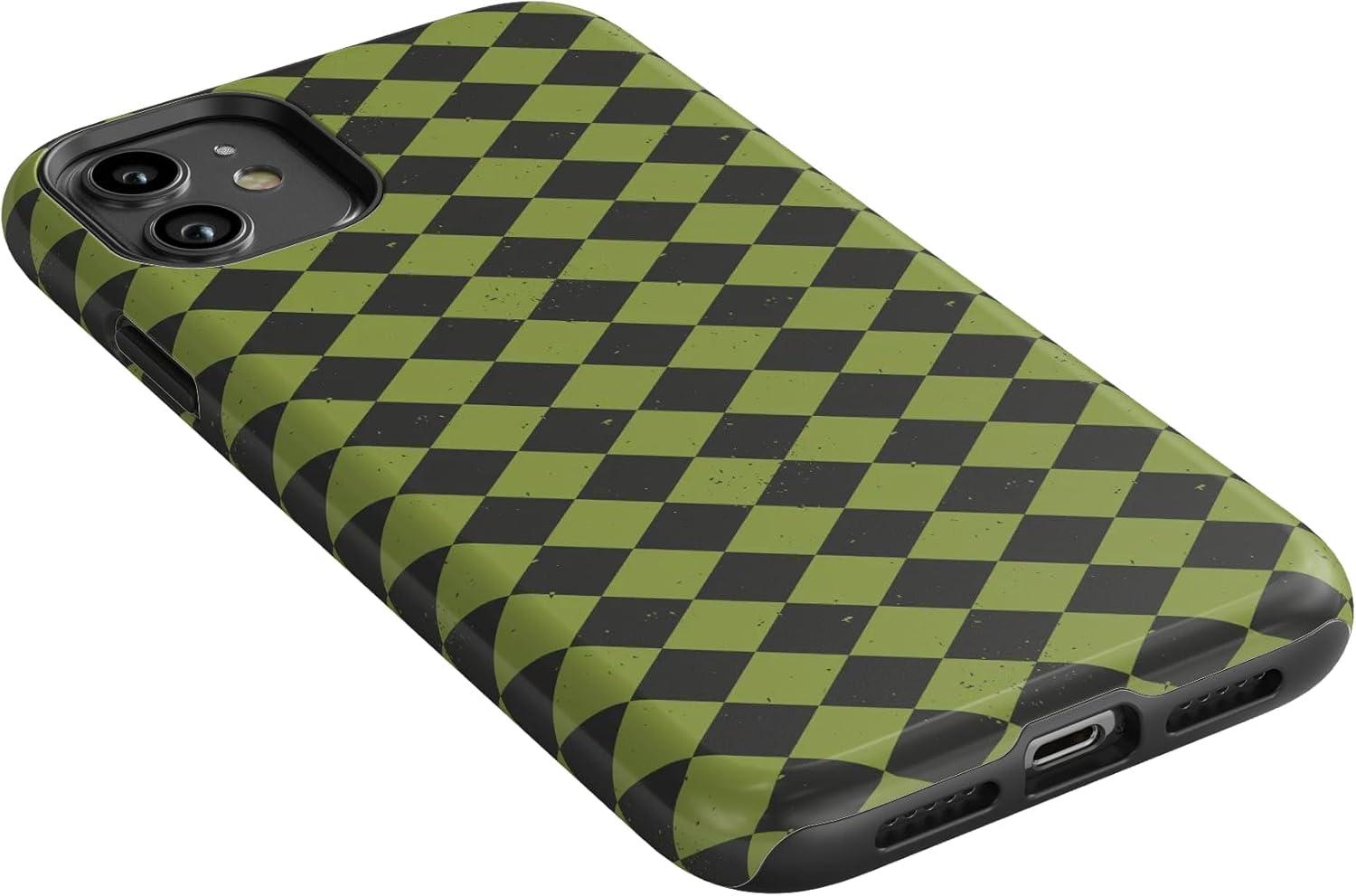 Casely iPhone 11 Case | Harlequin Wicked Diamond | Black and Green | Essential Slim Dual-Layer Protective Design