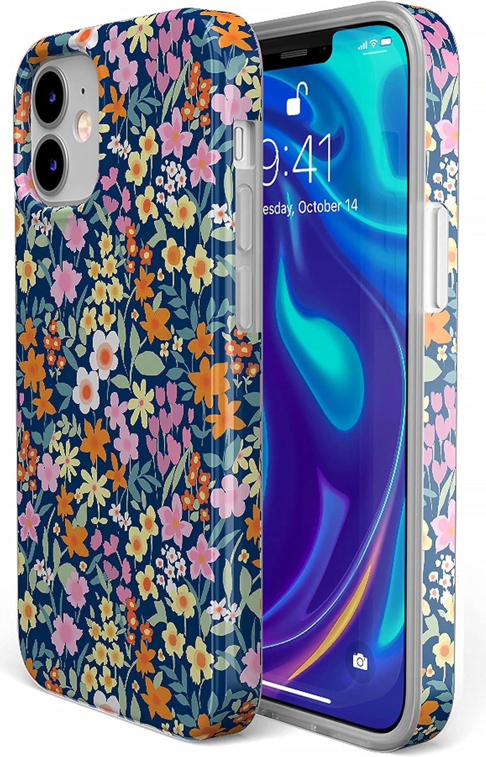 Casely iPhone 11 Case | Into The Wild | Black Leopard | Classic Ultra Slim Design(Full Bloom | Navy Floral)