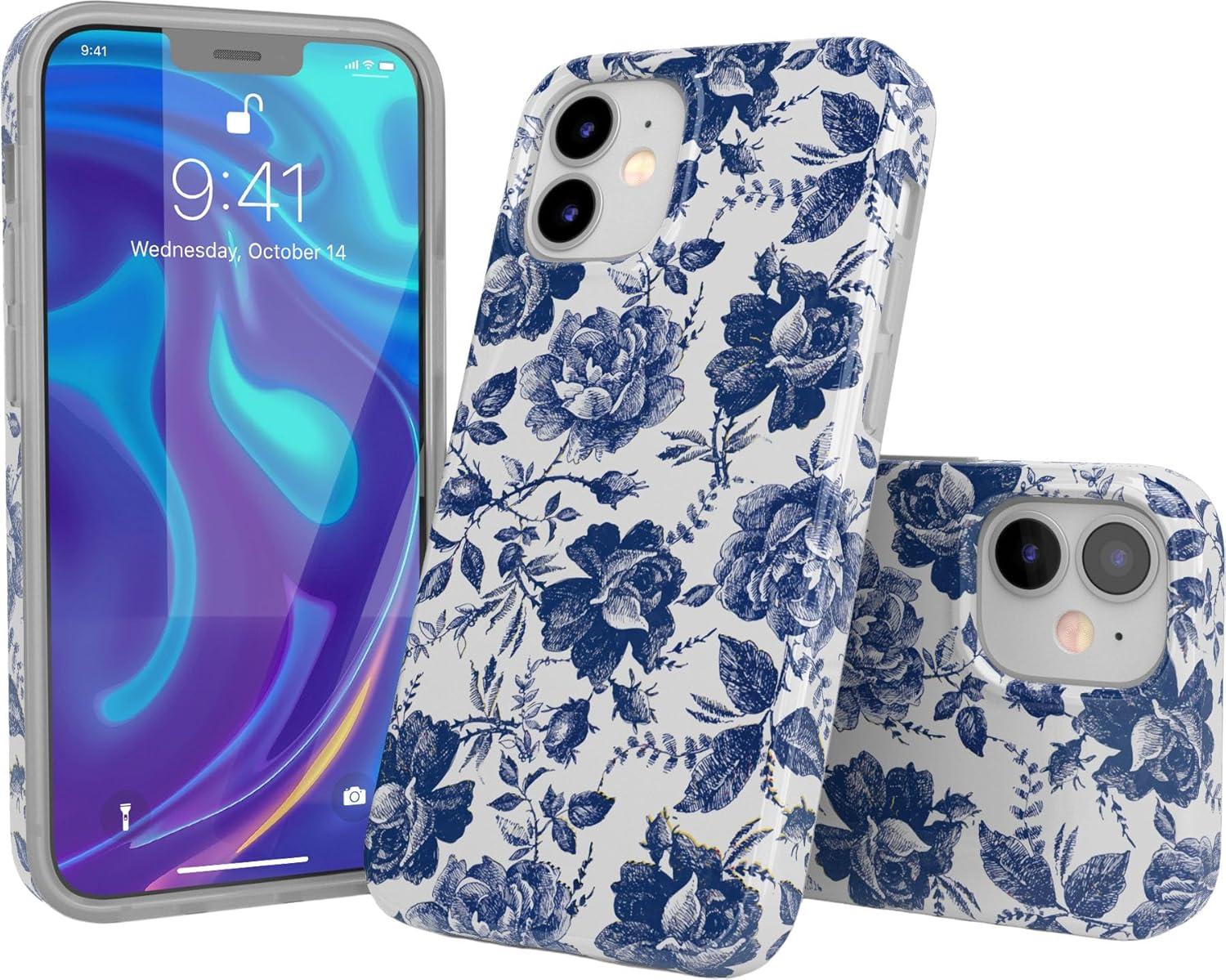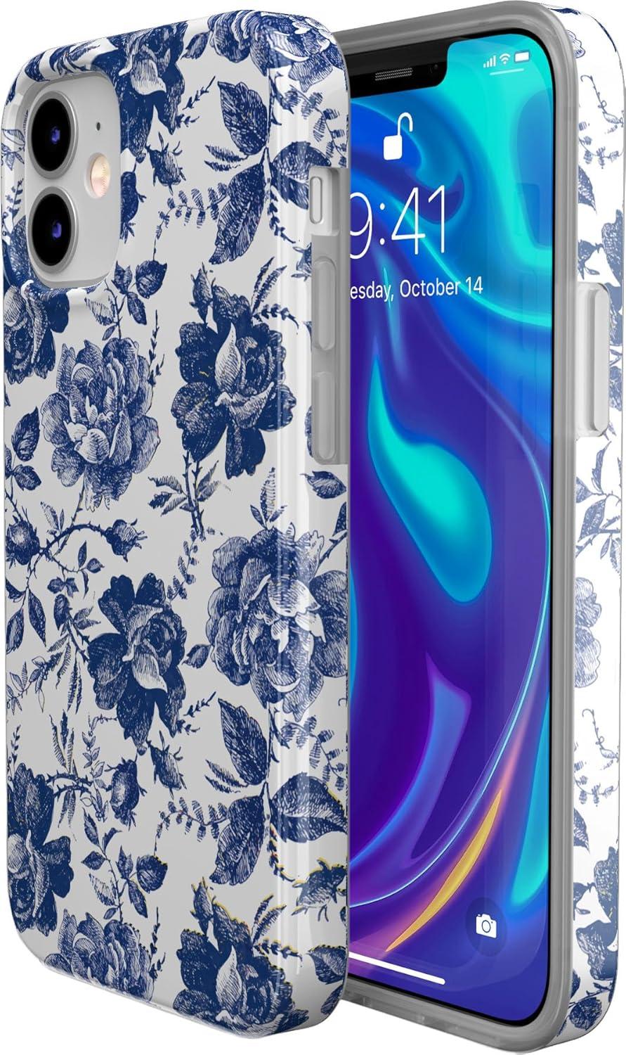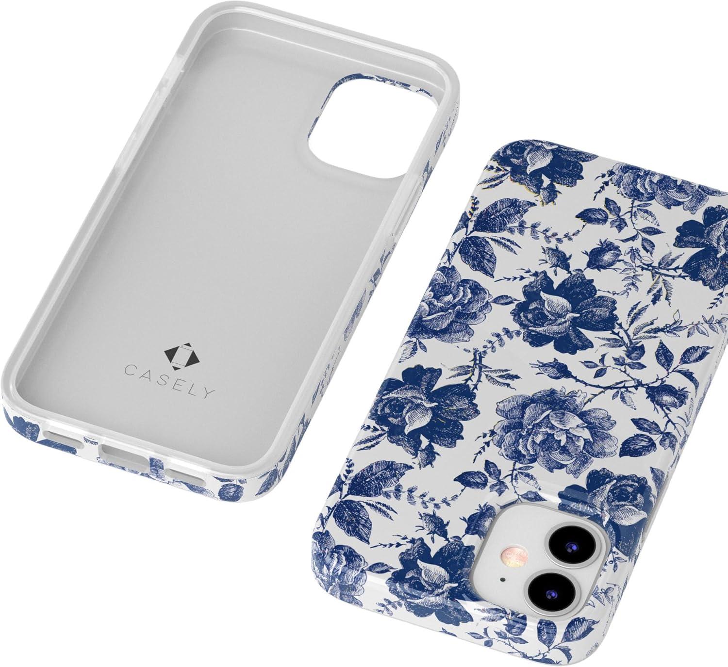 Casely iPhone 11 Case | Into The Wild | Black Leopard | Classic Ultra Slim Design(Rose to Fame | Blue & White Rose Floral)