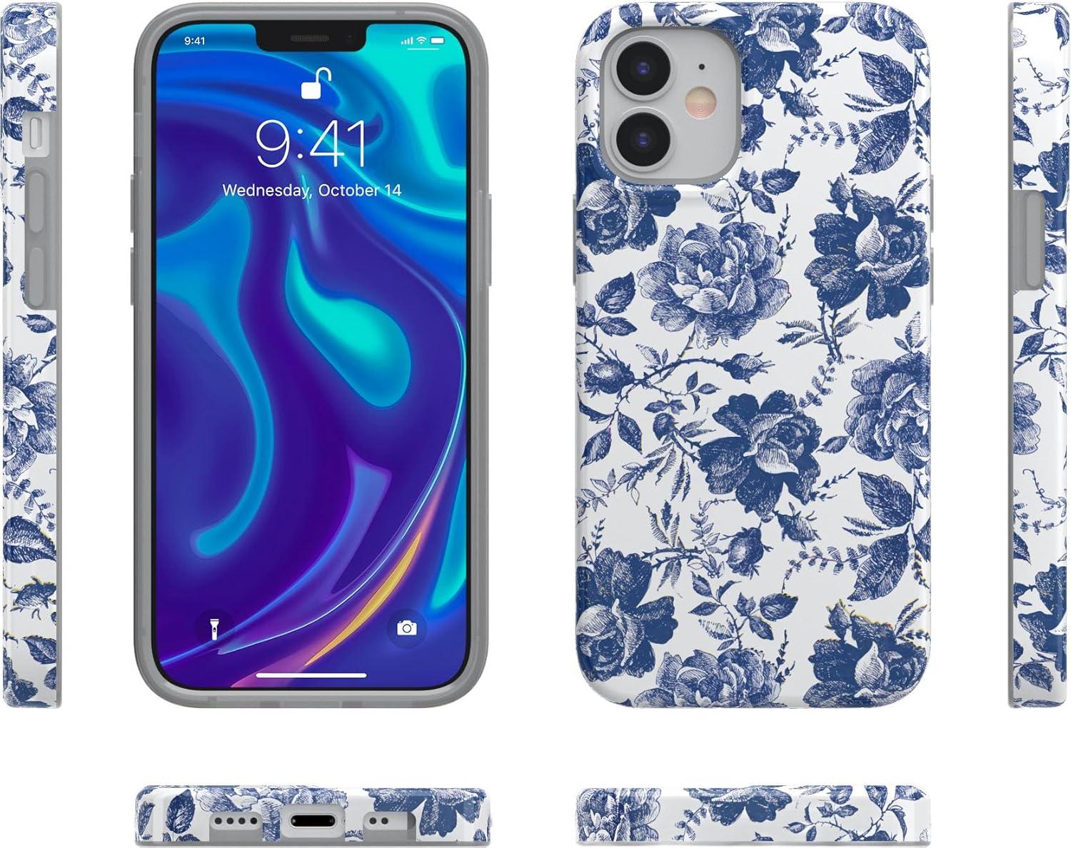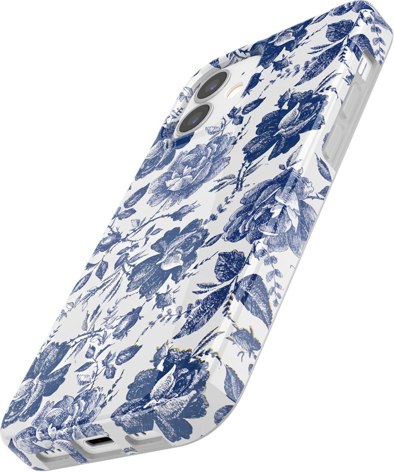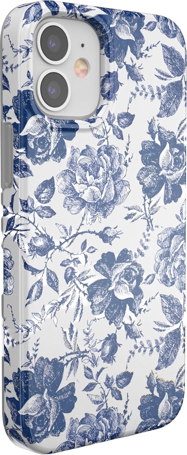Casely iPhone 11 Case | Into The Wild | Black Leopard | Classic Ultra Slim Design(Rose to Fame | Blue & White Rose Floral)