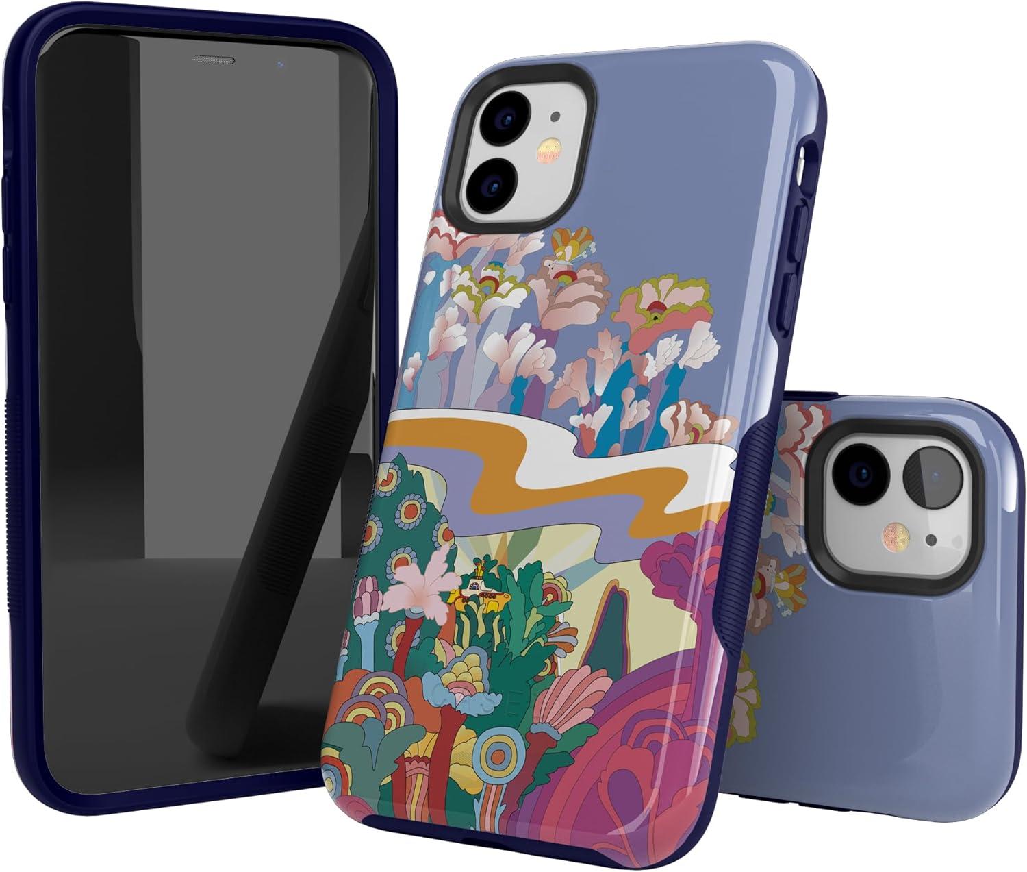 Casely iPhone 11 Case | Rose to Fame | Blue & White Floral | Bold Protective Design(Beatles | Beneath the Waves | Yellow Submarine)