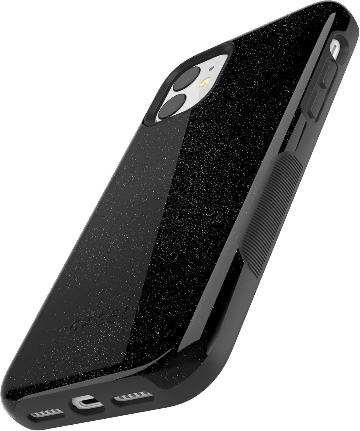 Casely iPhone 11 Case | Rose to Fame | Blue & White Floral | Bold Protective Design(Midnight Onyx | Black Shimmer)