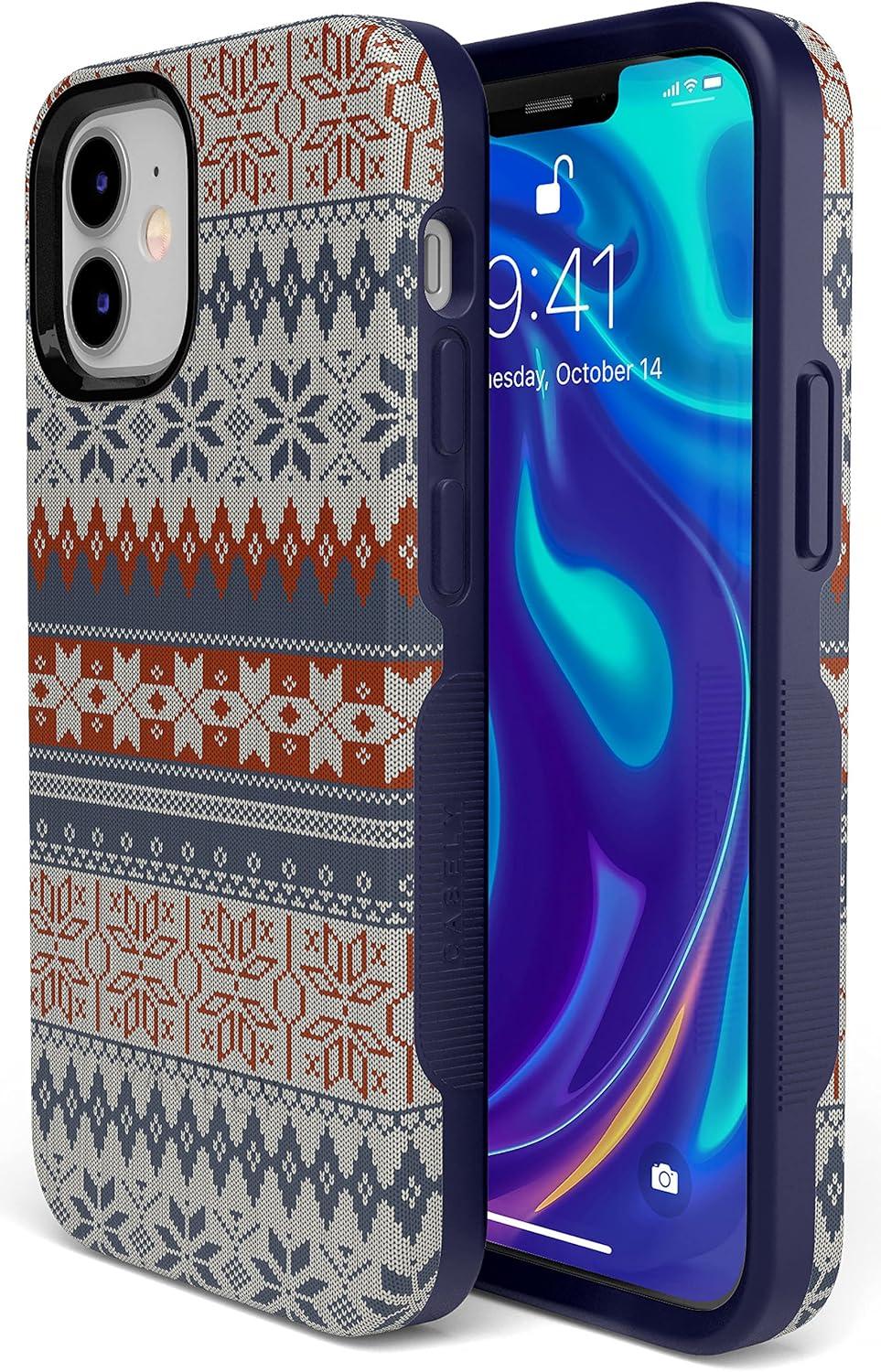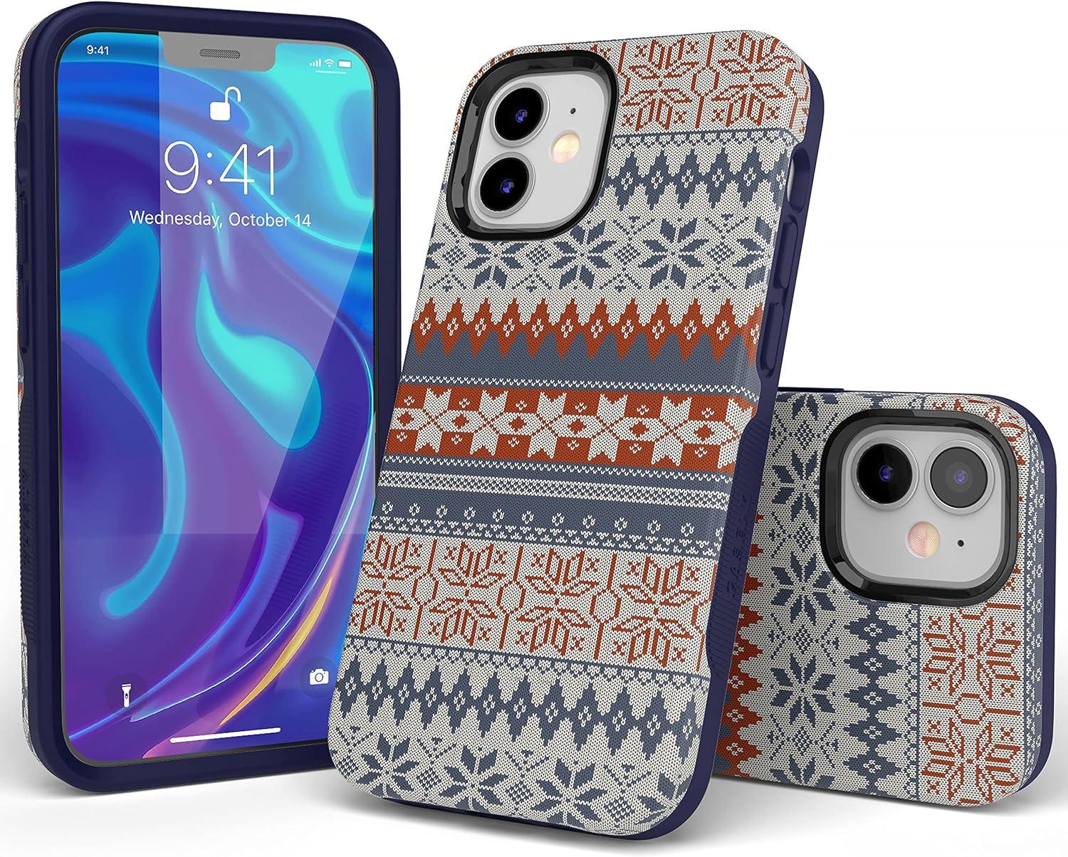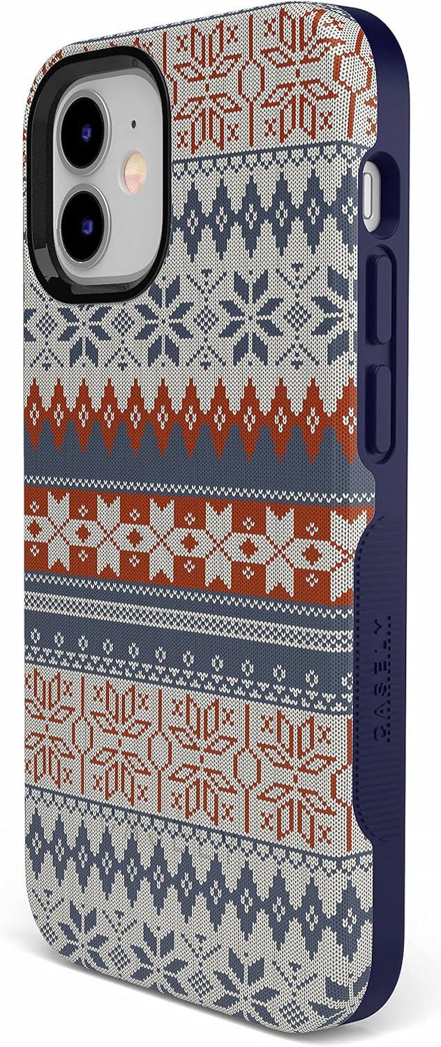Casely iPhone 11 Case | Rose to Fame | Blue & White Floral | Bold Protective Design(Sweater Weather | Holiday Knit)
