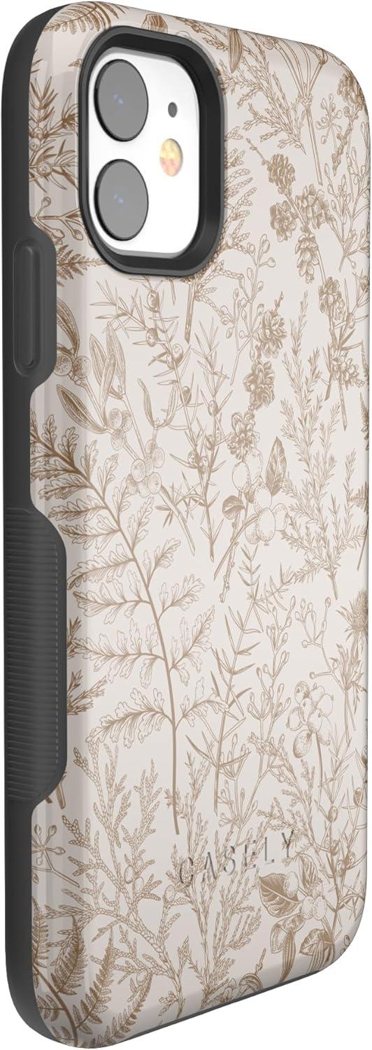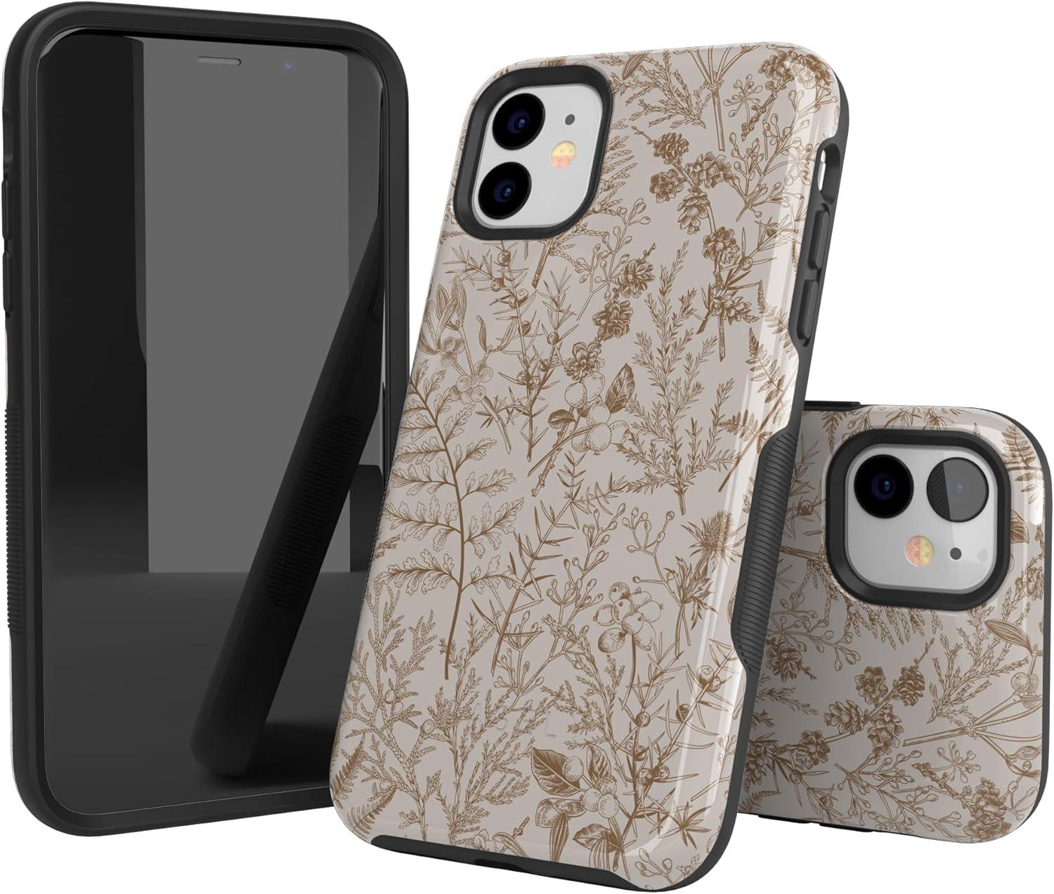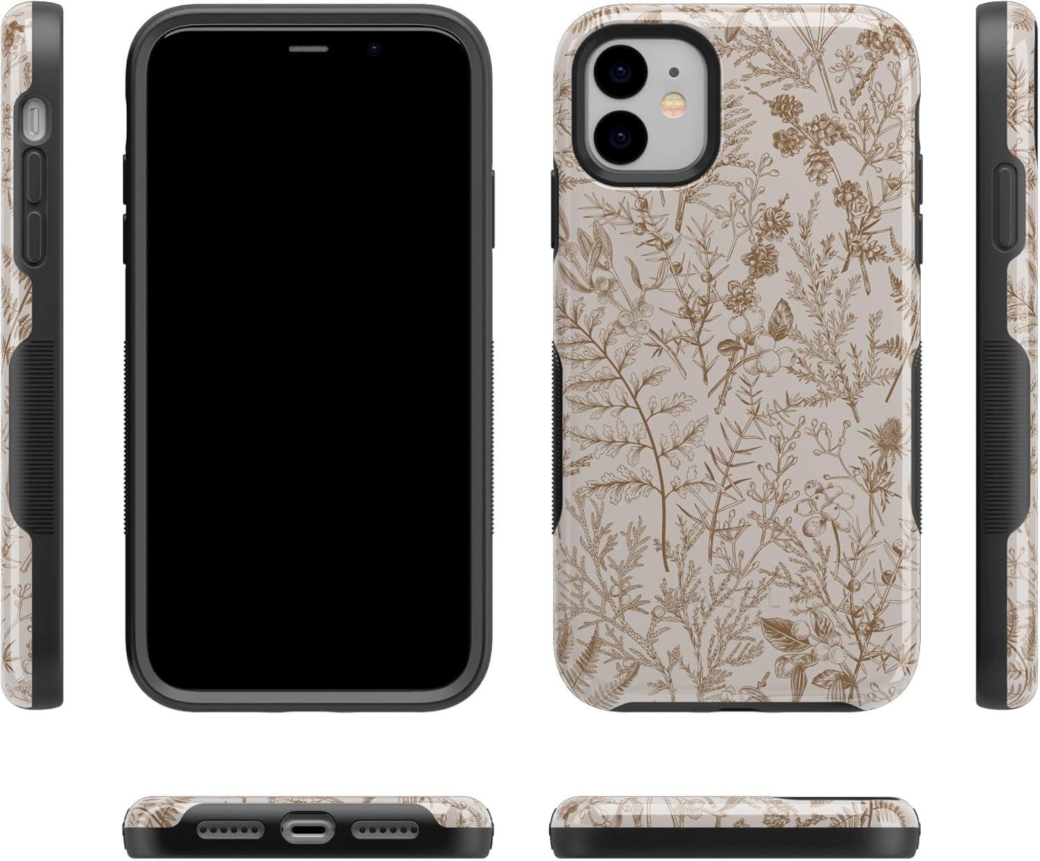 Casely iPhone 11 Case | Shell Shocked | Tortoise Print | Bold Protective Design(Beige Garden | Neutral Floral)