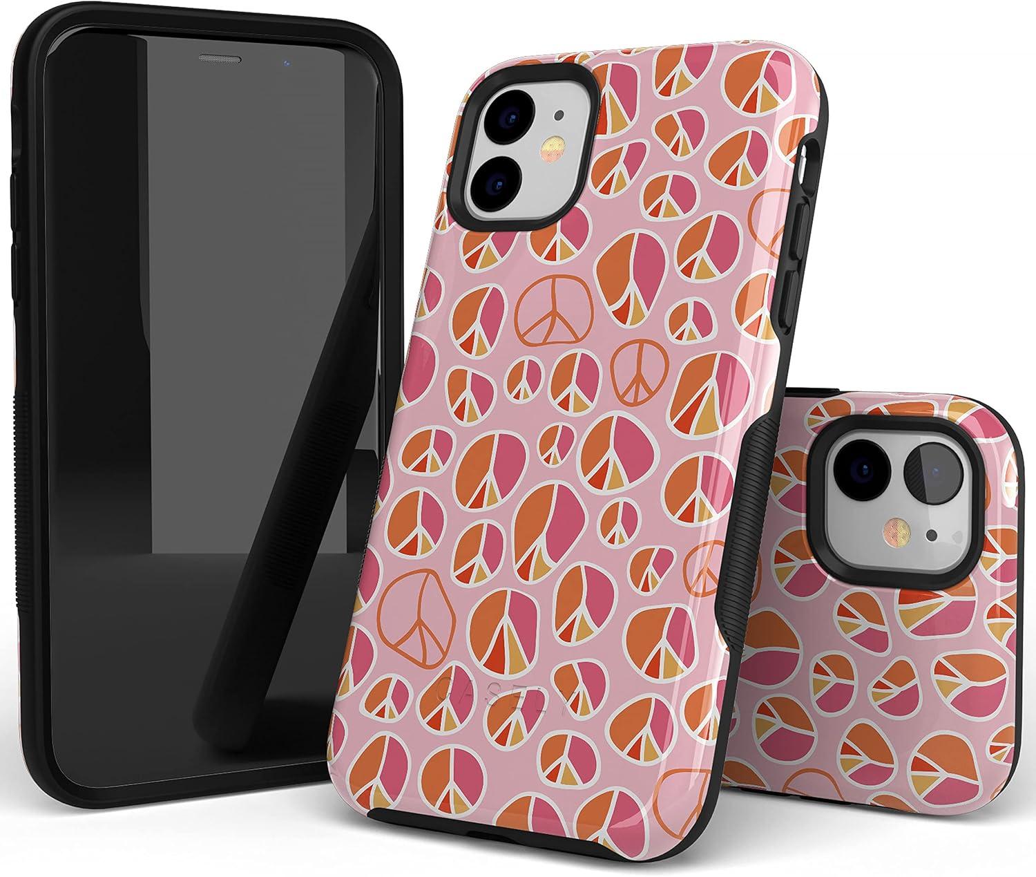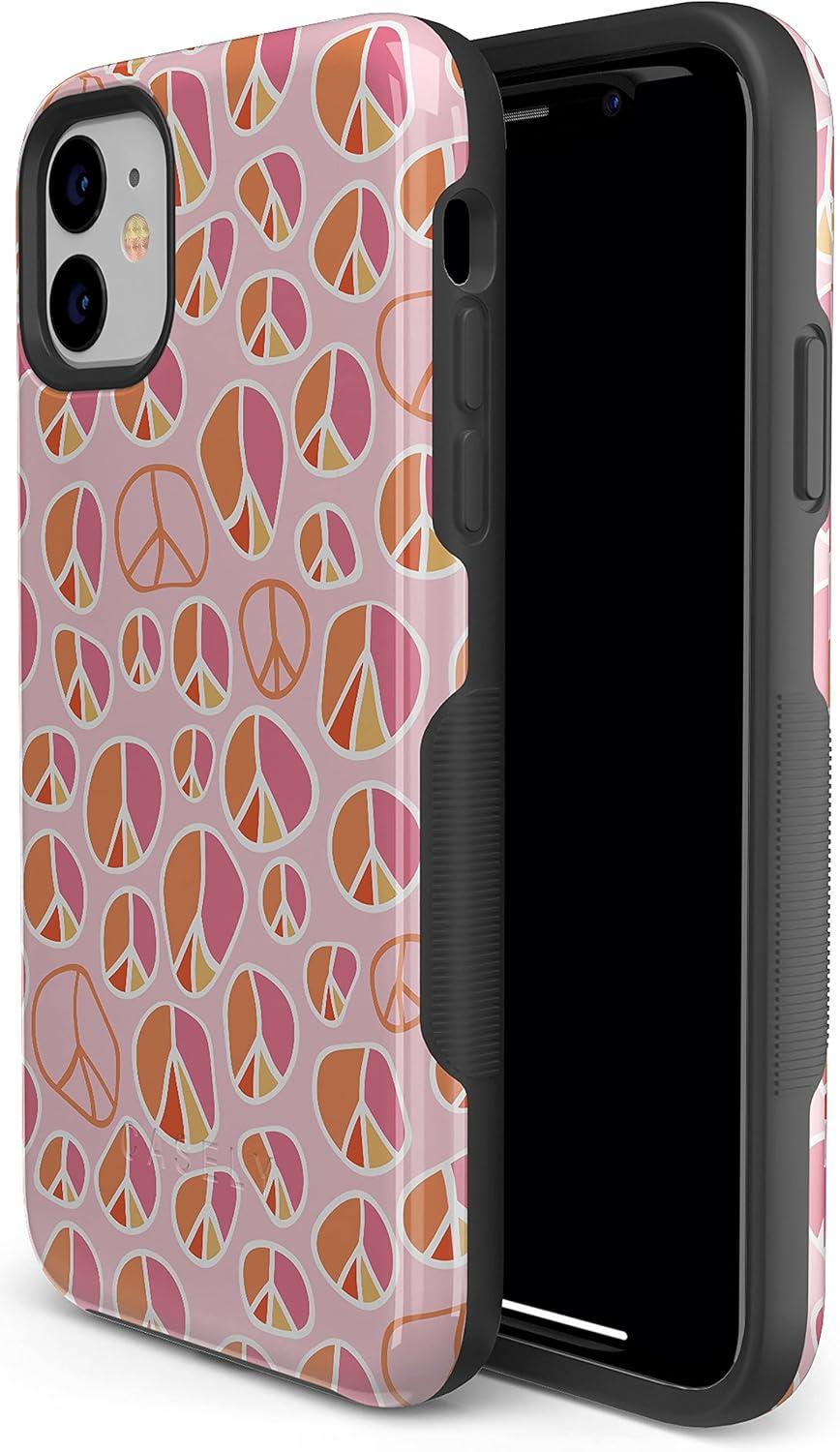 Casely iPhone 11 Case | Shell Shocked | Tortoise Print | Bold Protective Design(Peace Out | Groovy Peace Sign)