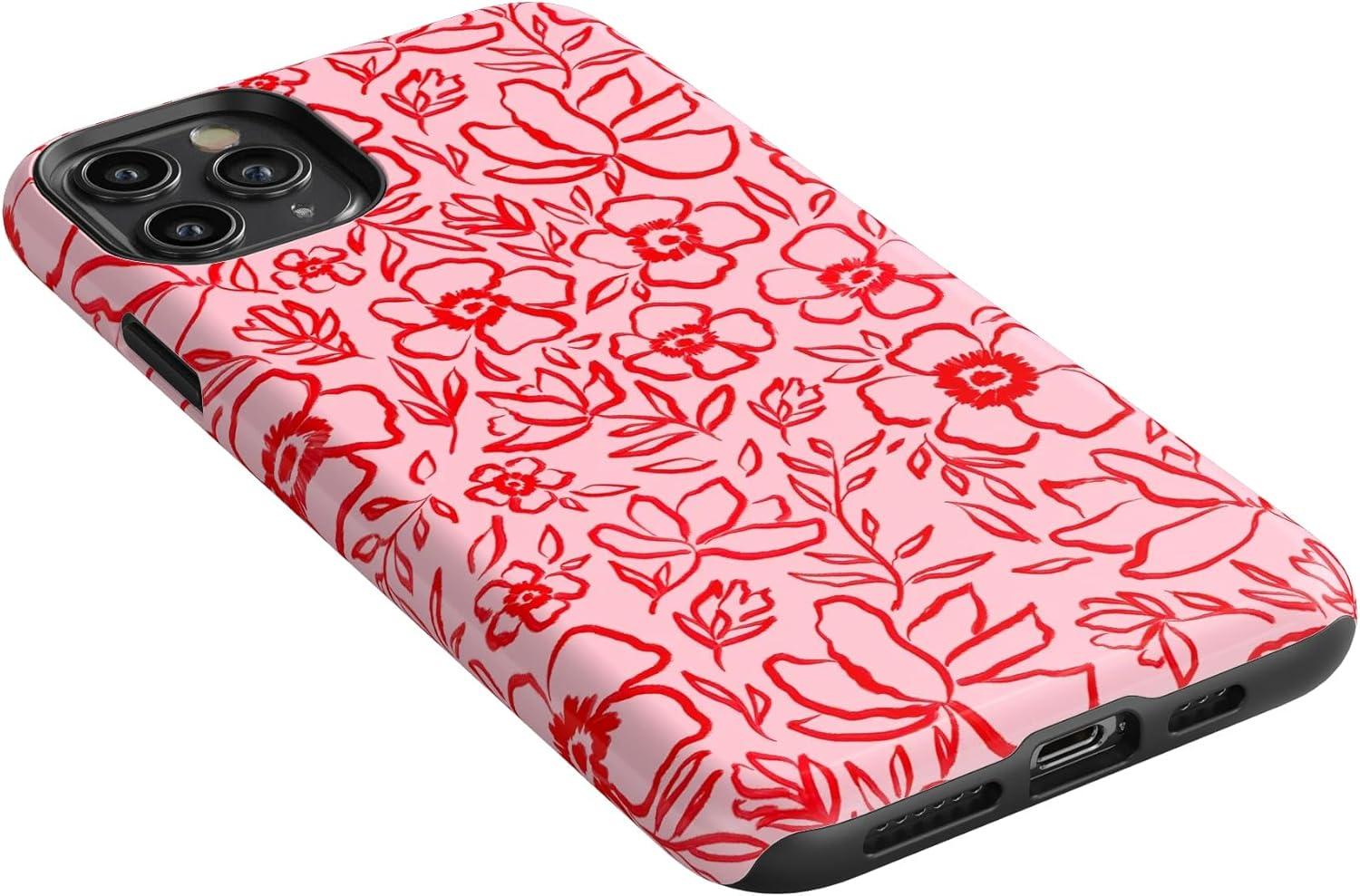 Casely iPhone 11 Pro Max Case | Dark Fantasy | Contrast Floral | Essential Slim Dual-Layer Protective Design(Blush Garden | Floral Doodle)