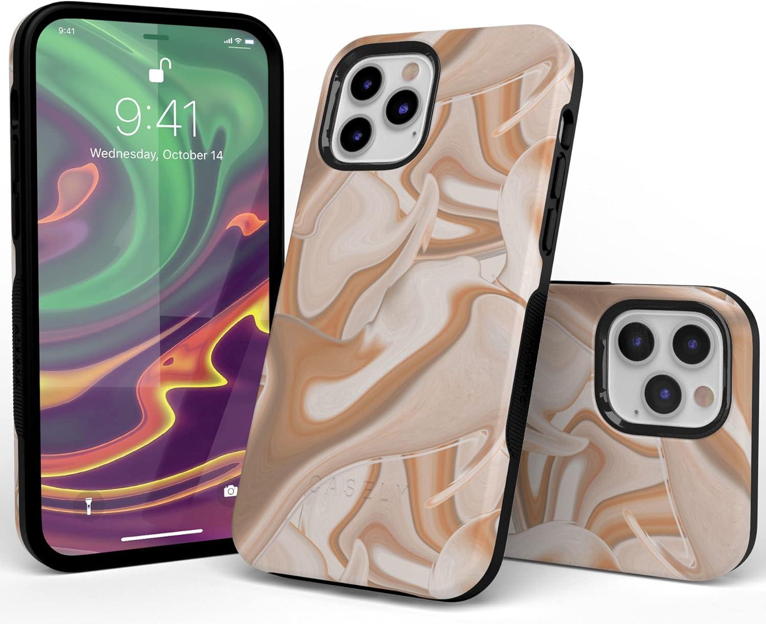 Casely iPhone 11 Pro Max Case | Dark Fantasy | Contrast Floral | Essential Slim Dual-Layer Protective Design(Caramel Delight | Marble Swirl)