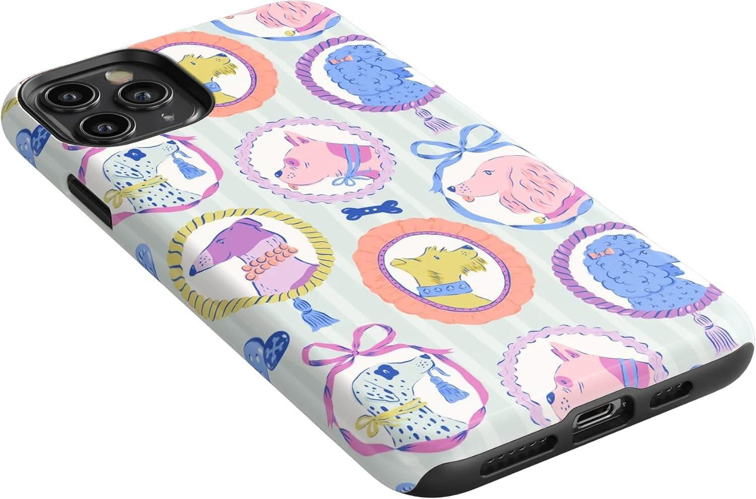 Casely iPhone 11 Pro Max Case | Dark Fantasy | Contrast Floral | Essential Slim Dual-Layer Protective Design(Chateau Pups | French Dog)