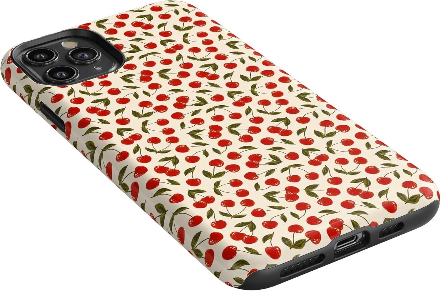 Casely iPhone 11 Pro Max Case | Dark Fantasy | Contrast Floral | Essential Slim Dual-Layer Protective Design(Cherry on Top | Red Cherries)