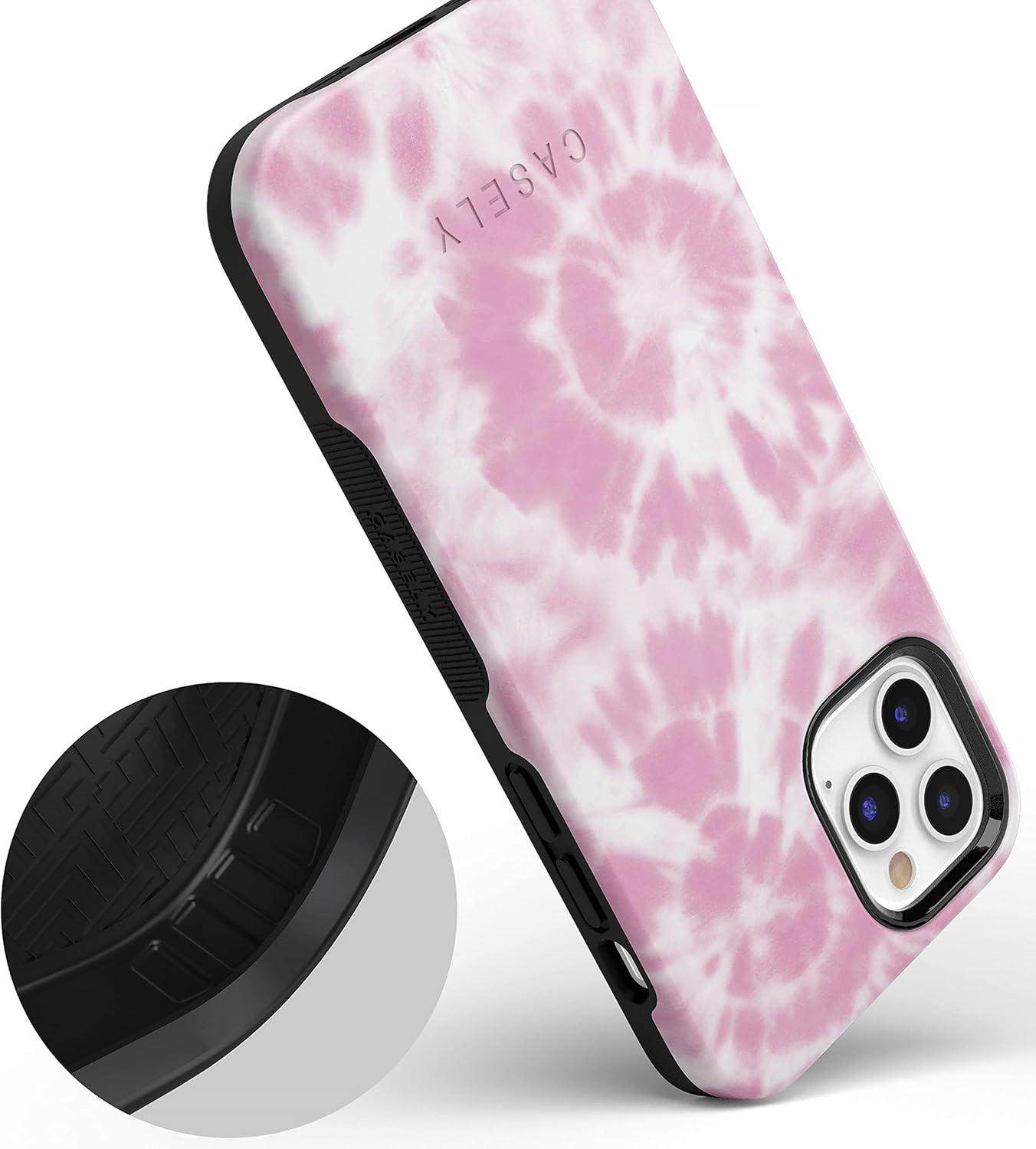 Casely iPhone 11 Pro Max Case | Dark Fantasy | Contrast Floral | Essential Slim Dual-Layer Protective Design(Down for Whatever | Light Pink Tie Dye)