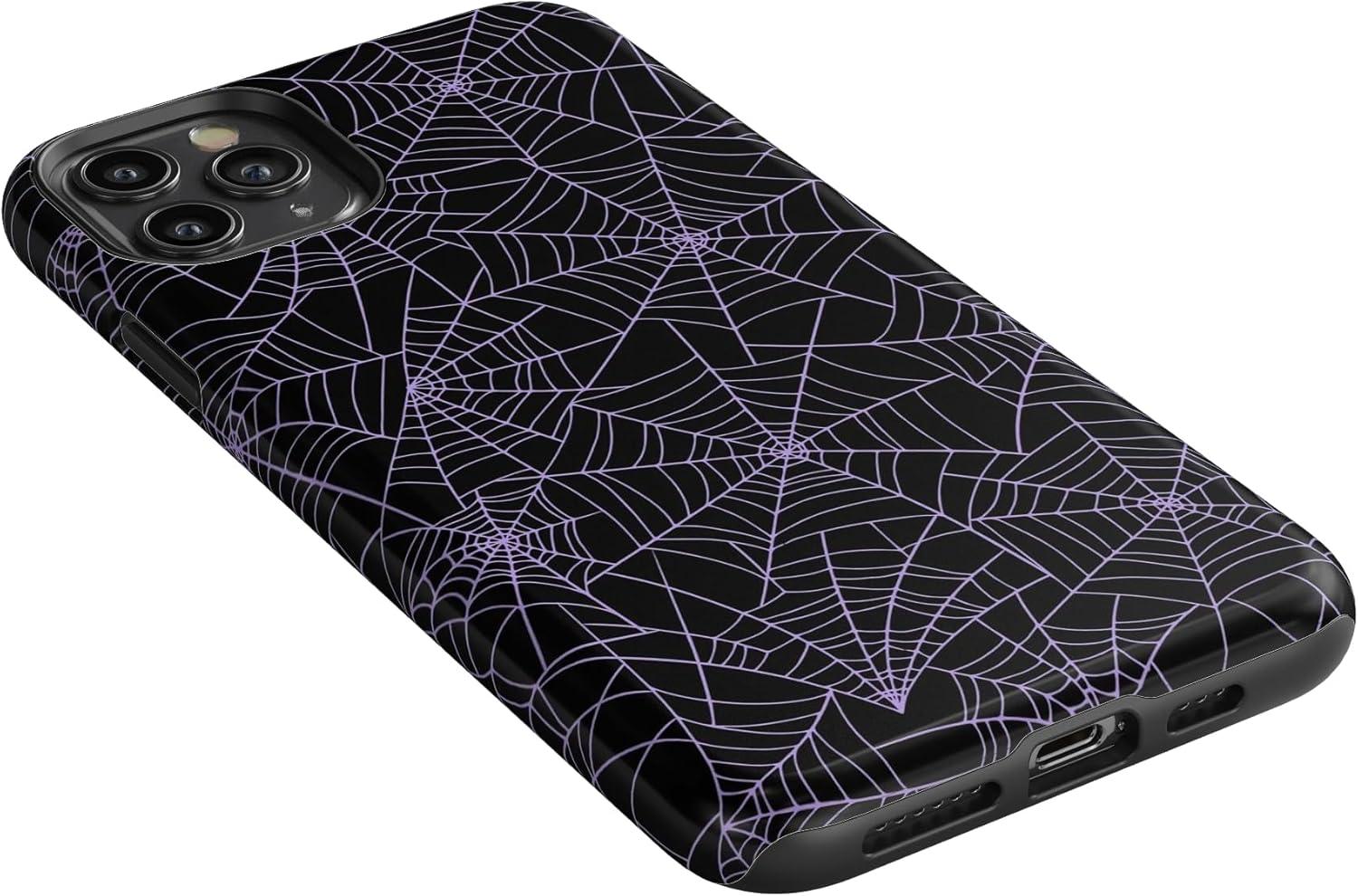 Casely iPhone 11 Pro Max Case | Dark Fantasy | Contrast Floral | Essential Slim Dual-Layer Protective Design(Midnight Web | Spider Web)