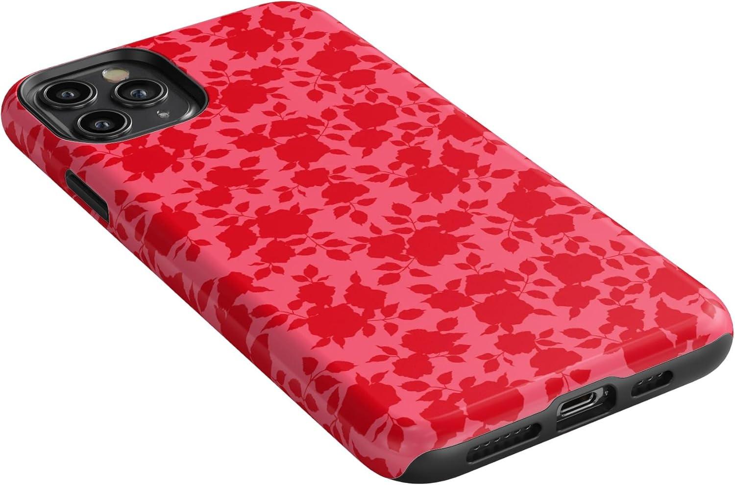 Casely iPhone 11 Pro Max Case | Dark Fantasy | Contrast Floral | Essential Slim Dual-Layer Protective Design(Rose Garden | Red Aesthetic)