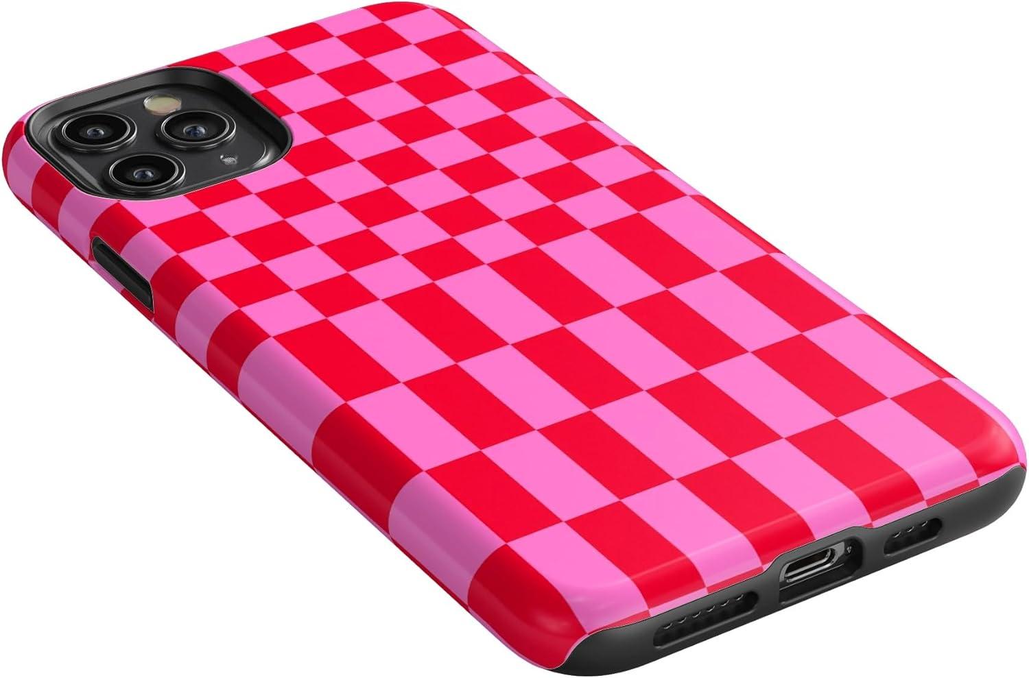 Casely iPhone 11 Pro Max Case | Dark Fantasy | Contrast Floral | Essential Slim Dual-Layer Protective Design(Vibe Check | Pink Checkerboard)