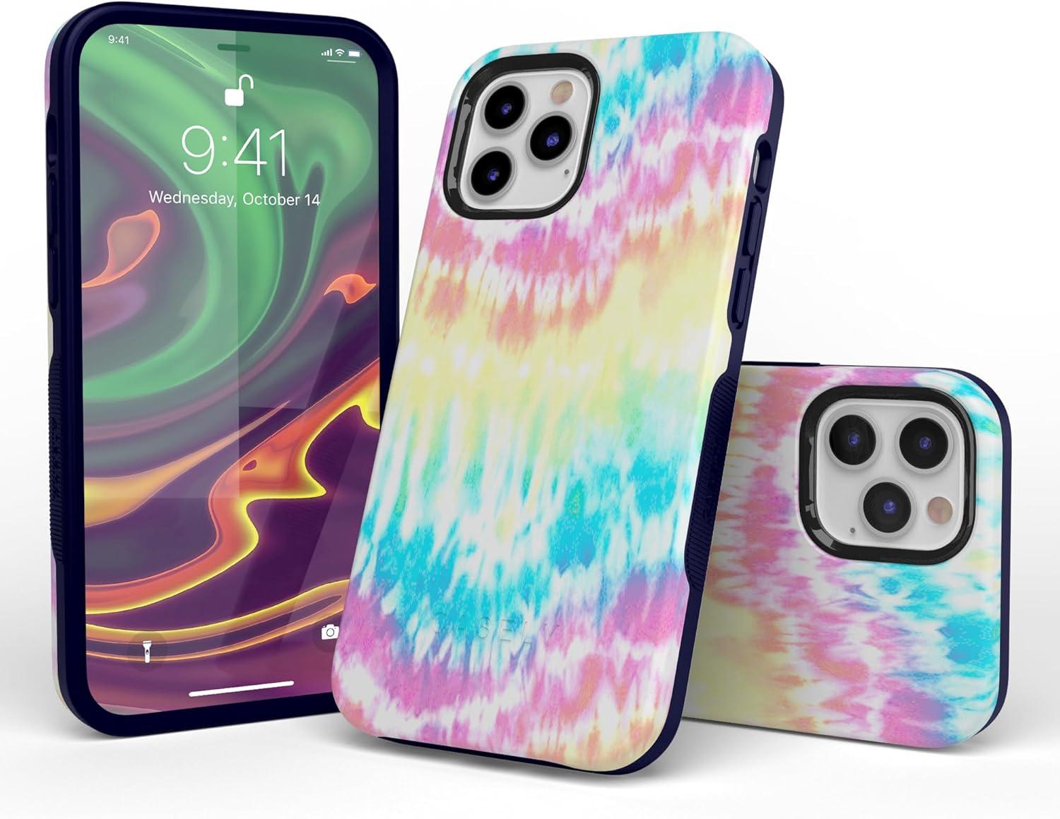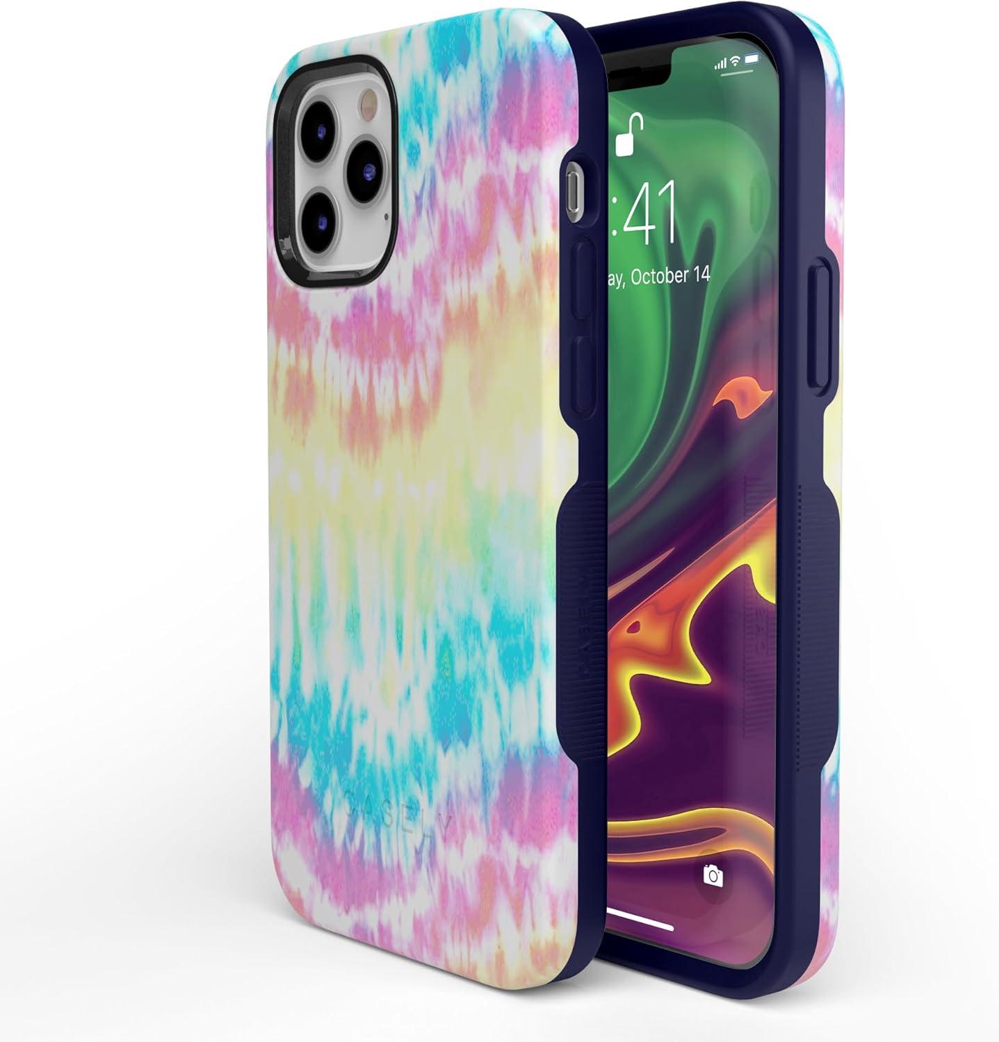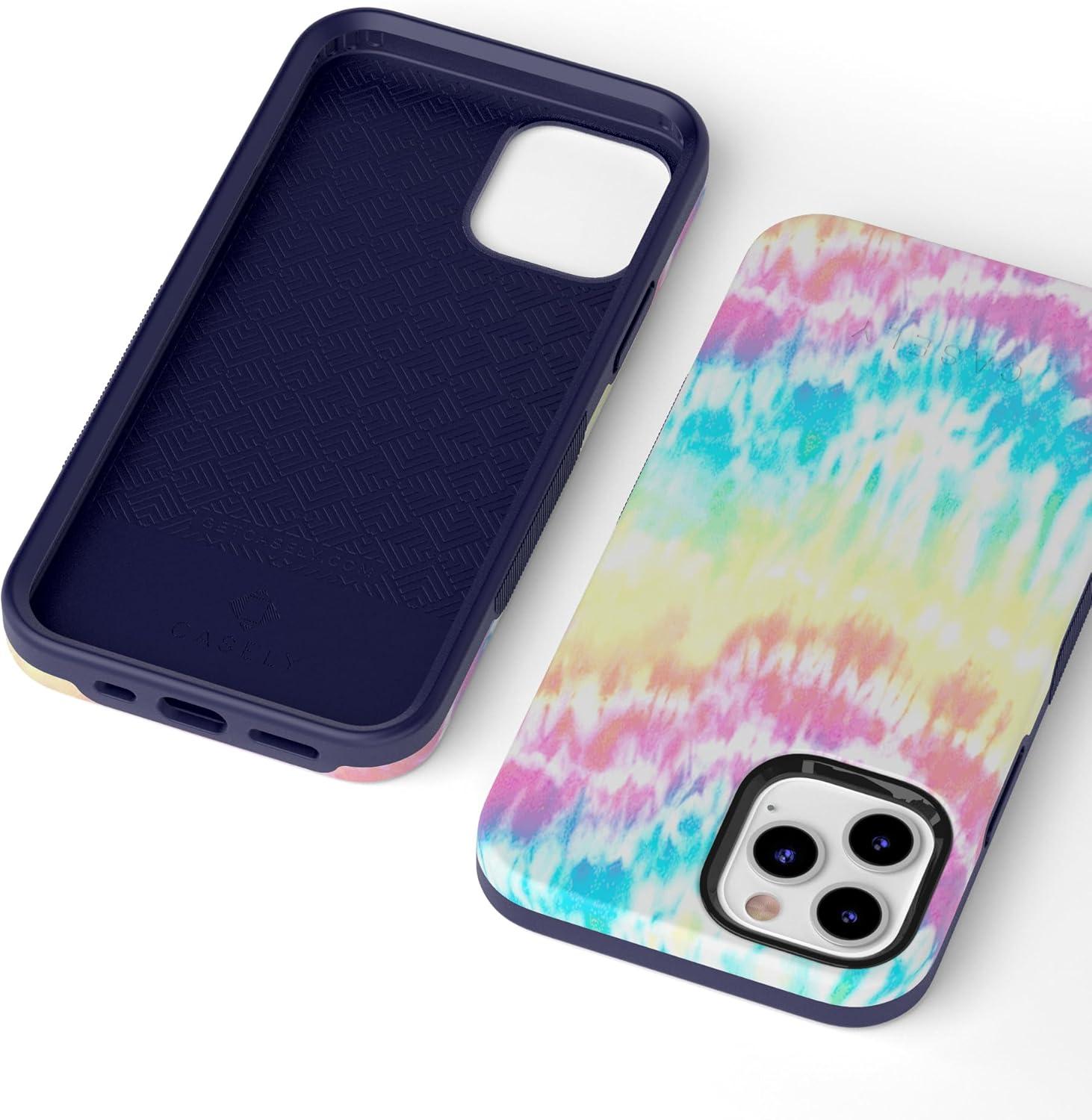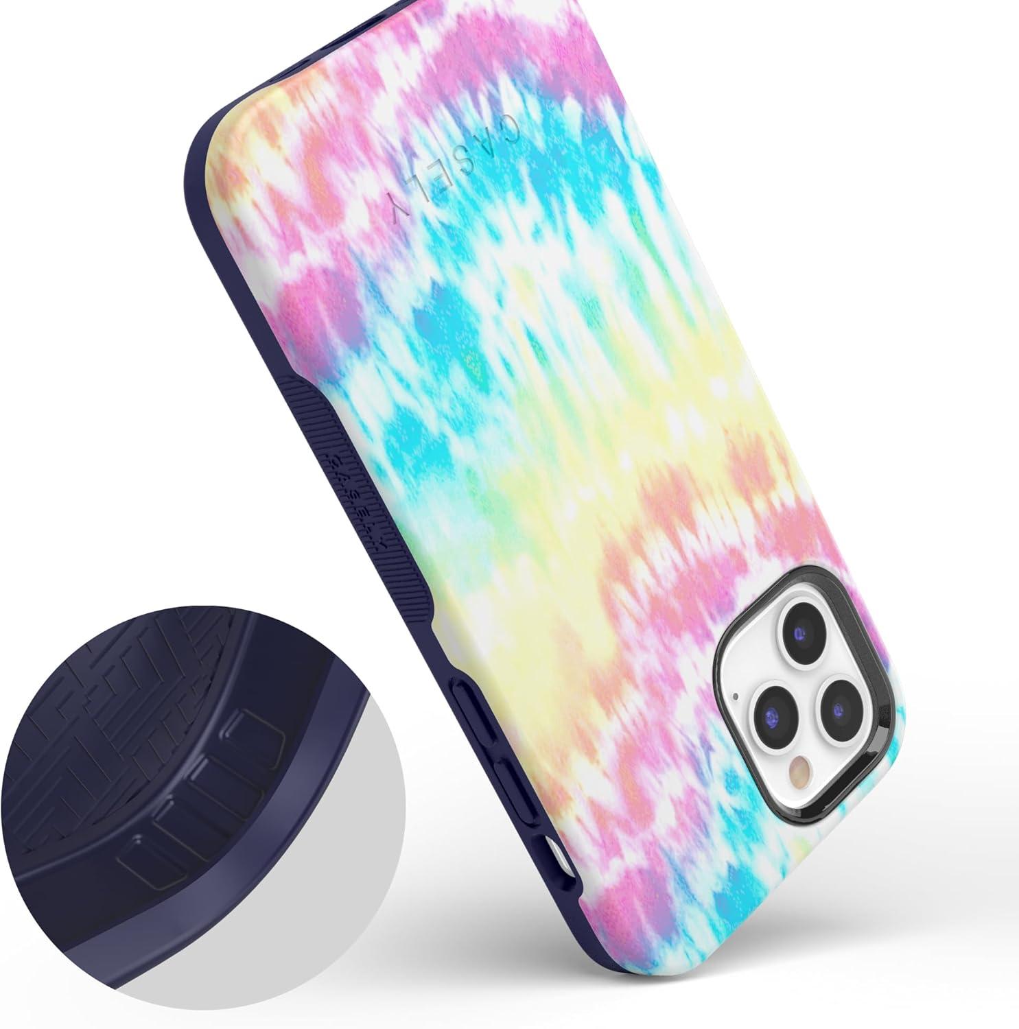 Casely iPhone 11 Pro Max Case | Dark Fantasy | Contrast Floral | Essential Slim Dual-Layer Protective Design(Wild & Free Rainbow Tie Dye)