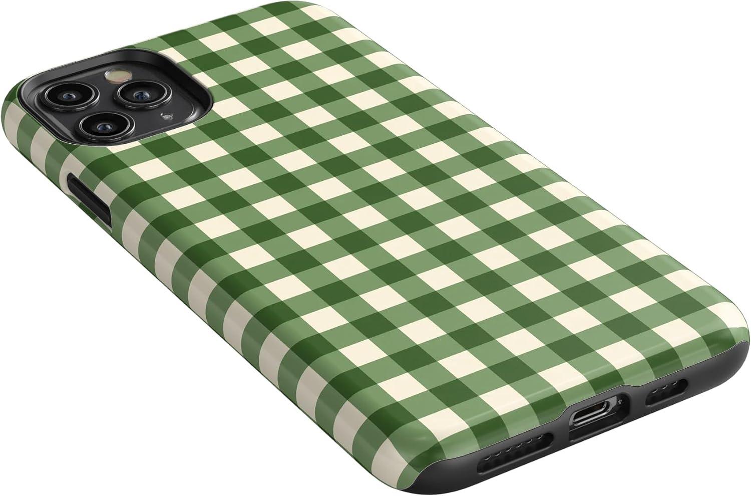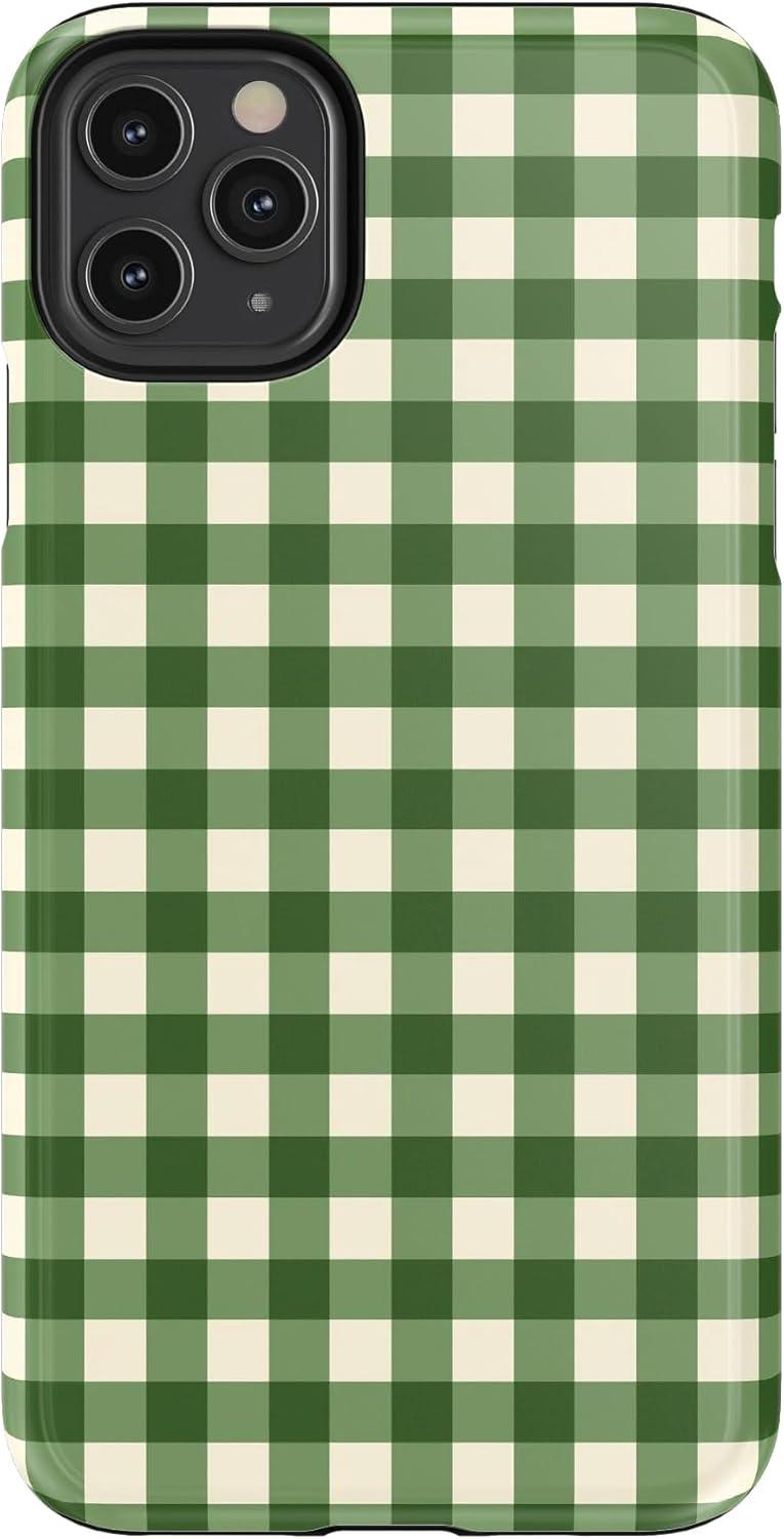 Casely iPhone 11 Pro Max Case | Gingerbread Lane | Holiday Sweets | Essential Slim Dual-Layer Protective Design(Checked Twice | Green Plaid)