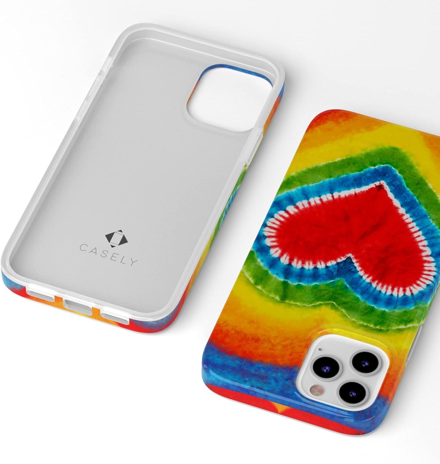 Casely iPhone 11 Pro Max Case | Here Comes The Sun | Colorblock Sunset | Classic Ultra Slim Design(I Heart Tie Dye | Rainbow Heart)