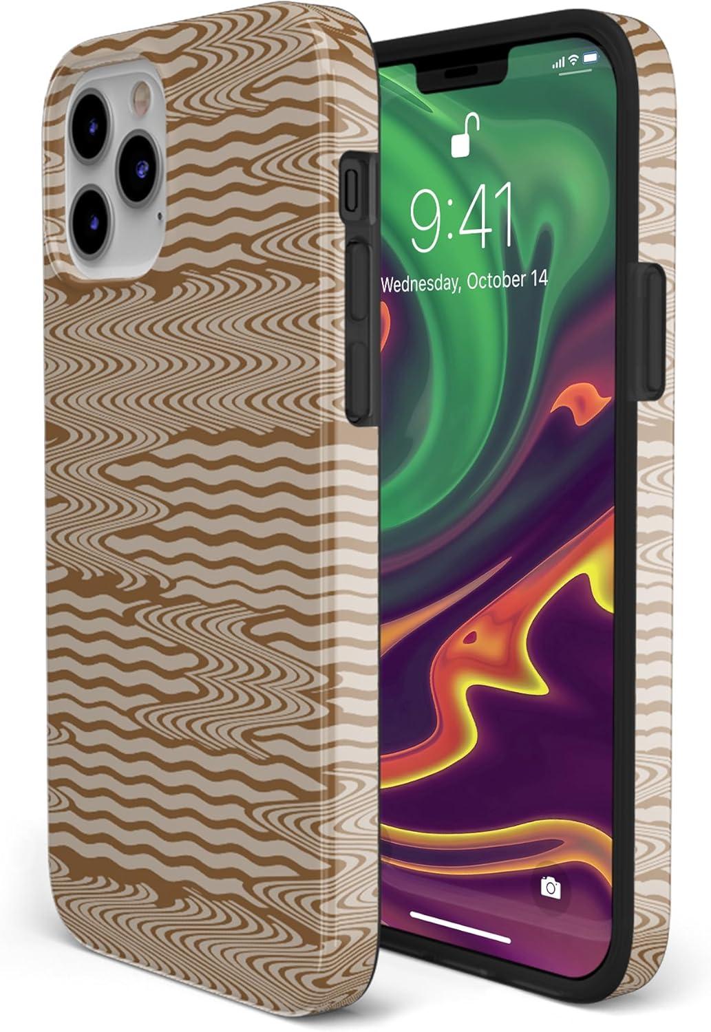 Casely iPhone 11 Pro Max Case | Here Comes The Sun | Colorblock Sunset | Classic Ultra Slim Design(Mocha Ripple | Brown Waves)