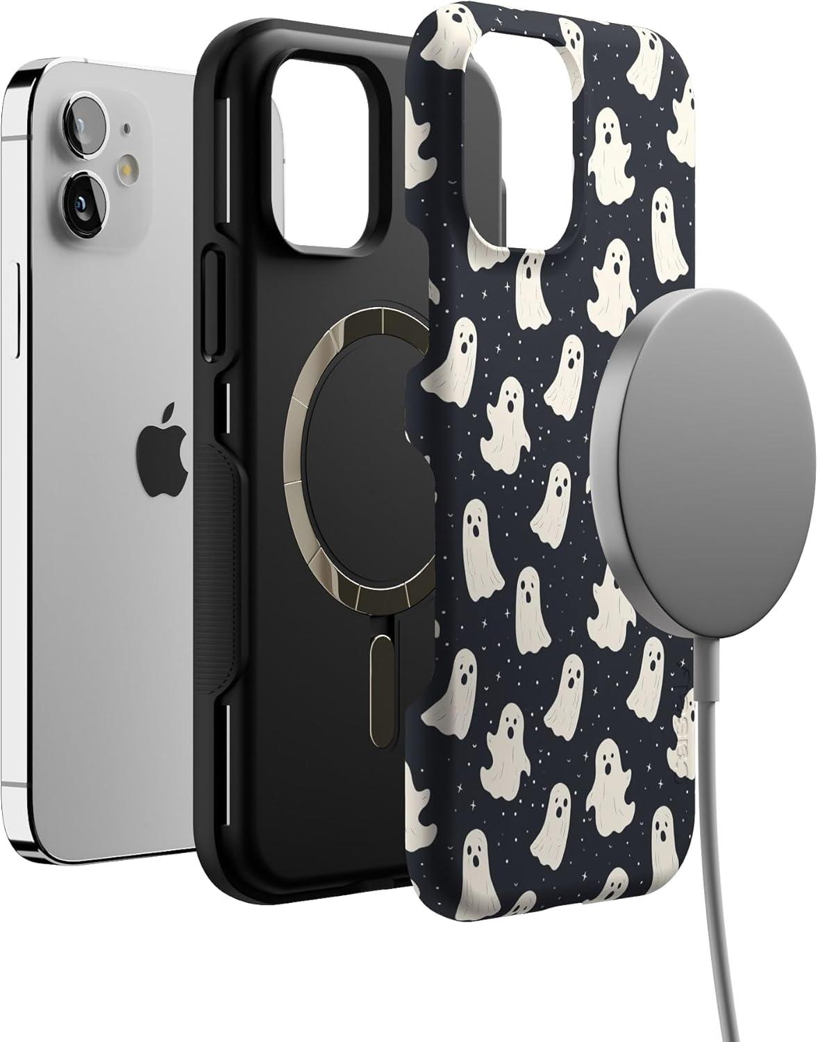 Casely iPhone 12/12 Pro Case | Be Mine | Tiny Hearts | Bold Protective Design | Compatible with MagSafe(All Boos No Bite | Friendly Ghost)