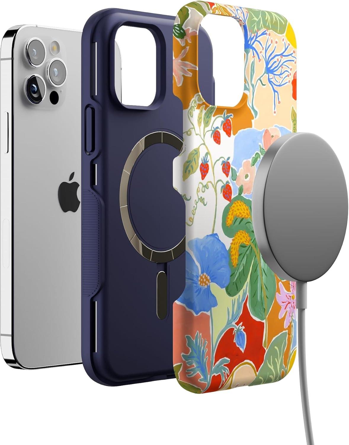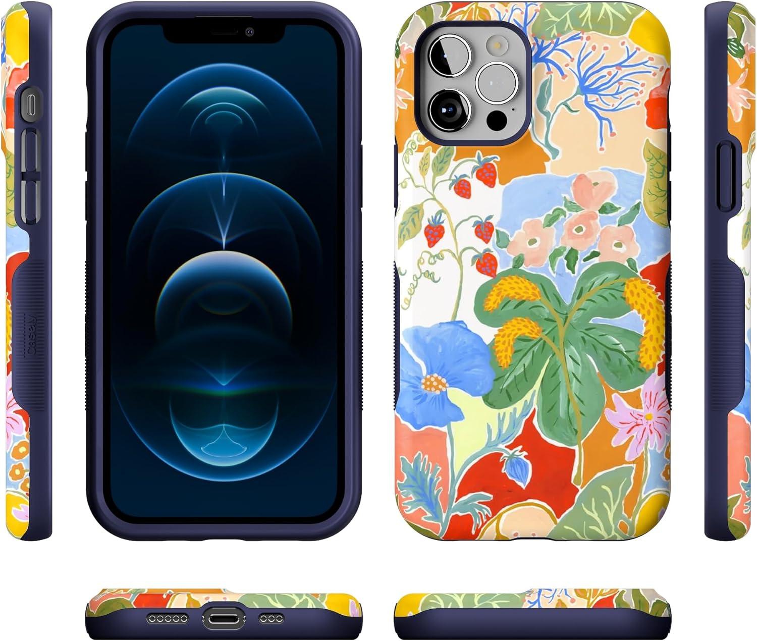 Casely iPhone 12/12 Pro Case | Be Mine | Tiny Hearts | Bold Protective Design | Compatible with MagSafe(Botanical Blooms | Floral Patchwork)