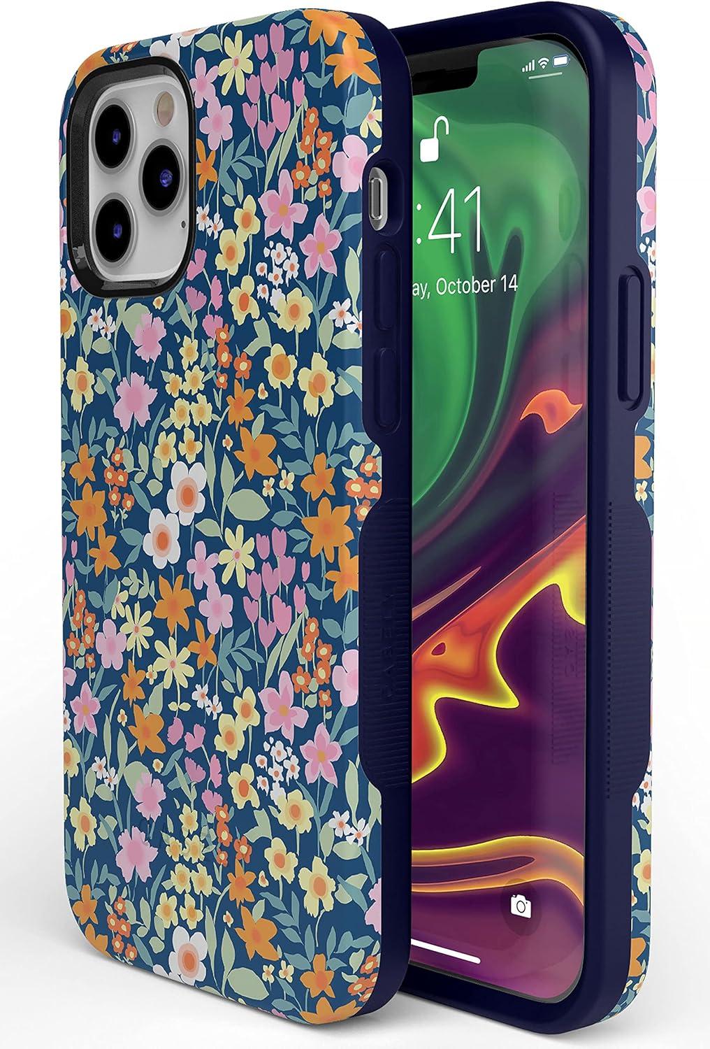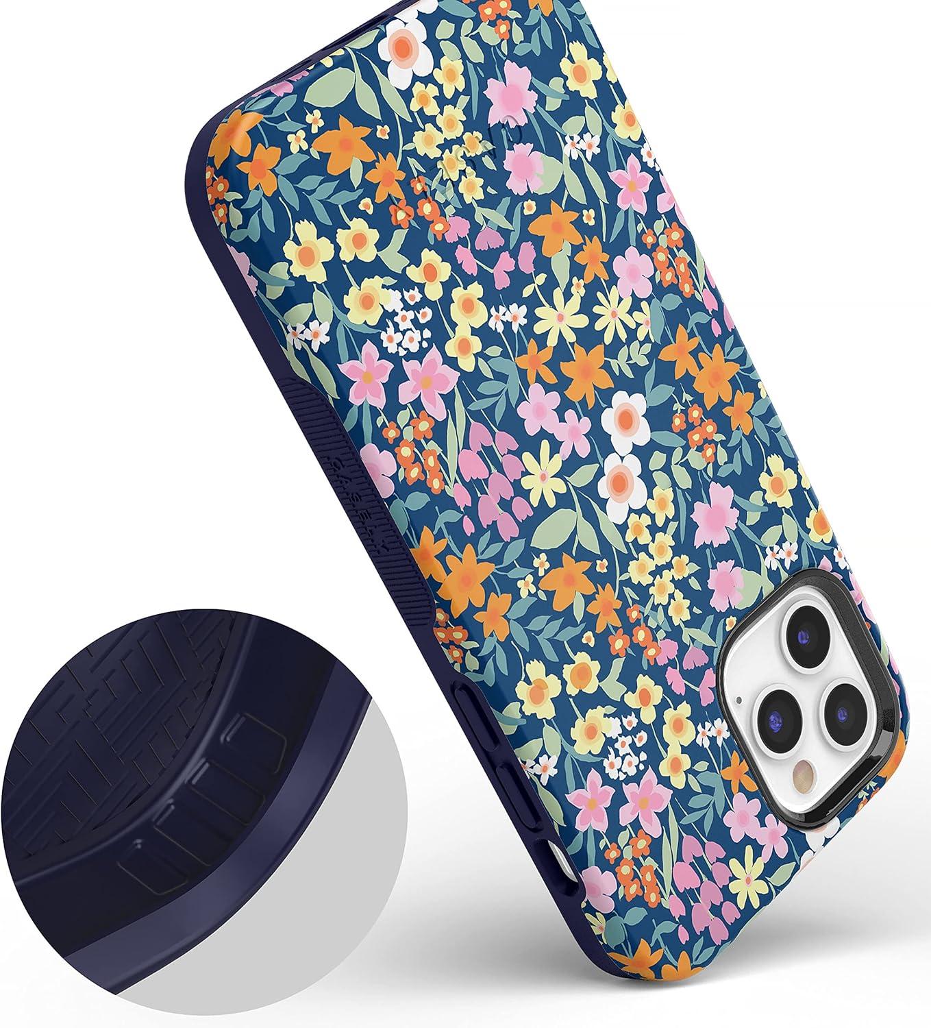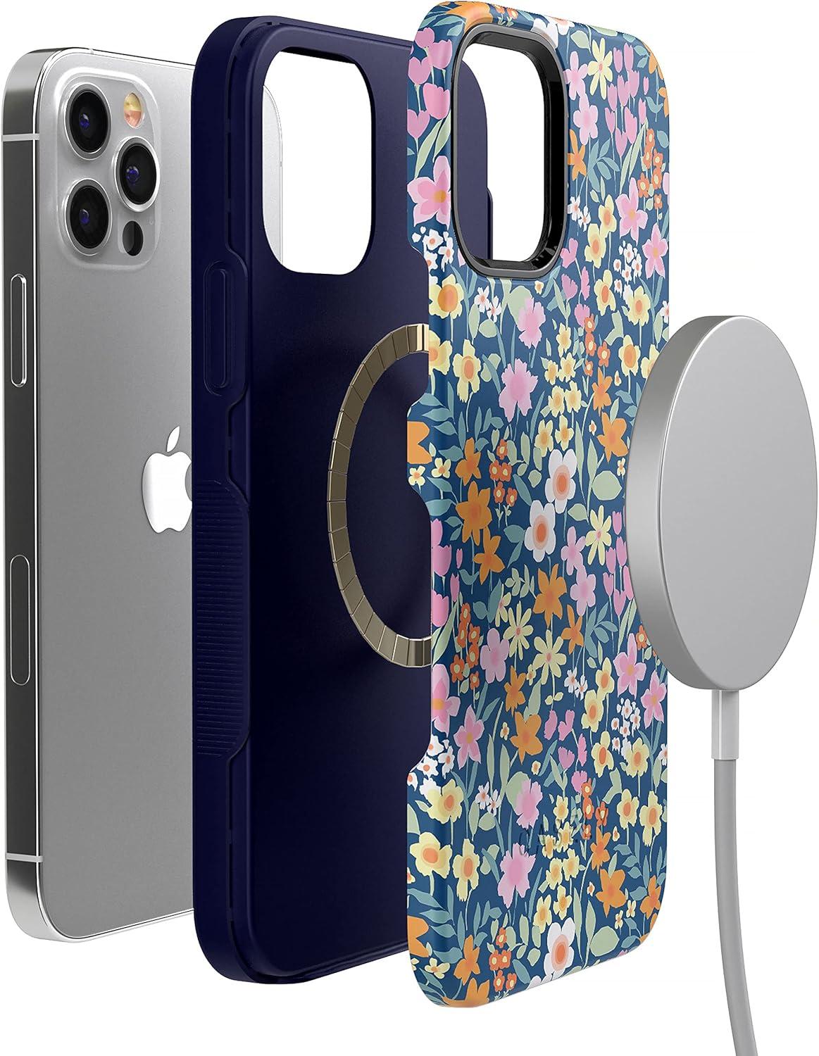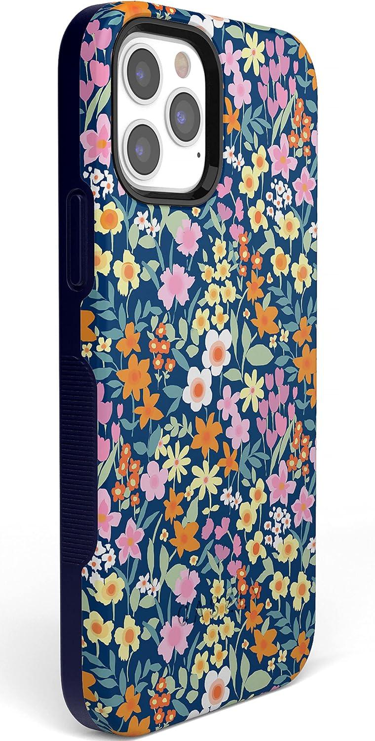 Casely iPhone 12/12 Pro Case | Be Mine | Tiny Hearts | Bold Protective Design | Compatible with MagSafe(Full Bloom | Navy Floral)
