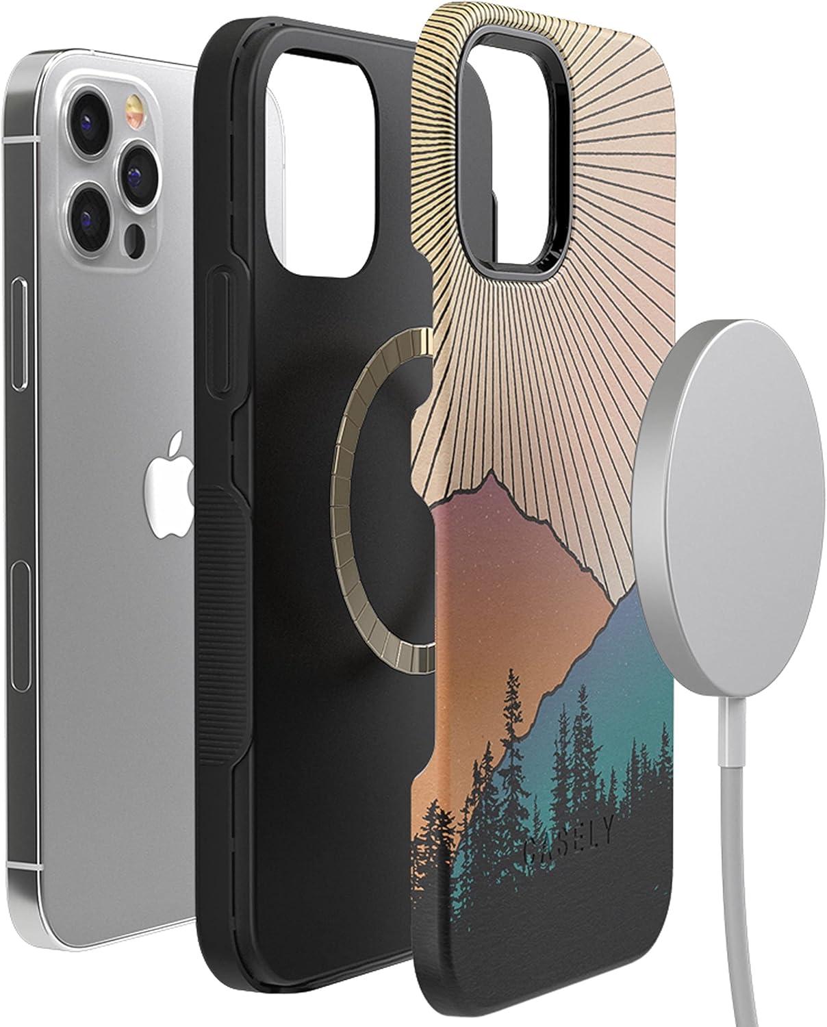 Casely iPhone 12/12 Pro Case | Be Mine | Tiny Hearts | Bold Protective Design | Compatible with MagSafe(Golden Hour | Mountain Sunset)