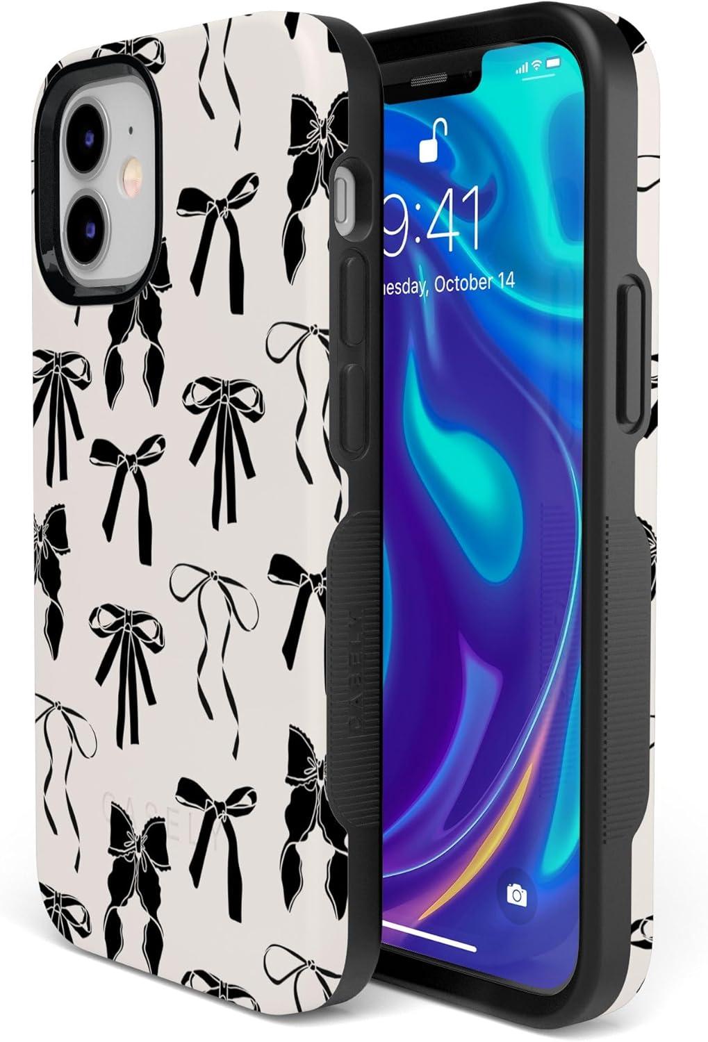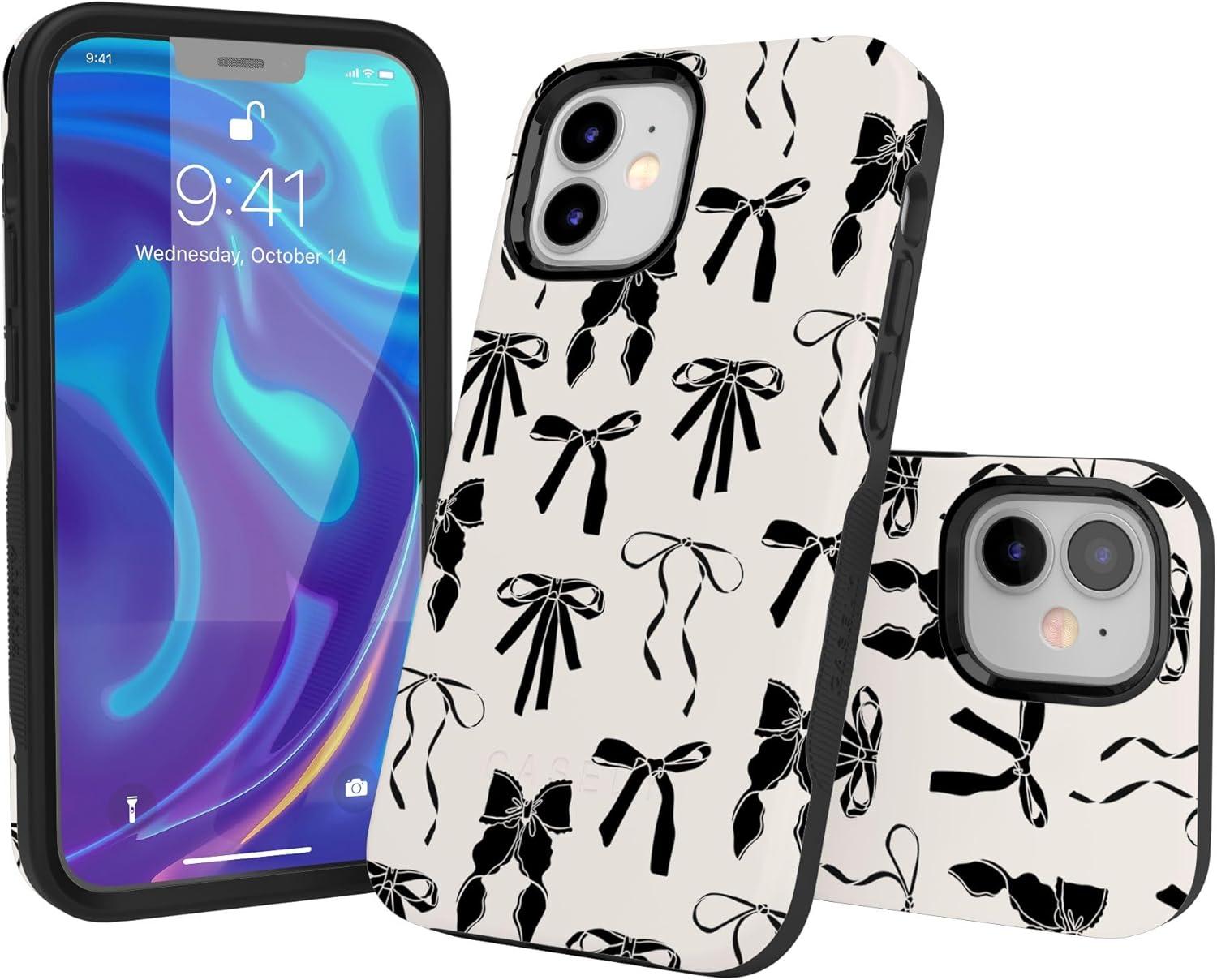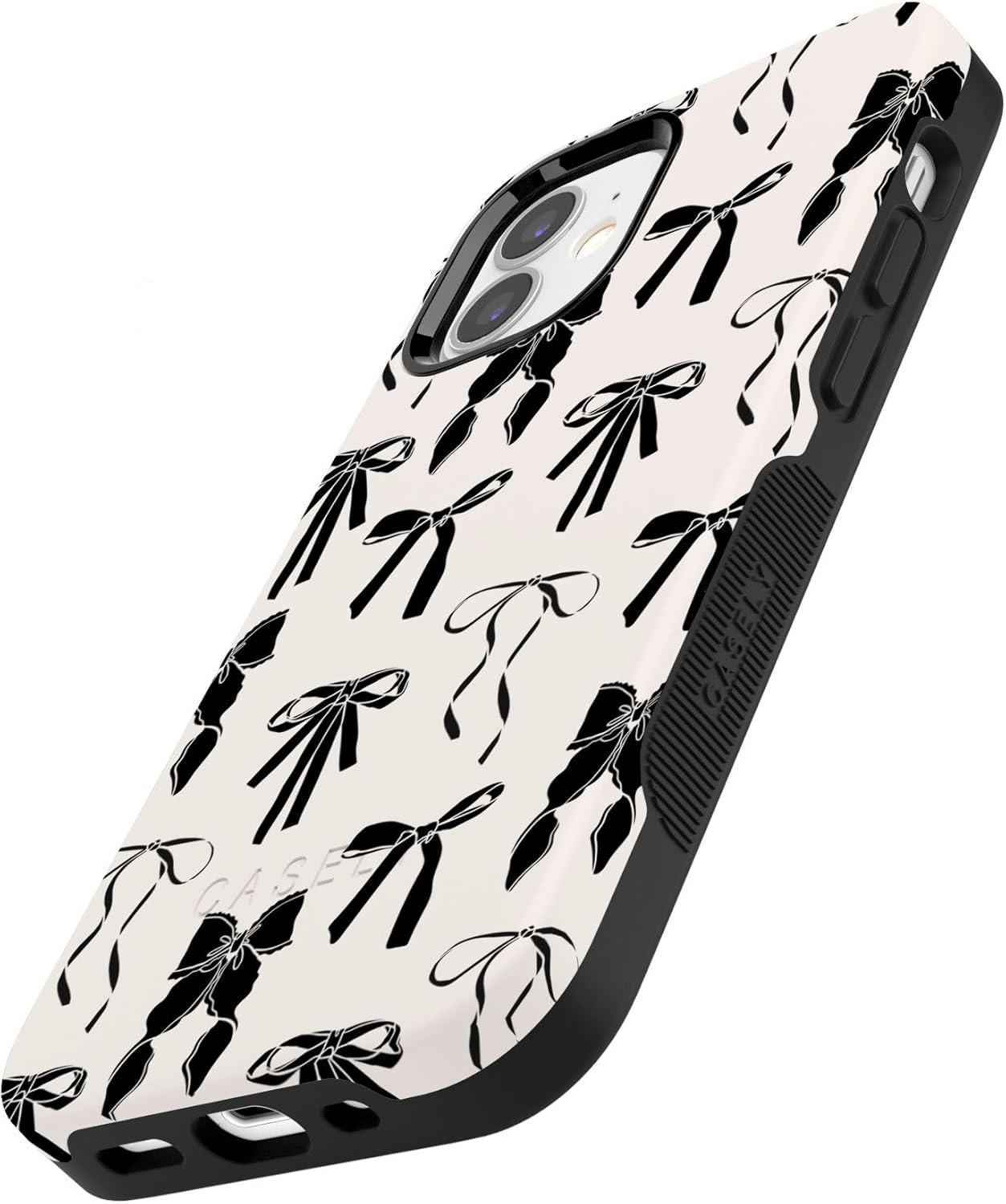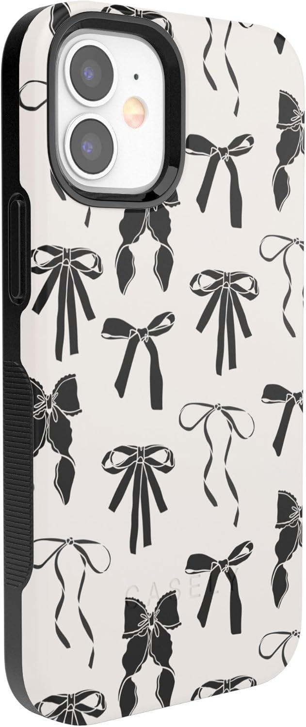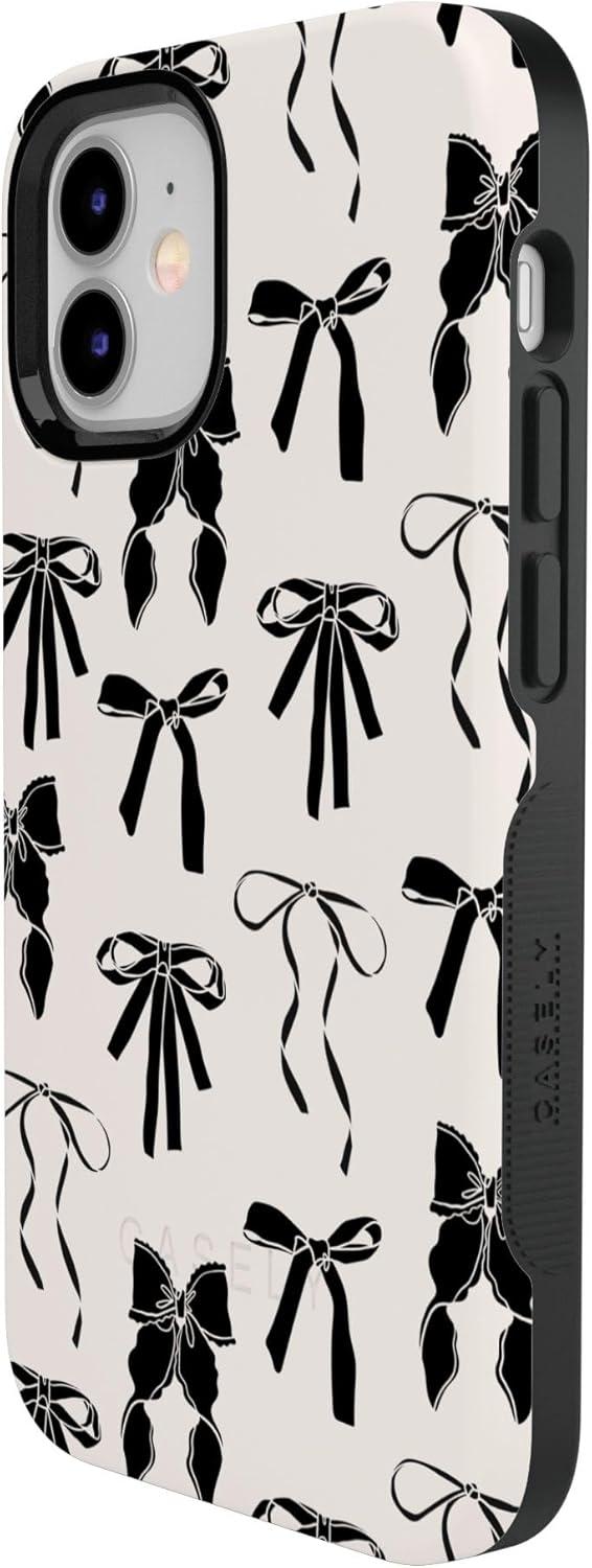 Casely iPhone 12/12 Pro Case | Be Mine | Tiny Hearts | Bold Protective Design | Compatible with MagSafe(Goth Girlie | Black Bows)