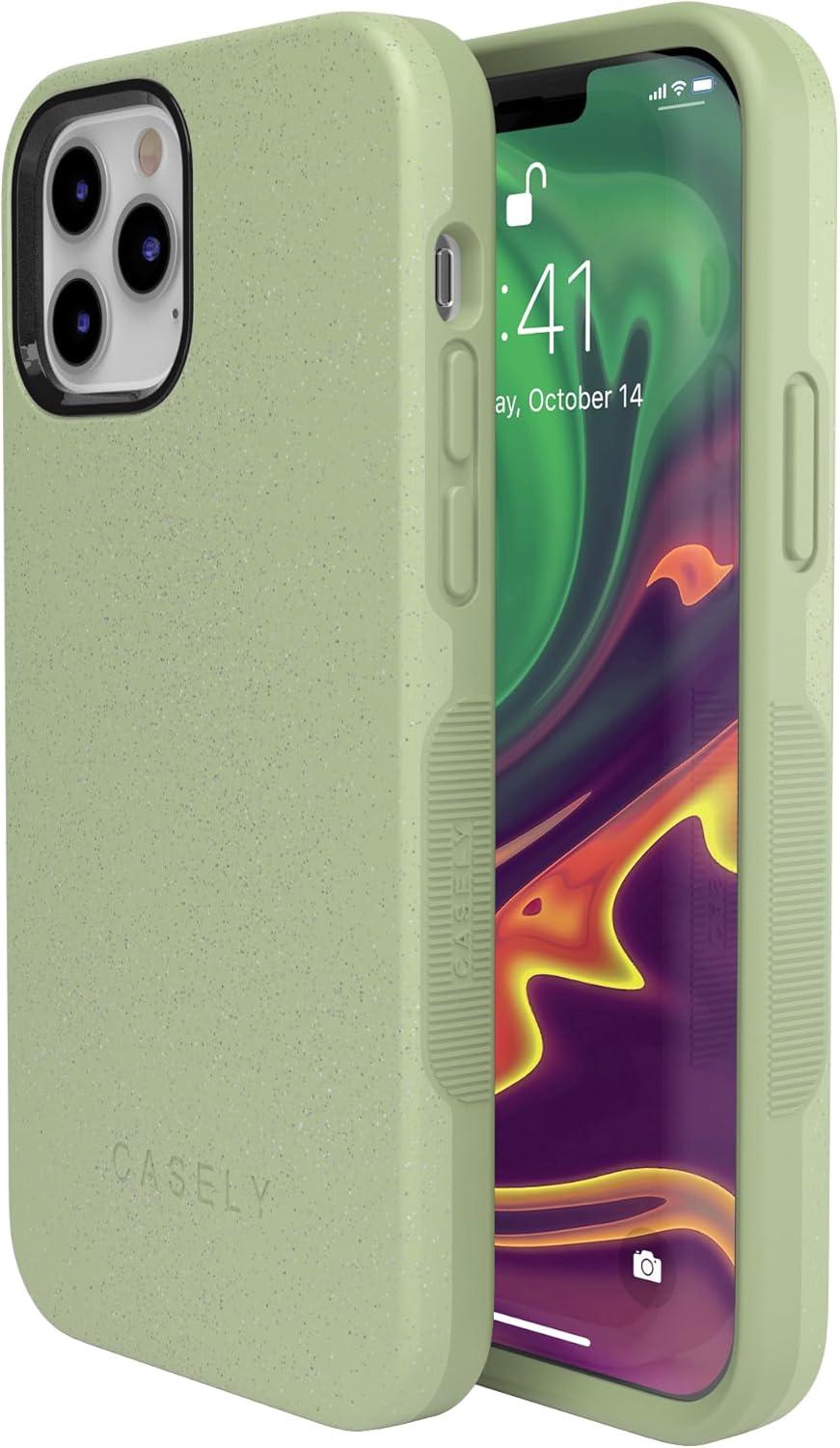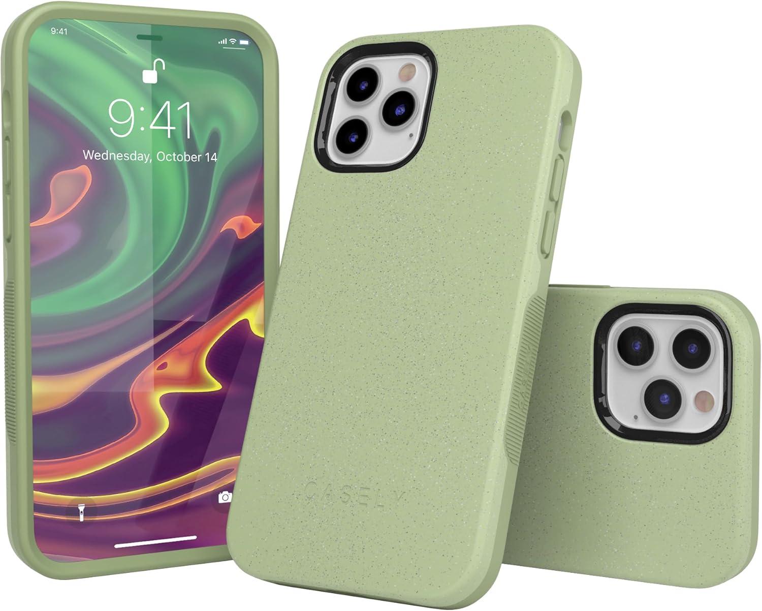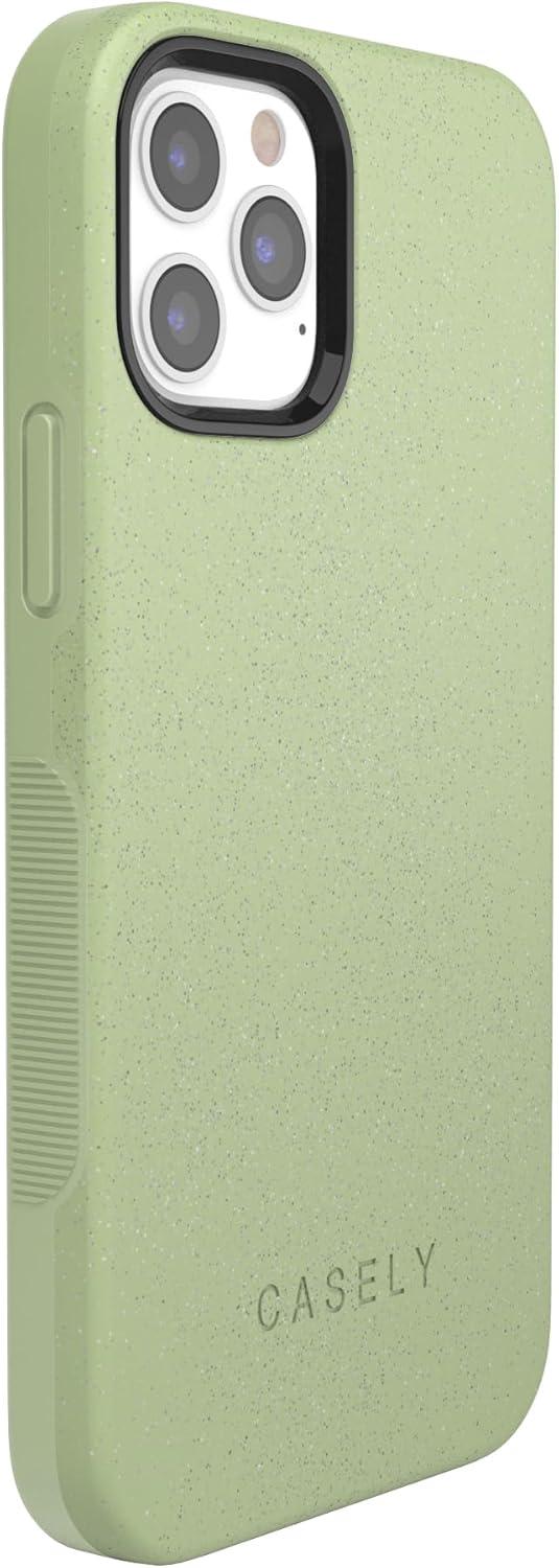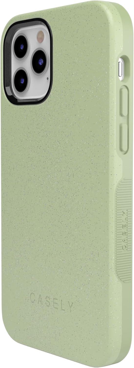 Casely iPhone 12/12 Pro Case | Be Mine | Tiny Hearts | Bold Protective Design | Compatible with MagSafe(Kiwi Kiss | Matcha Green Shimmer Glitter)