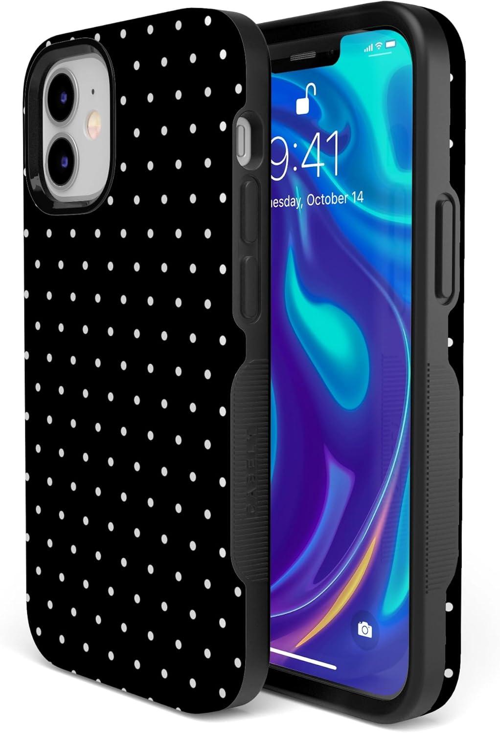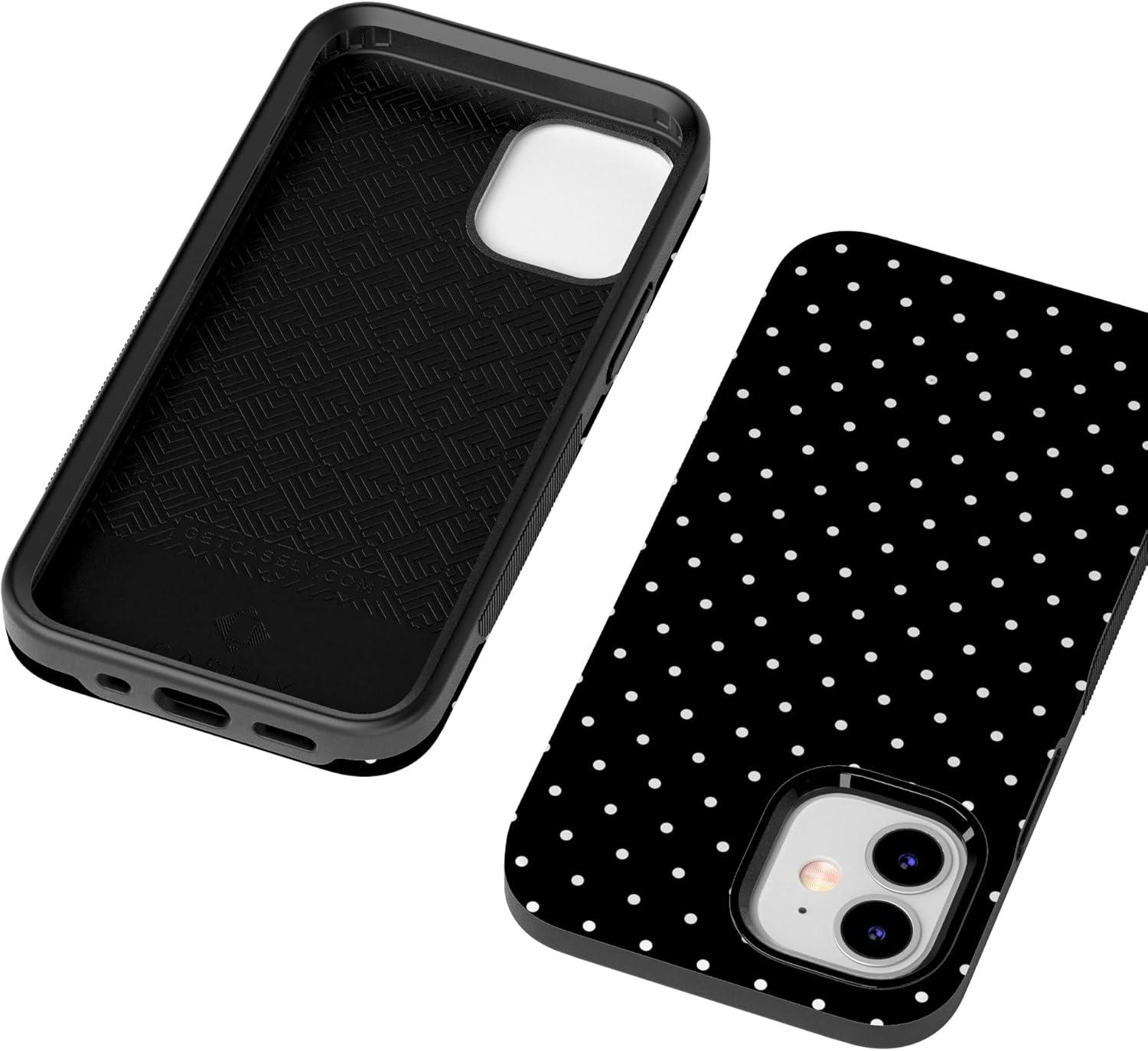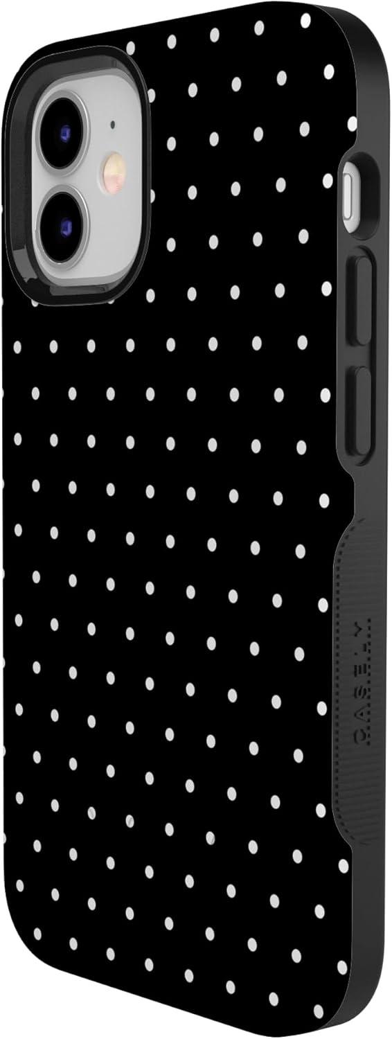 Casely iPhone 12/12 Pro Case | Be Mine | Tiny Hearts | Bold Protective Design | Compatible with MagSafe(On the Dot | Black Polka Dot)