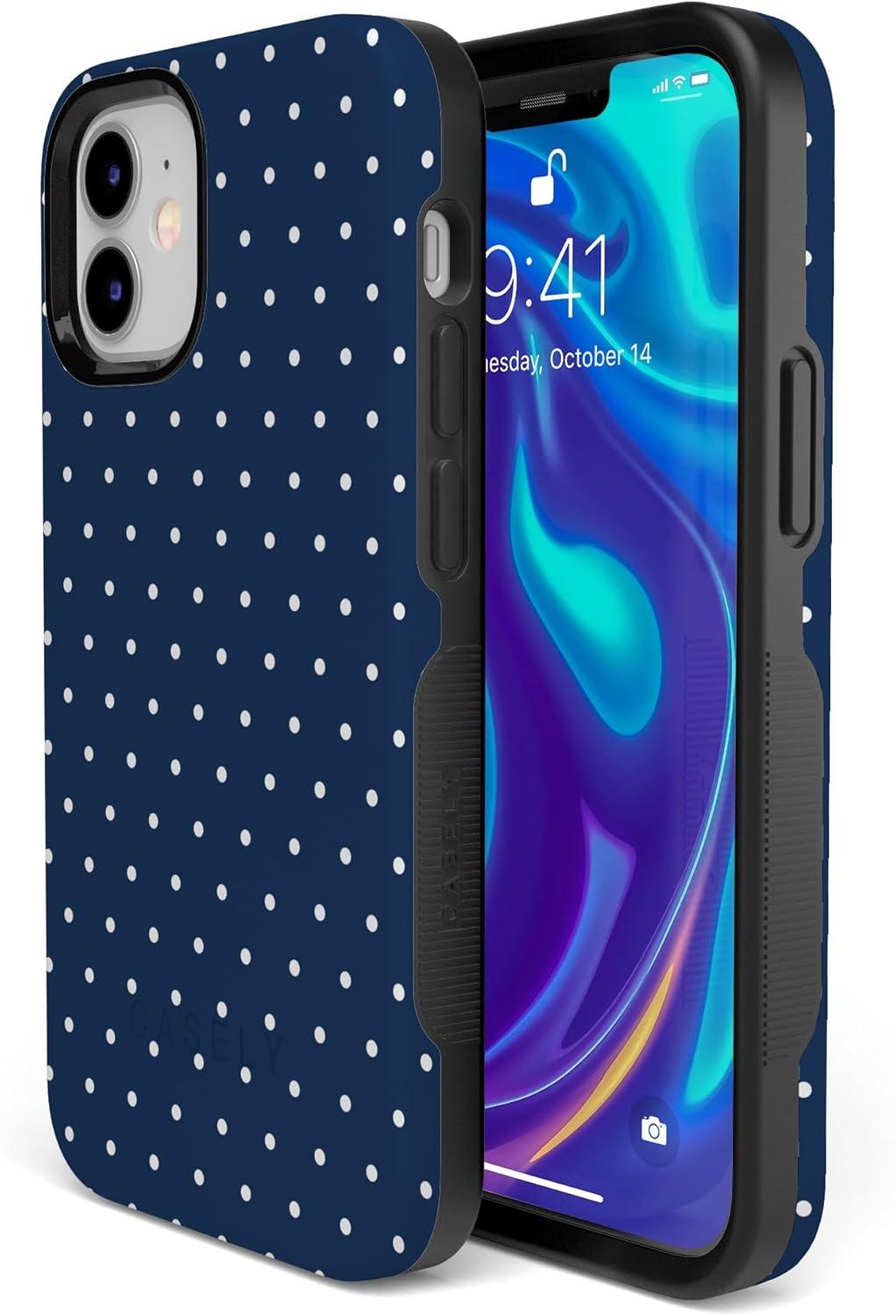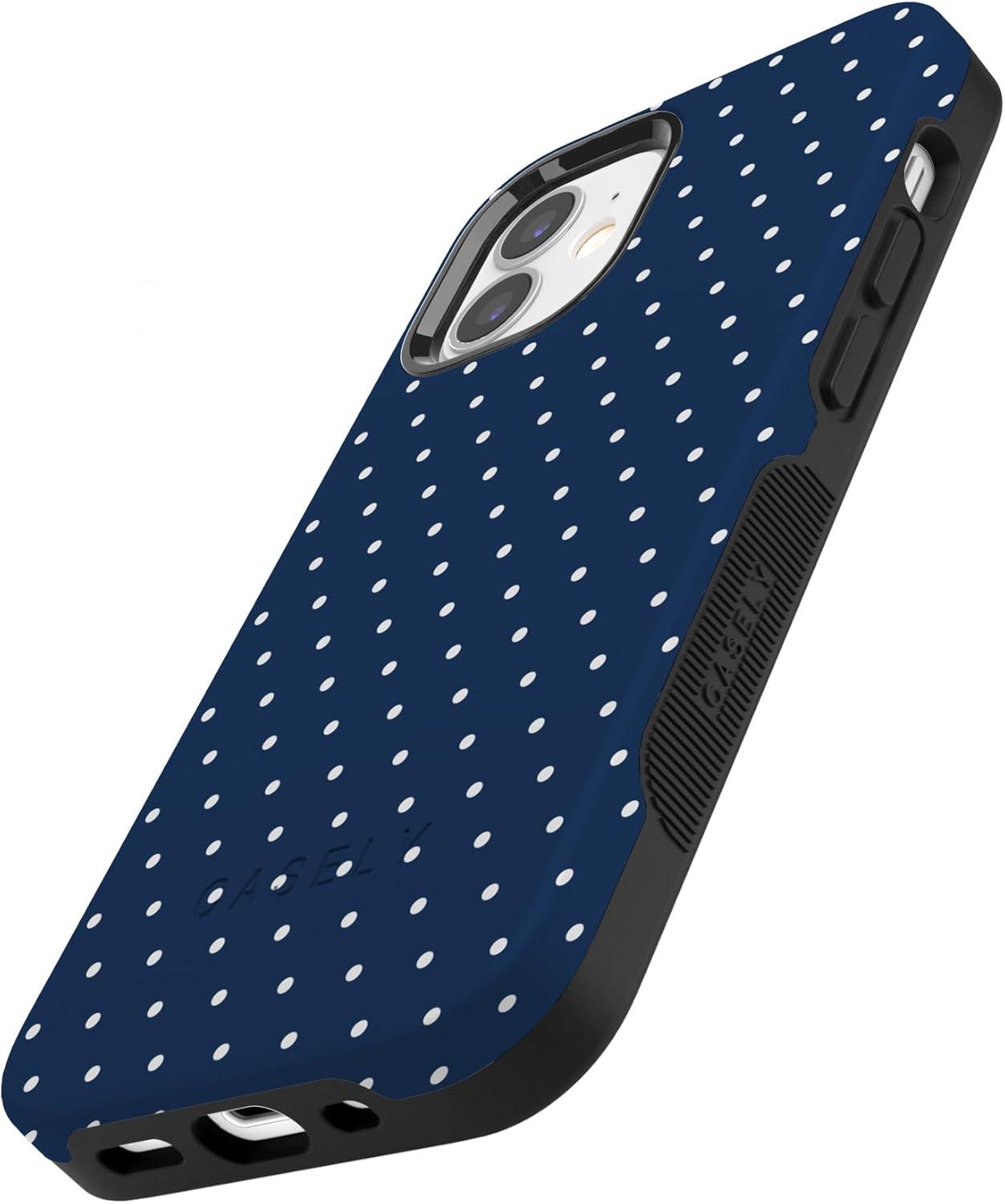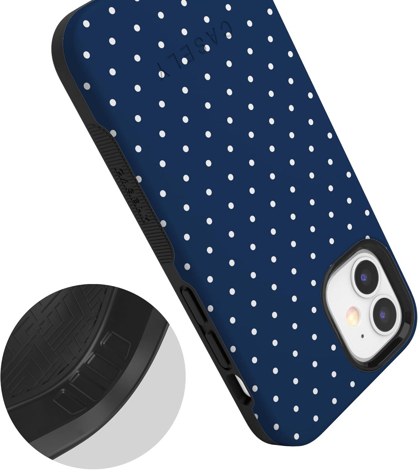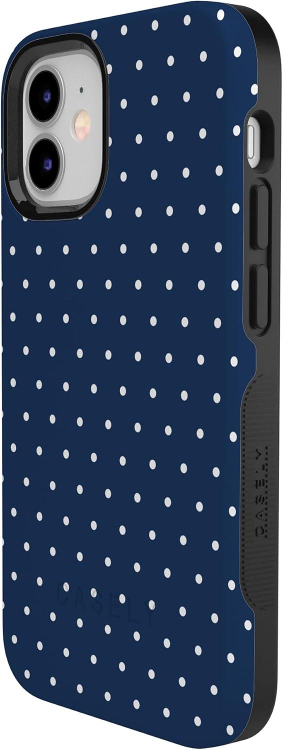 Casely iPhone 12/12 Pro Case | Be Mine | Tiny Hearts | Bold Protective Design | Compatible with MagSafe(On the Dot | Navy Polka Dot)