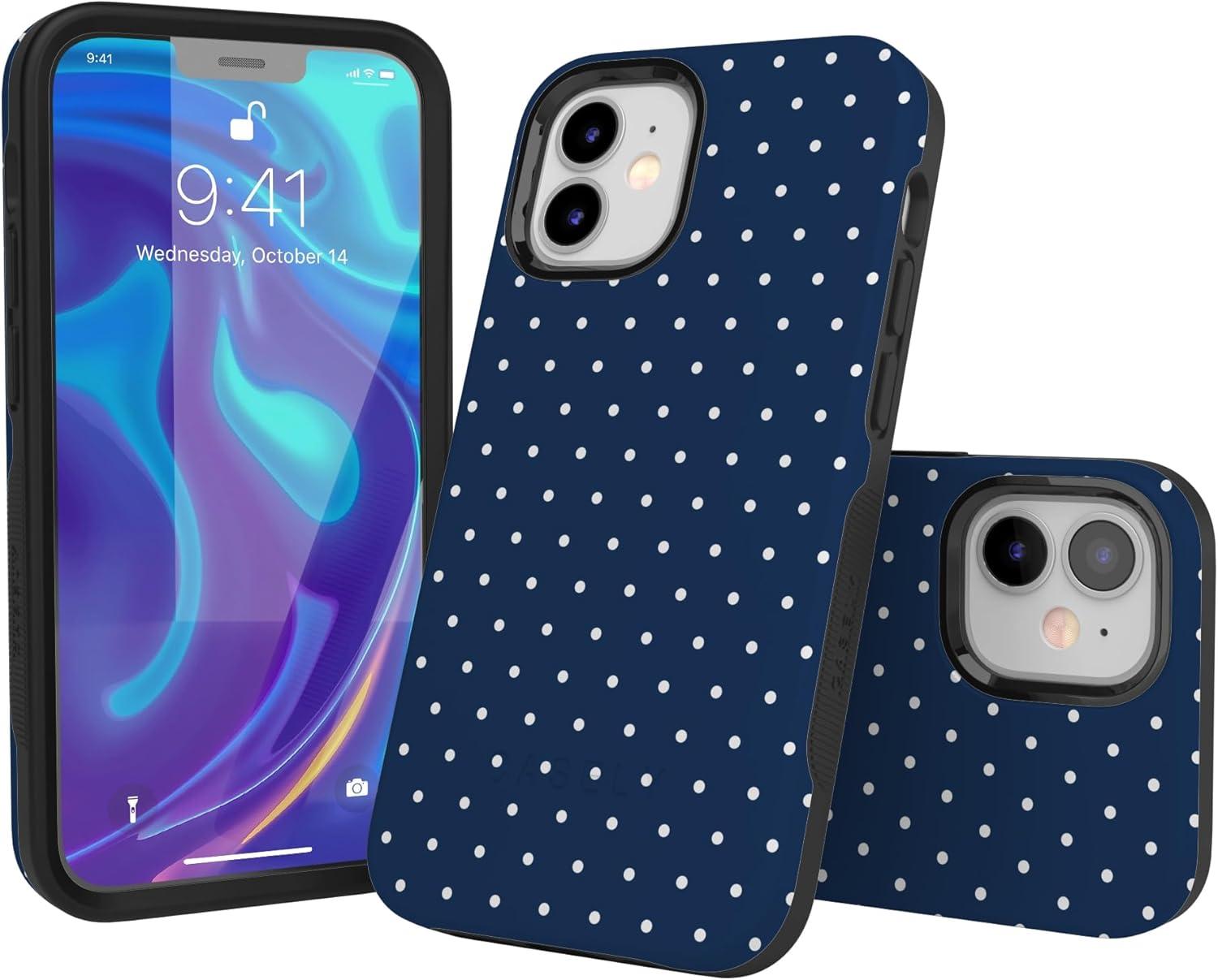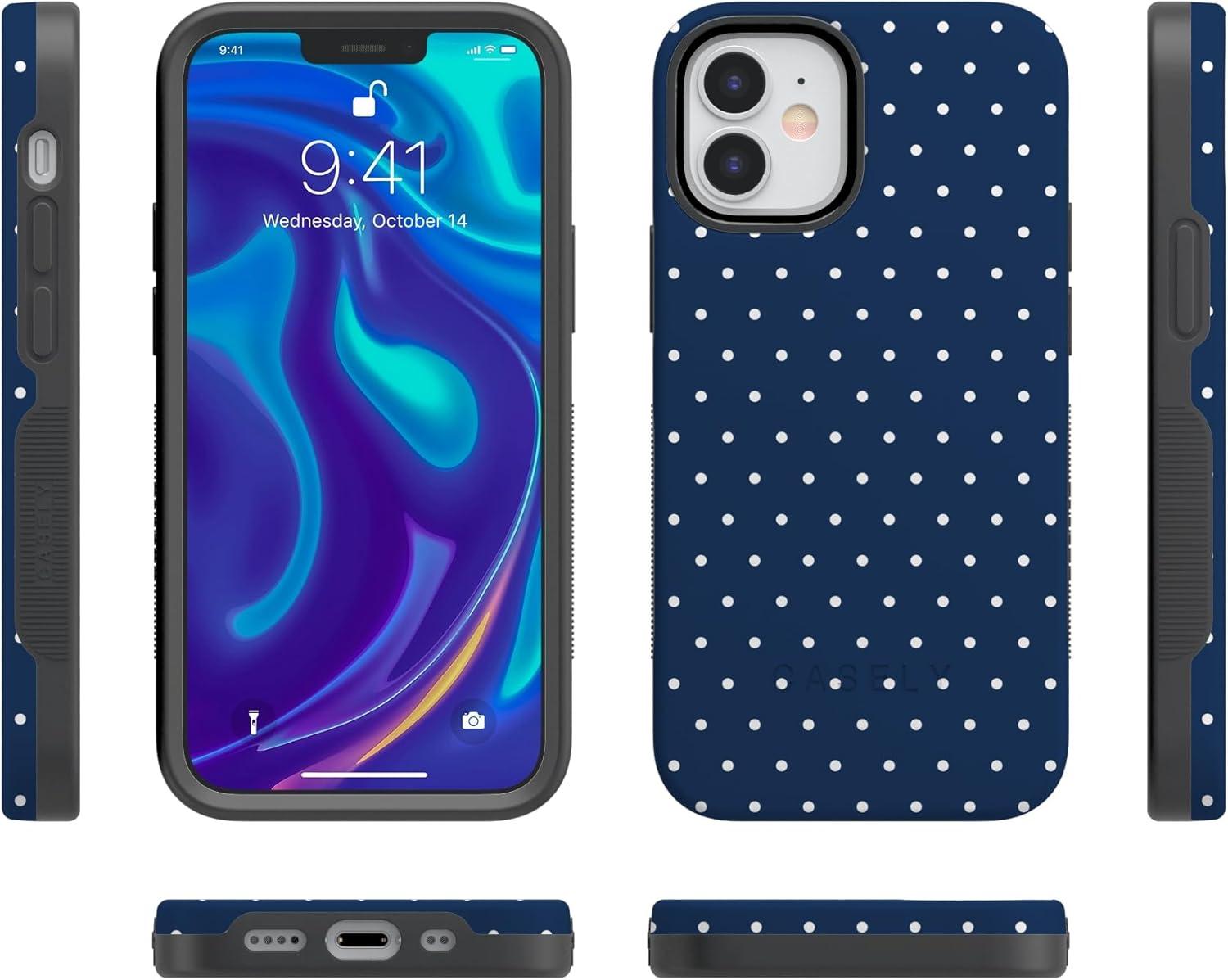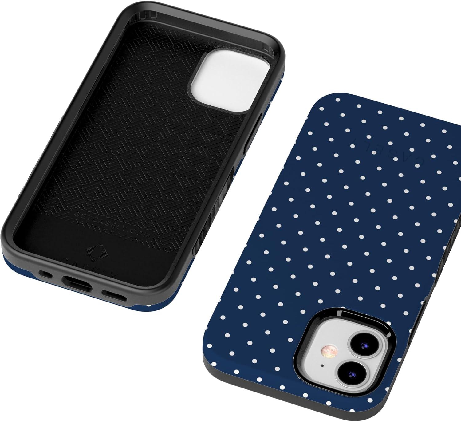 Casely iPhone 12/12 Pro Case | Be Mine | Tiny Hearts | Bold Protective Design | Compatible with MagSafe(On the Dot | Navy Polka Dot)