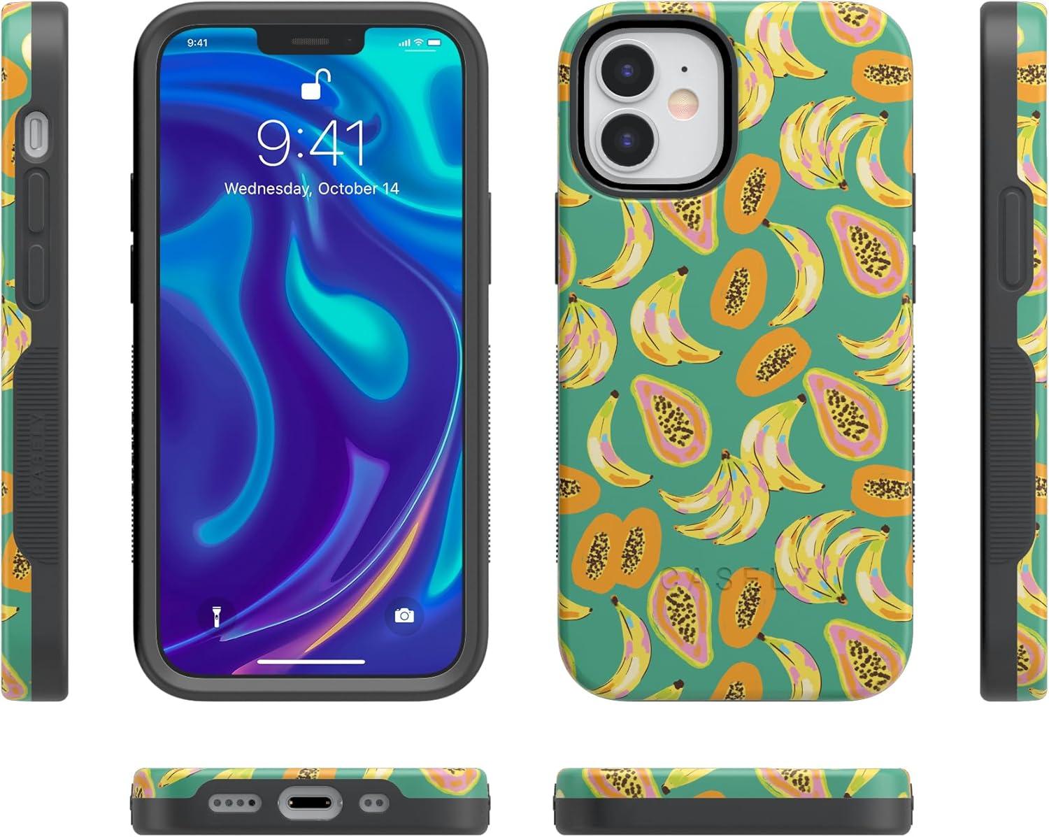 Casely iPhone 12/12 Pro Case | Be Mine | Tiny Hearts | Bold Protective Design | Compatible with MagSafe(Papaya Palms | Dippin’ Daisy’s Tropical Vacation)