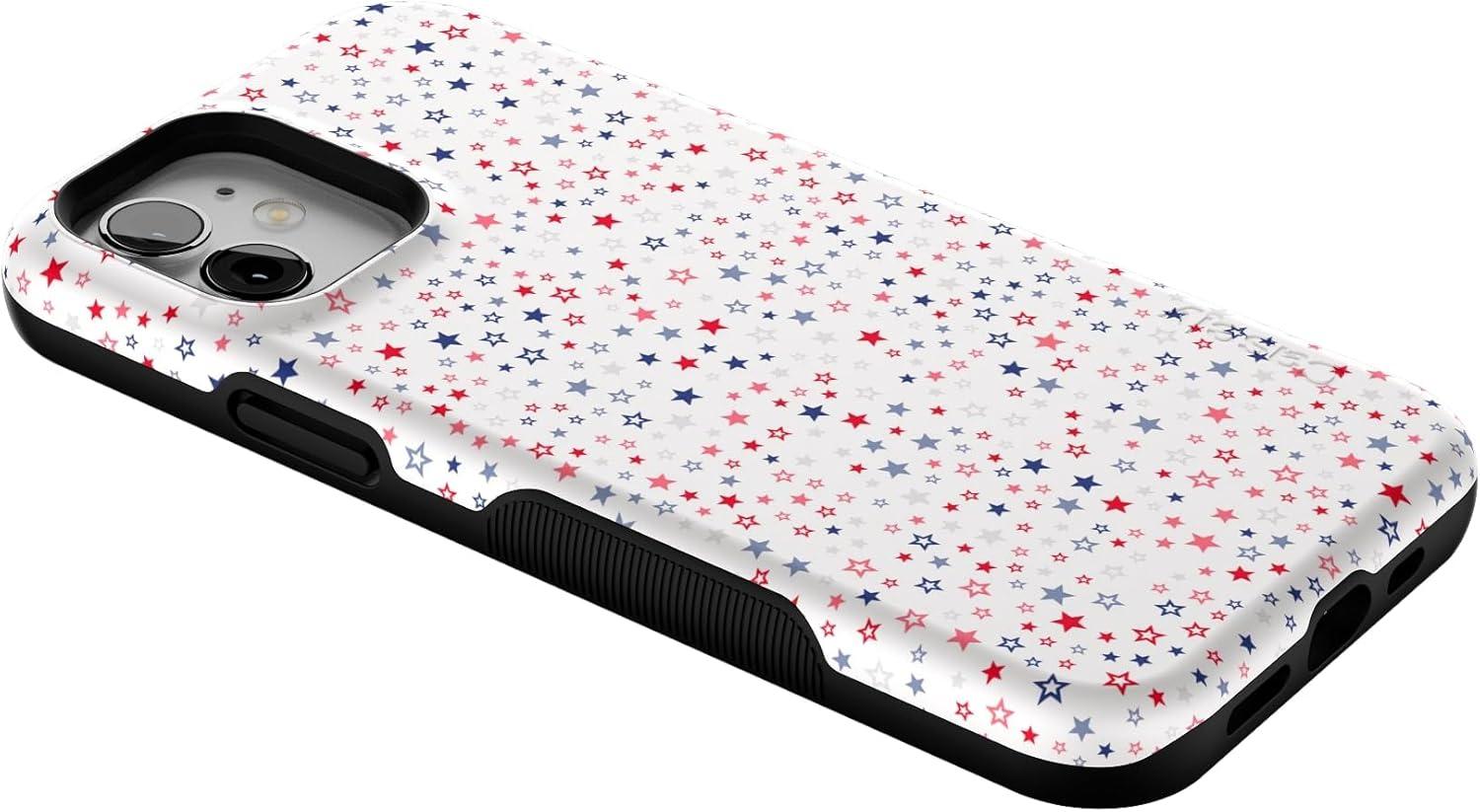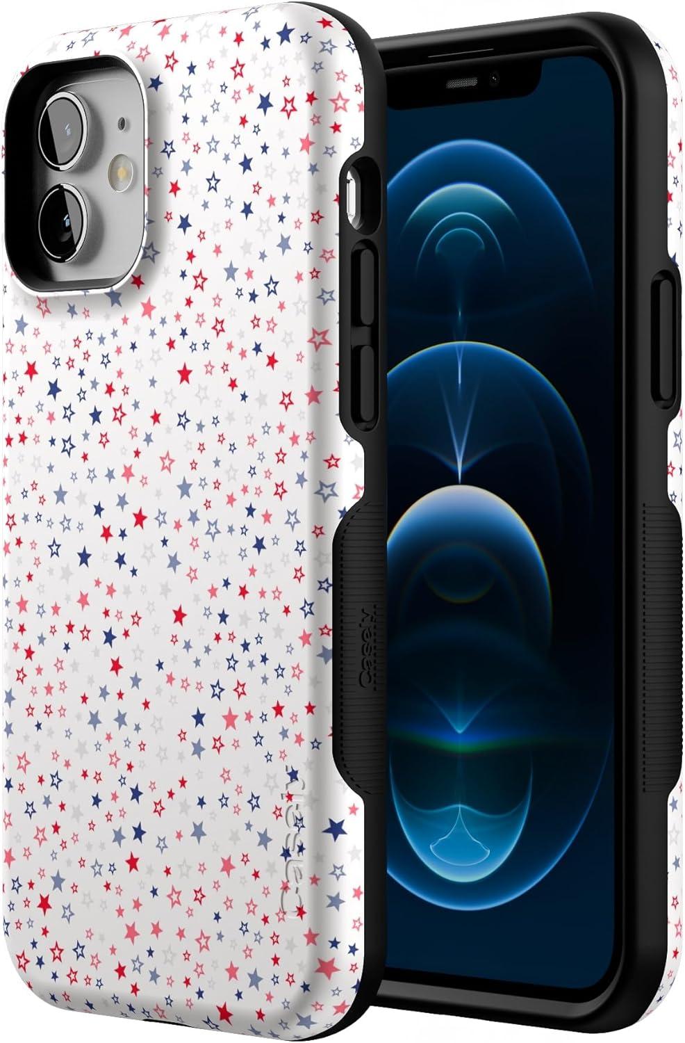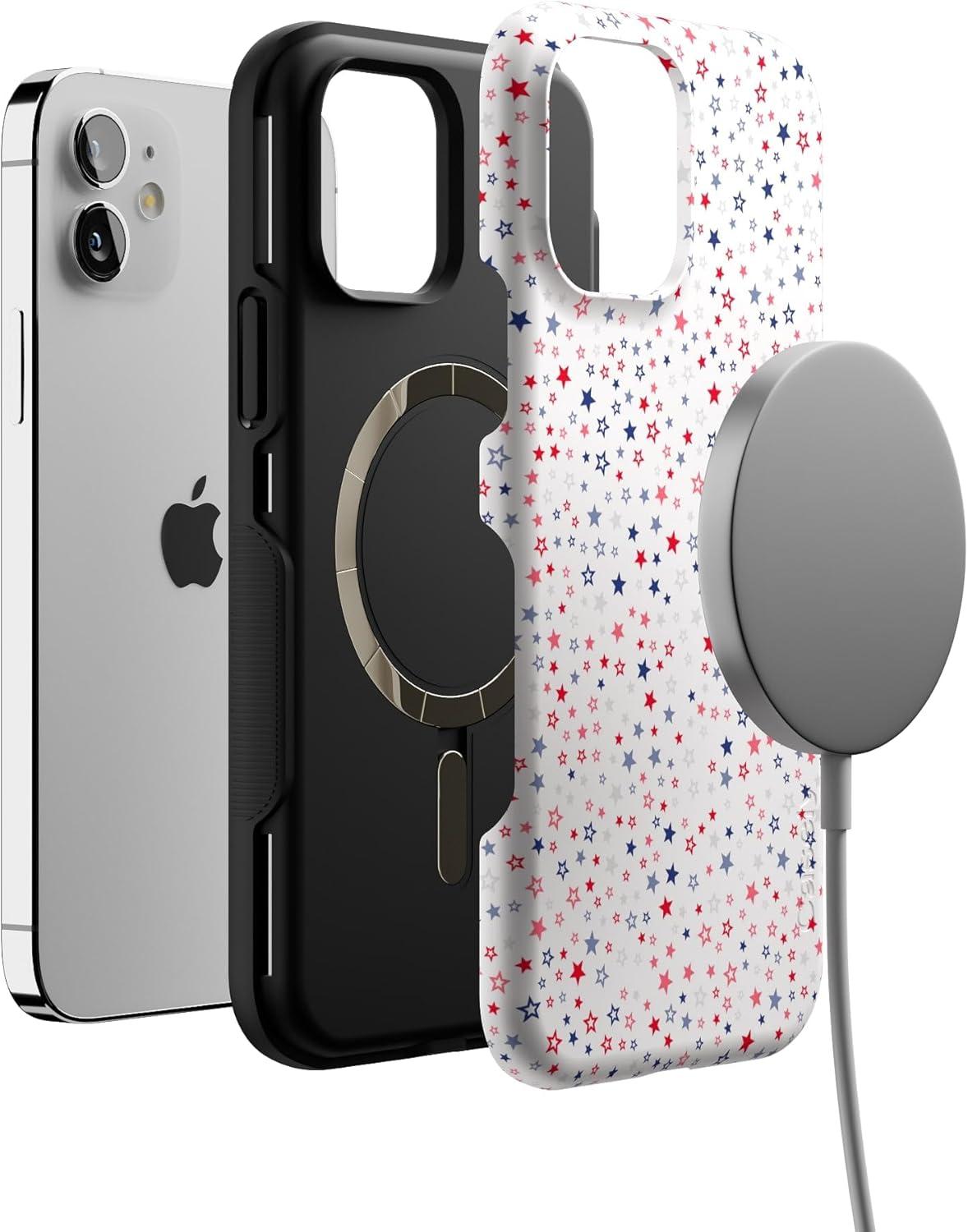Casely iPhone 12/12 Pro Case | Be Mine | Tiny Hearts | Bold Protective Design | Compatible with MagSafe(Seeing Stars | Red White & Blue)