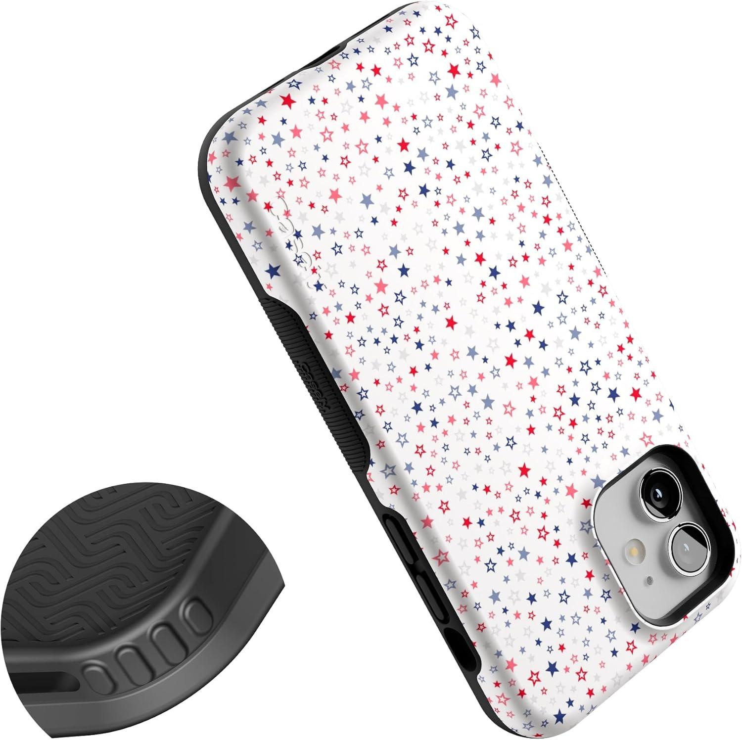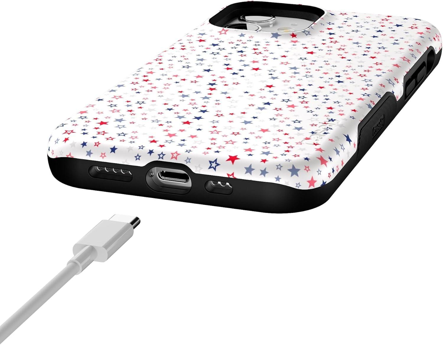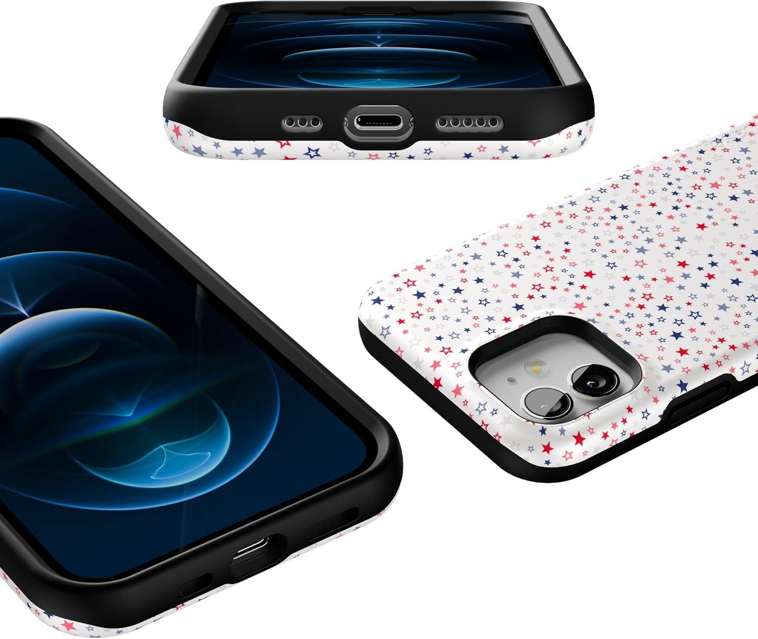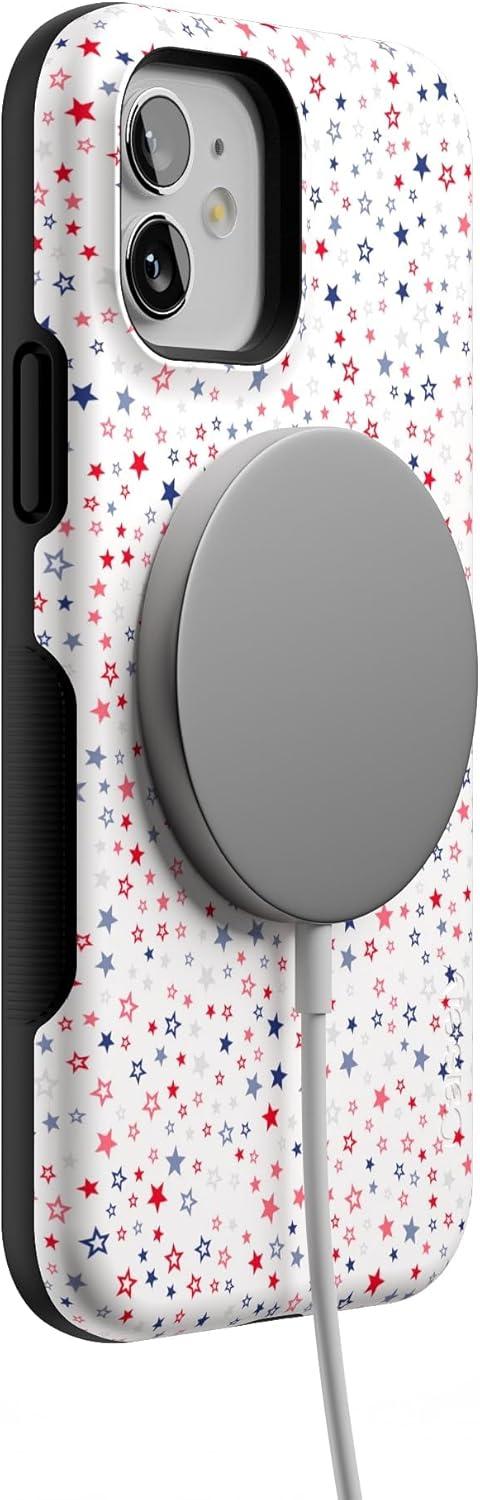 Casely iPhone 12/12 Pro Case | Be Mine | Tiny Hearts | Bold Protective Design | Compatible with MagSafe(Seeing Stars | Red White & Blue)