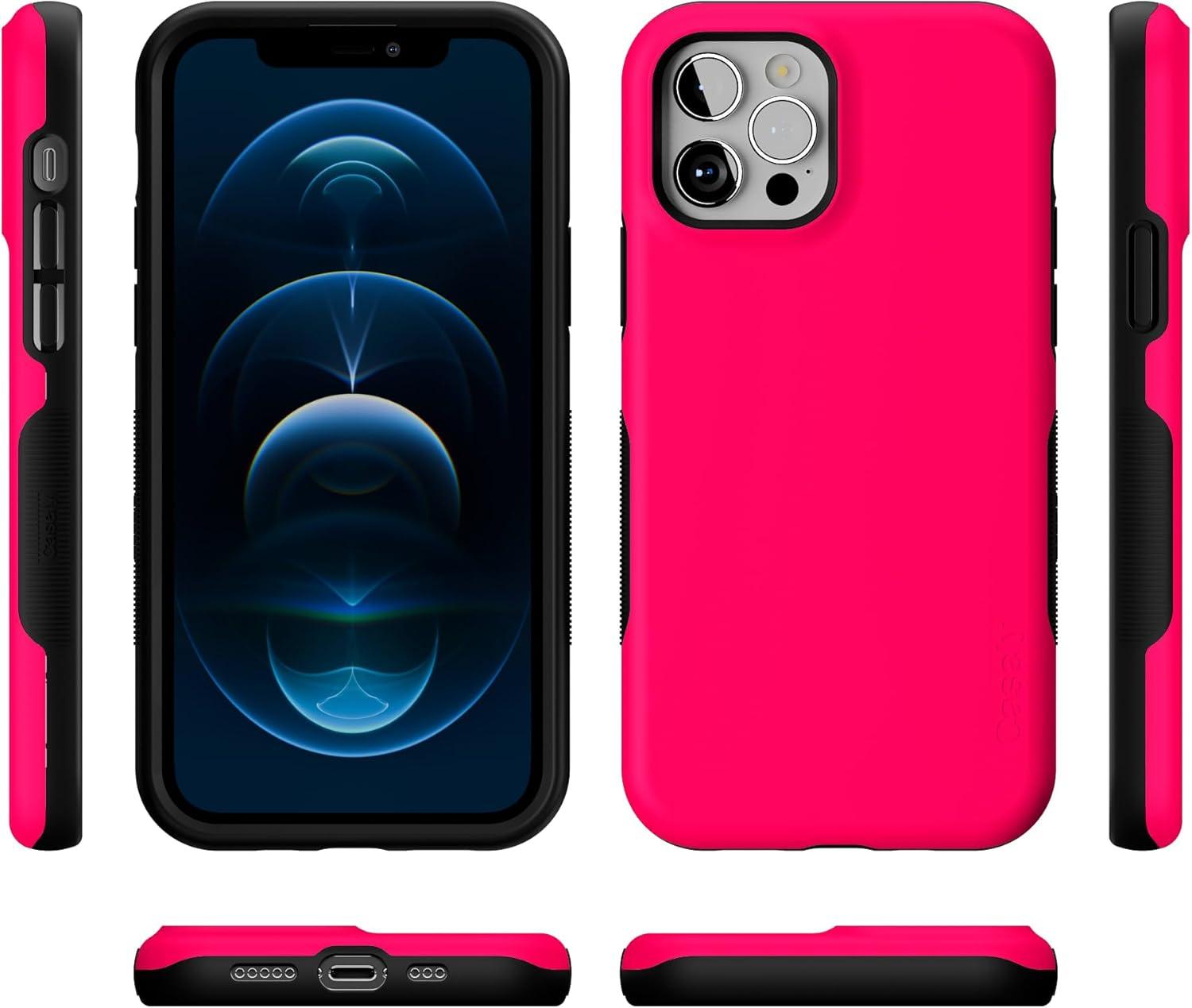 Casely iPhone 12/12 Pro Case | Be Mine | Tiny Hearts | Bold Protective Design | Compatible with MagSafe(Think Pink | Solid Neon Pink)
