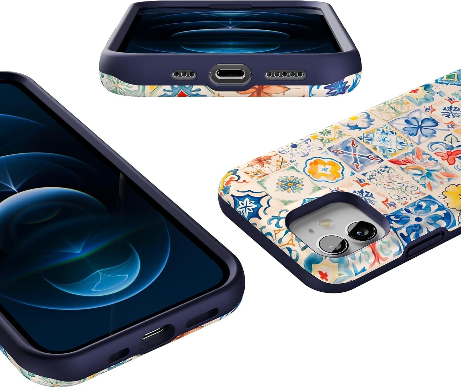 Casely iPhone 12/12 Pro Case | Be Mine | Tiny Hearts | Bold Protective Design | Compatible with MagSafe(Tuscan Tiles | Dolce Vita)