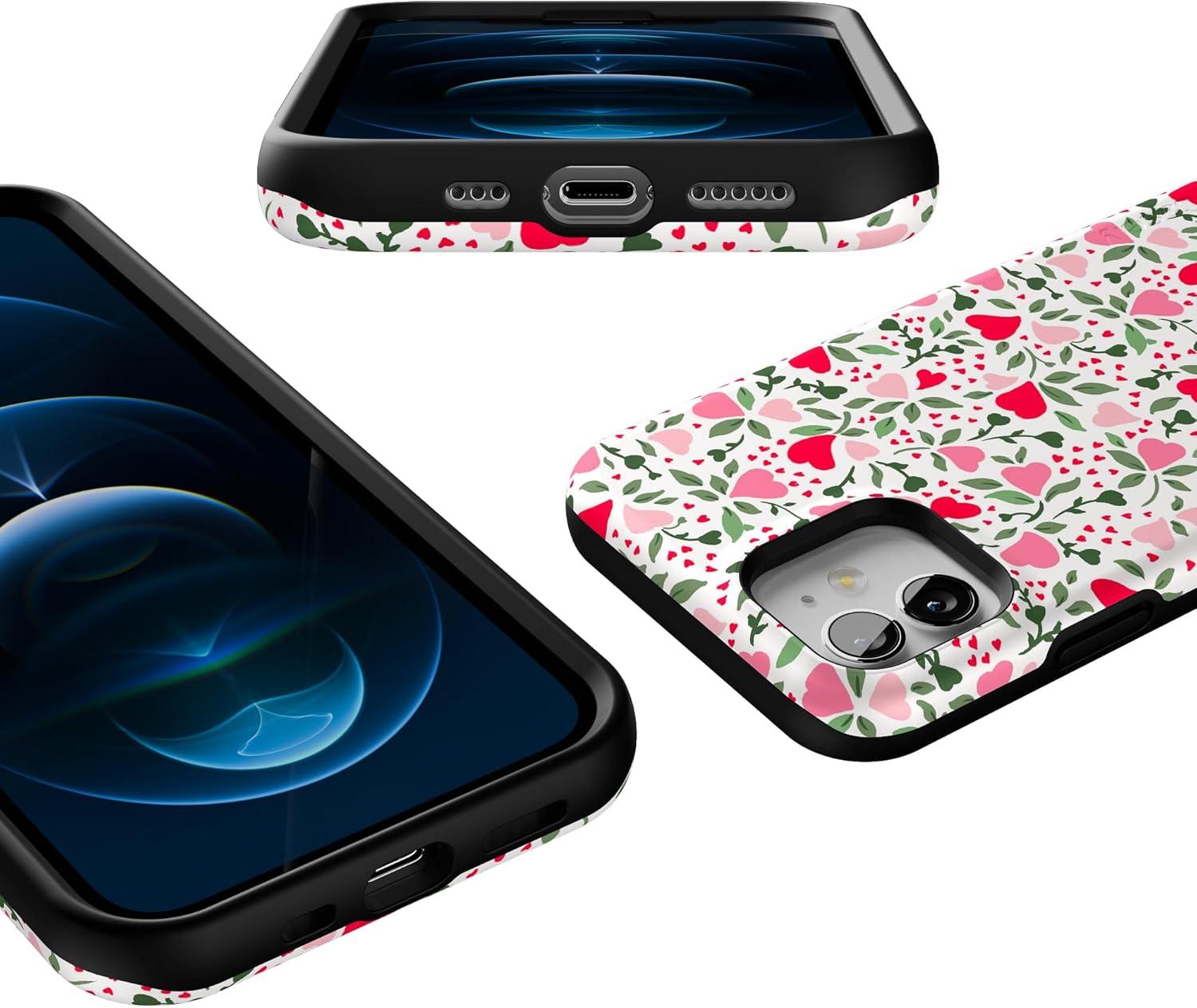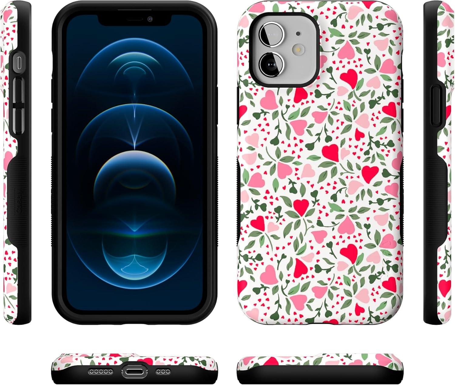 Casely iPhone 12/12 Pro Case | Be Mine | Tiny Hearts | Bold Protective Design | Compatible with MagSafe(Vines of Love | Floral Heart)