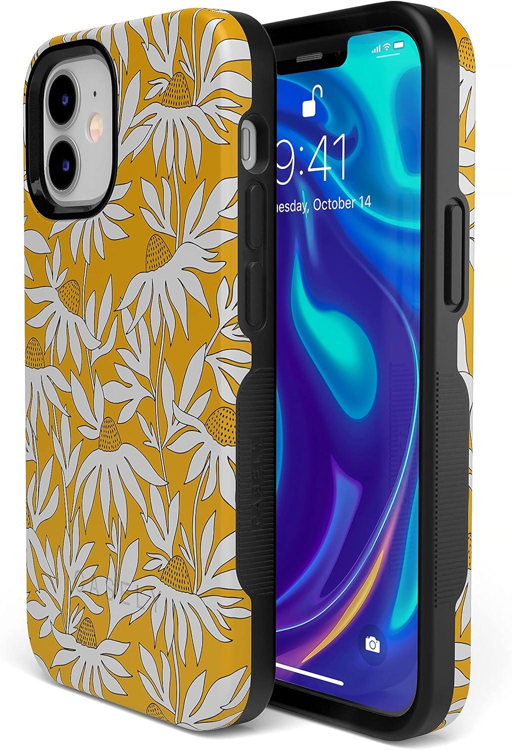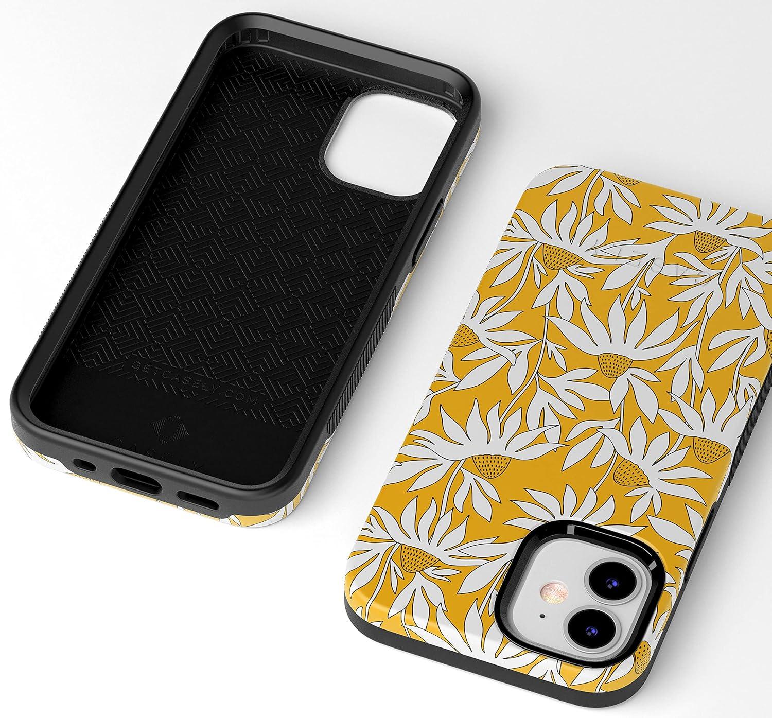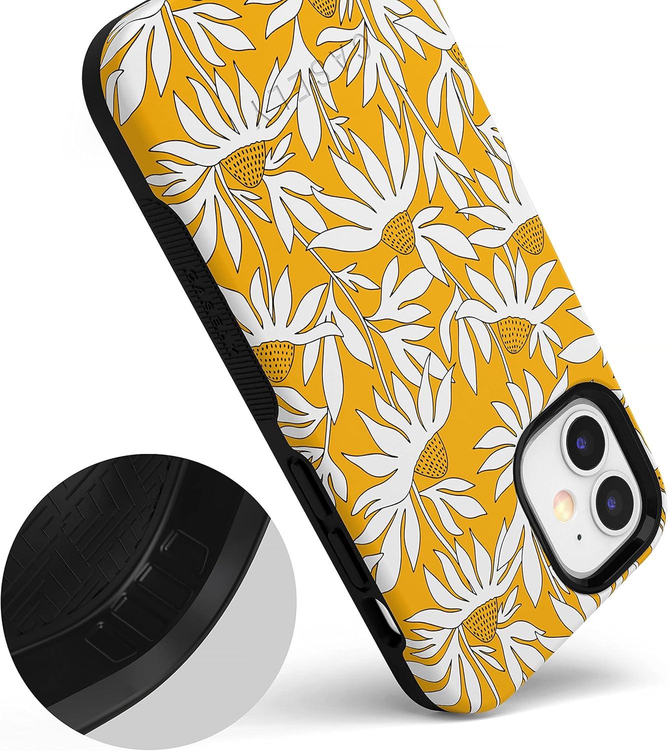 Casely iPhone 12/12 Pro Case | Be Mine | Tiny Hearts | Bold Protective Design | Compatible with MagSafe(Wild About You | Yellow Floral)