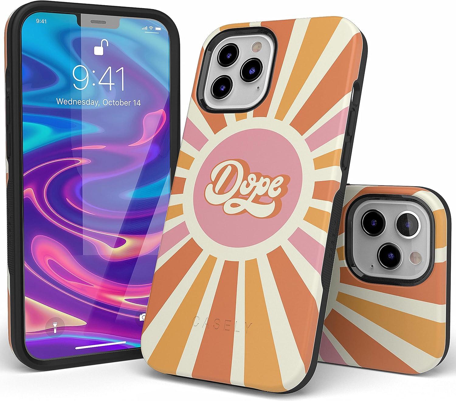 Casely iPhone 12/12 Pro Case | Be Mine | Tiny Hearts | Bold Protective Design | Compatible with MagSafe(You’re Dope | Retro Colorblock)
